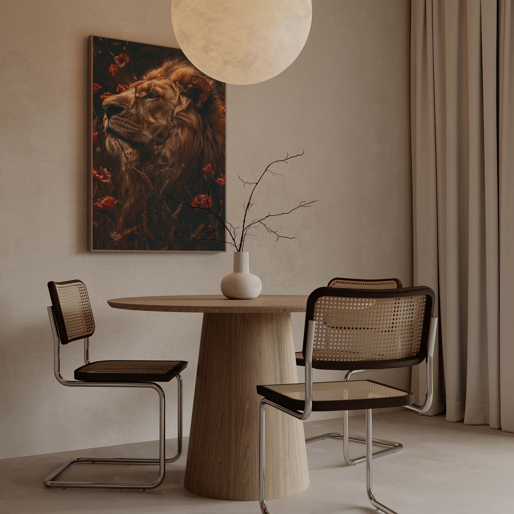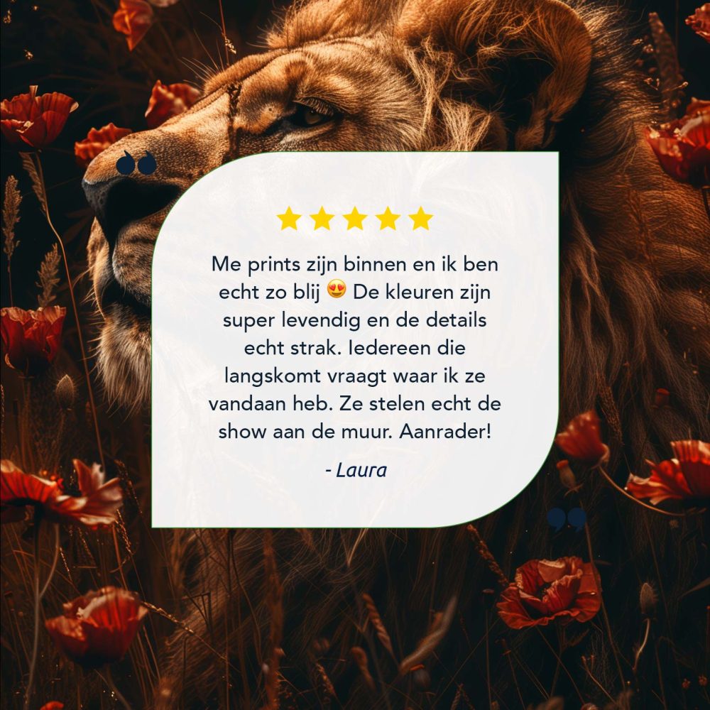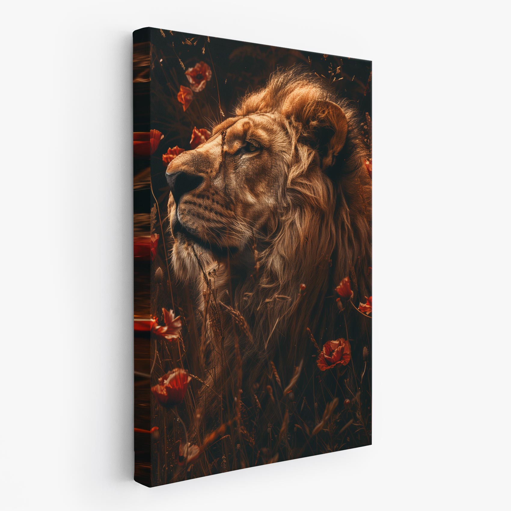 Terug naar collectie / Schilderijen / Bloemen Schilderij / Gouden leeuw tussen rode bloemen