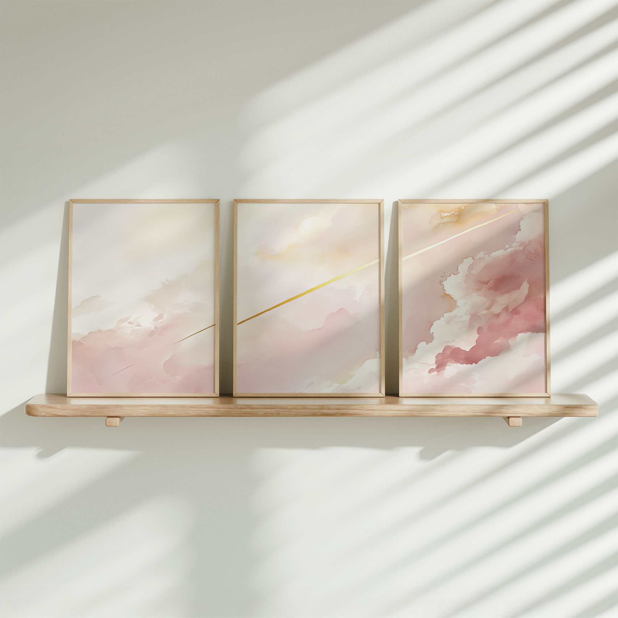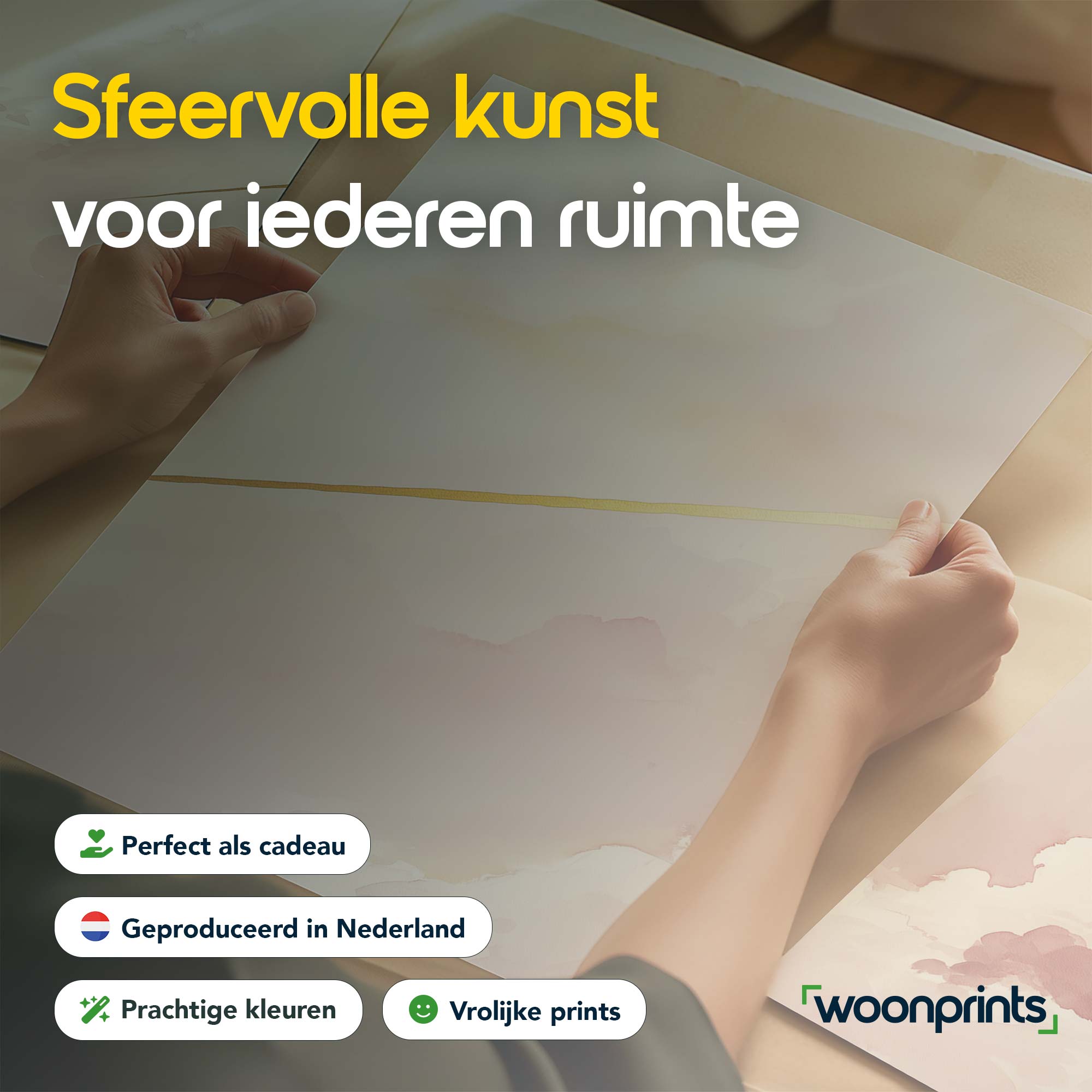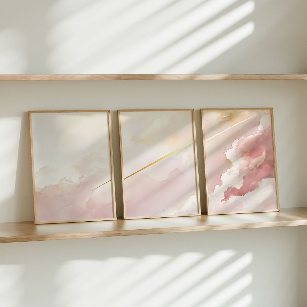 Terug naar collectie / Kinderkamer posters / Gouden Lijn in Roze Wolkenhemel – Dromerige Wanddecoratie