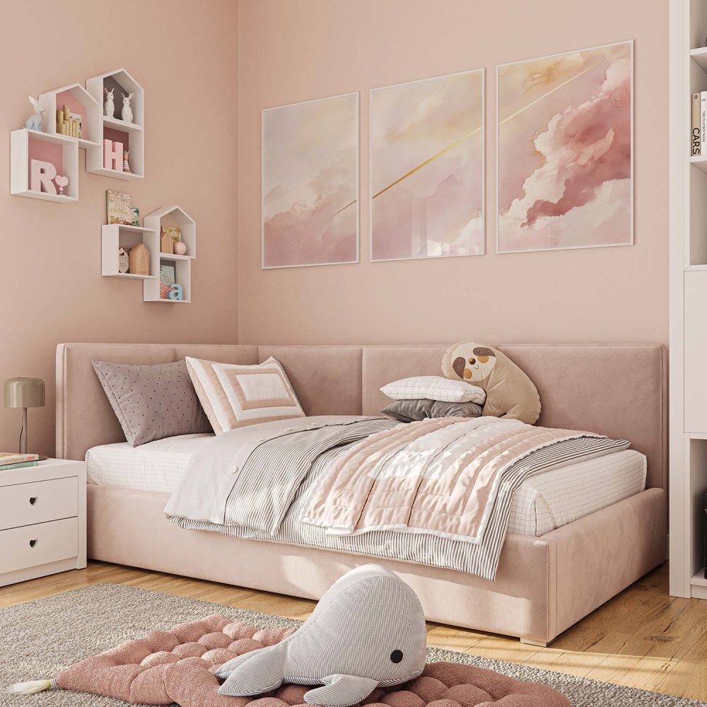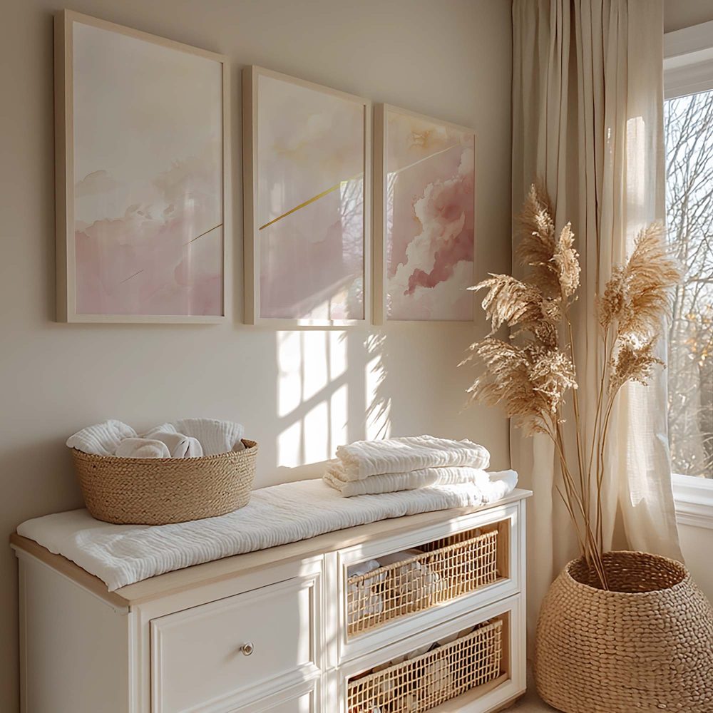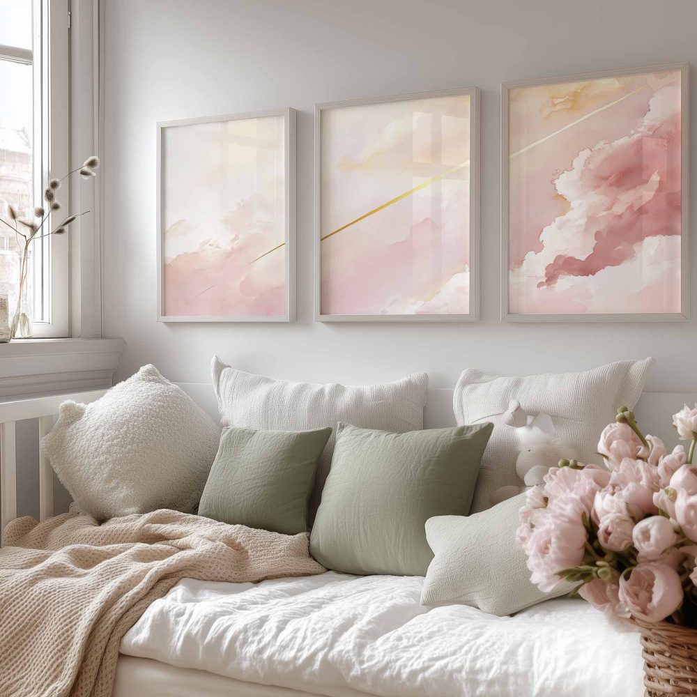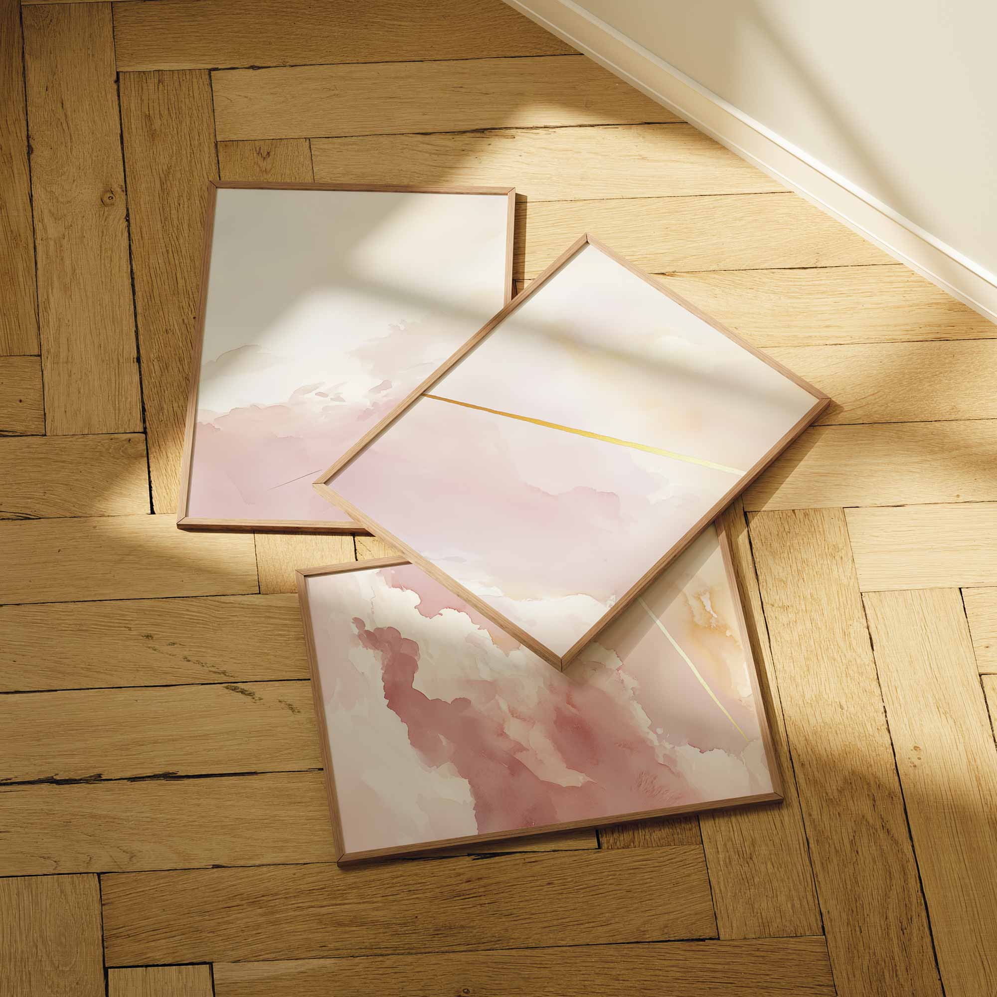 Terug naar collectie / Kinderkamer posters / Gouden Lijn in Roze Wolkenhemel – Dromerige Wanddecoratie