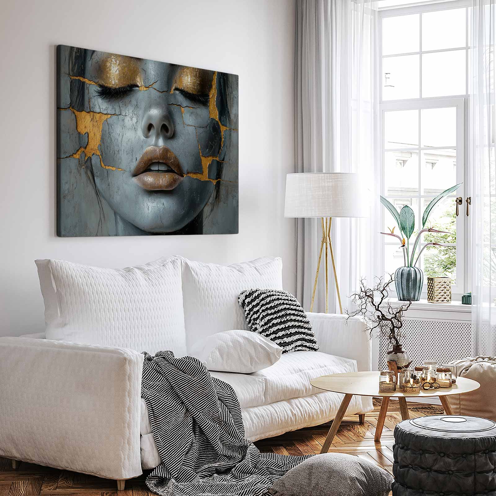 Terug naar collectie / Schilderijen / Abstract Schilderij / Gouden lippen op gebarsten muur