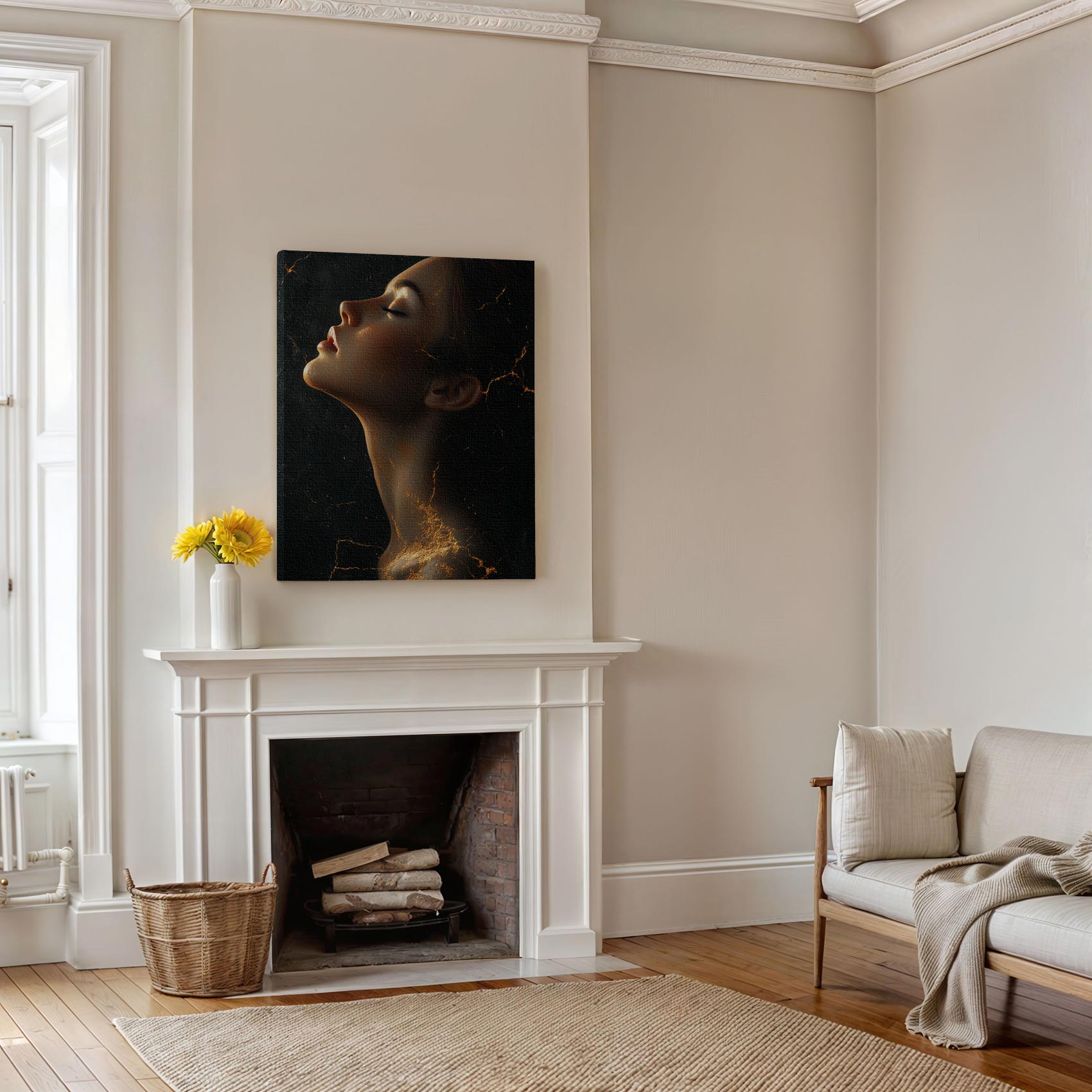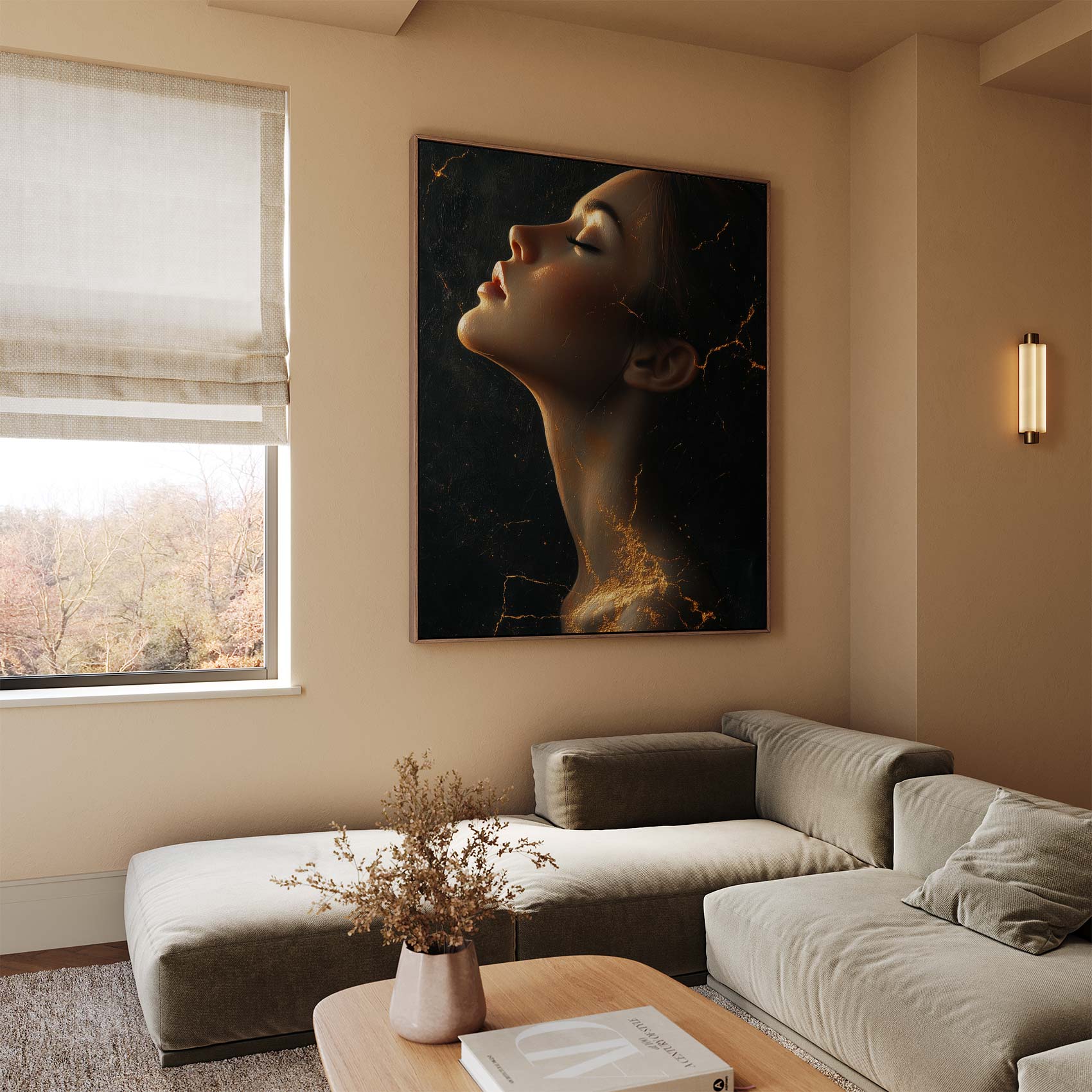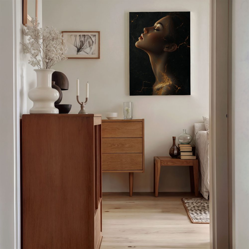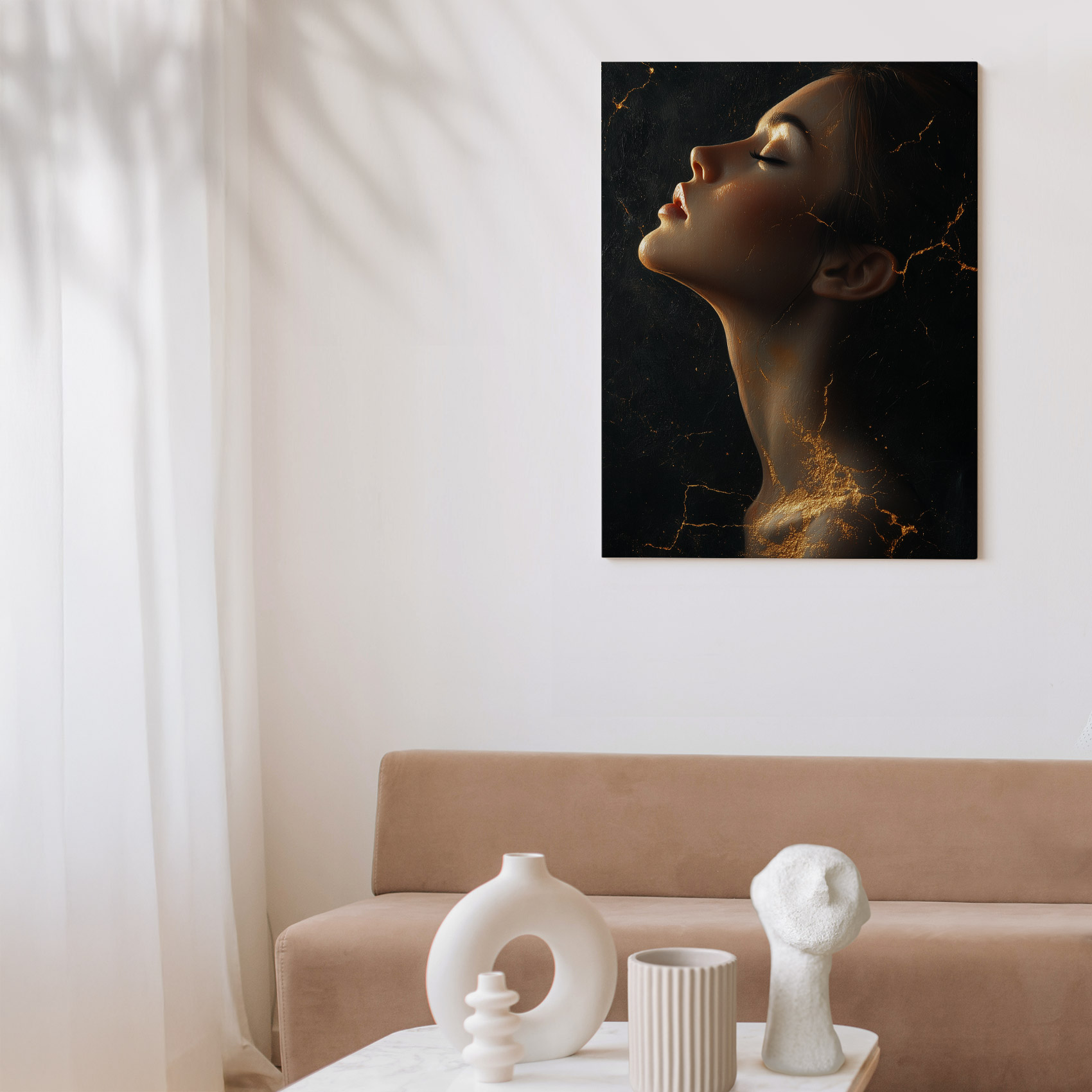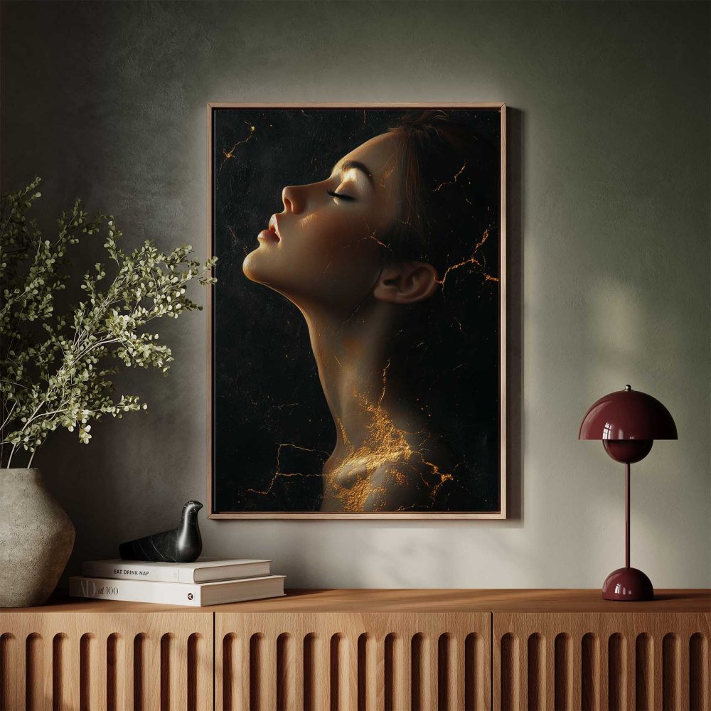 Terug naar collectie / Schilderijen / Abstract Schilderij / Gouden mysterieuze vrouwportret