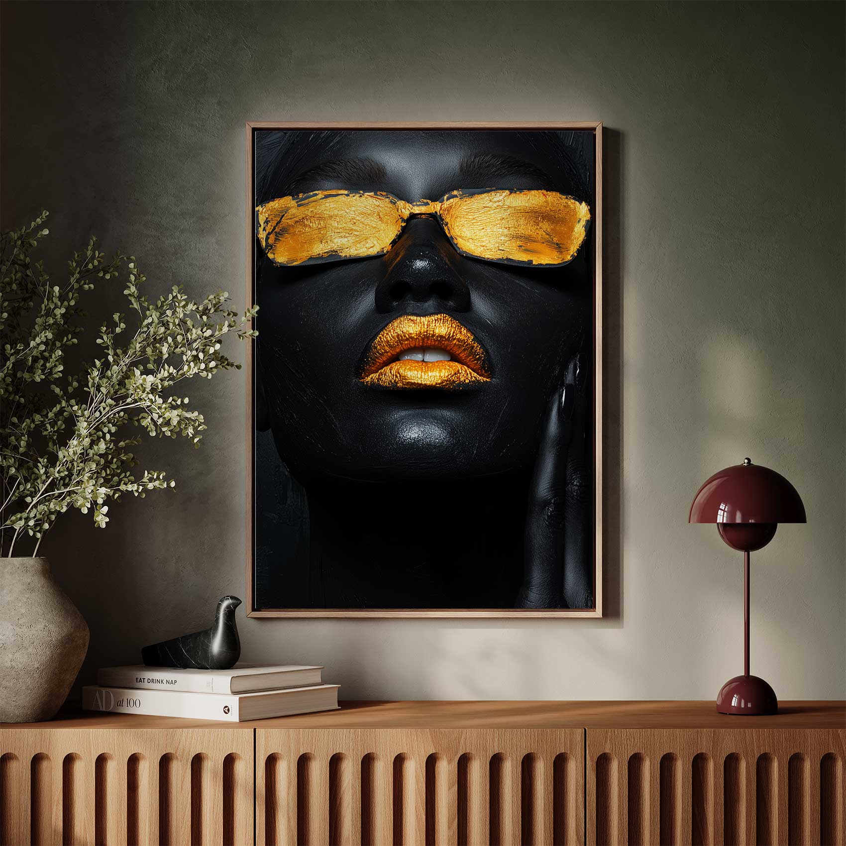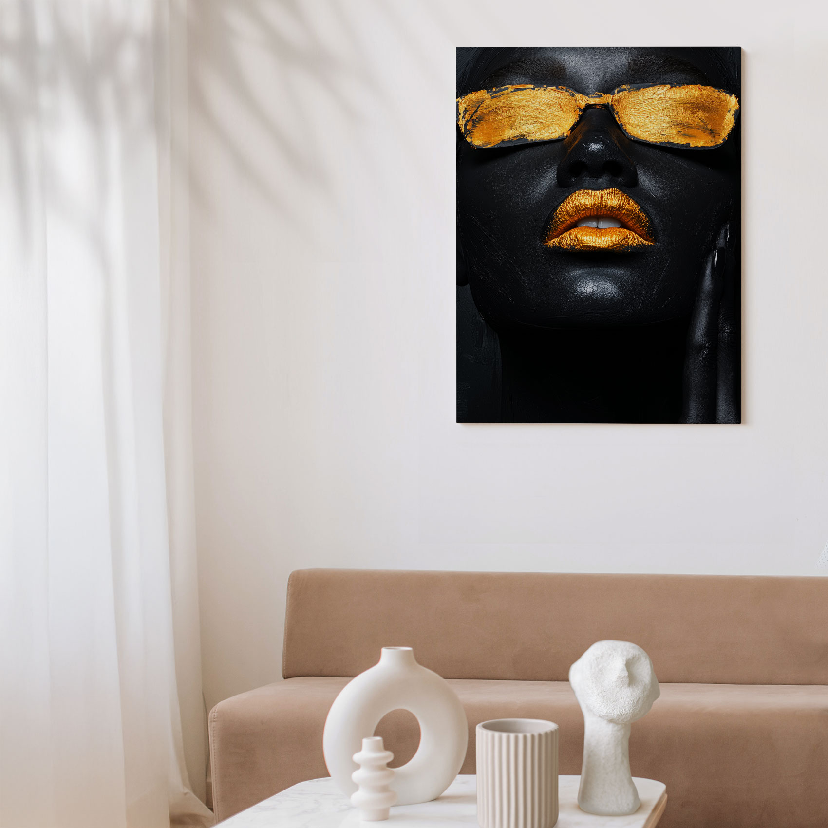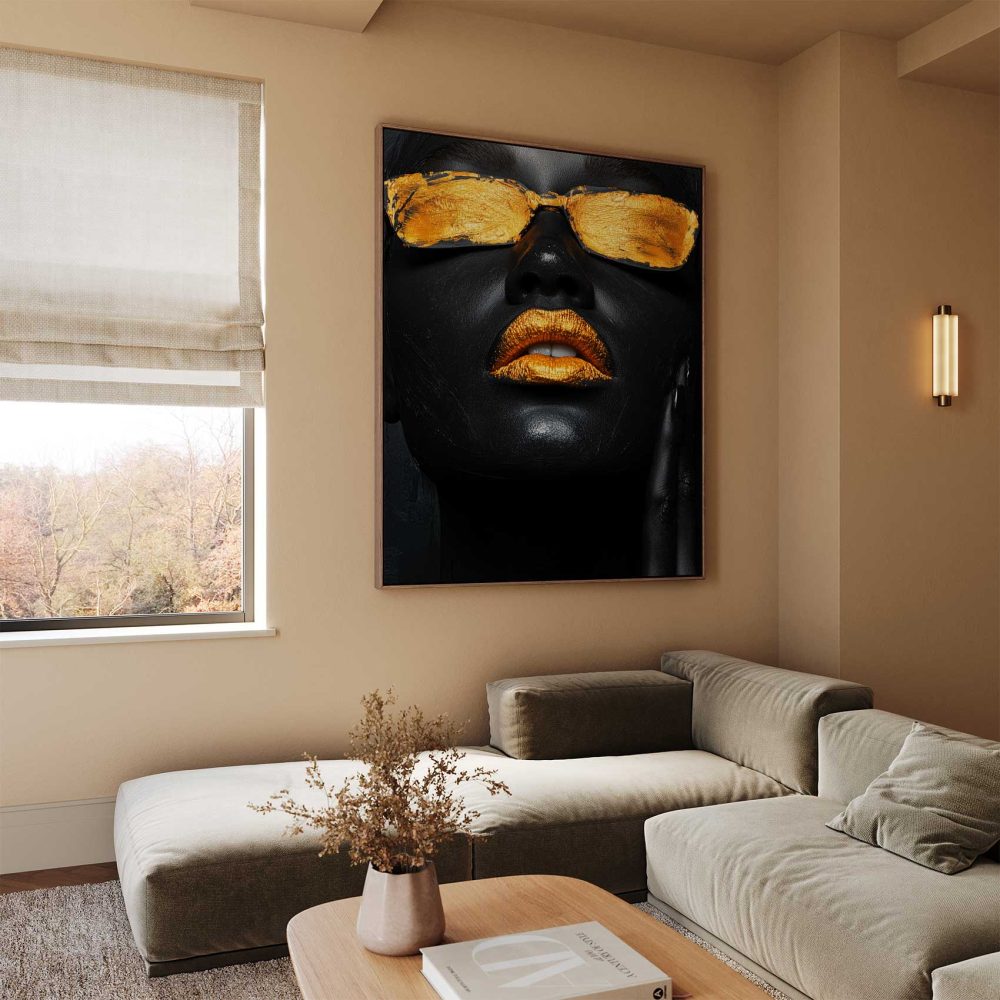 Terug naar collectie / Schilderijen / Abstract Schilderij / Gouden mysterieuze zonnebril