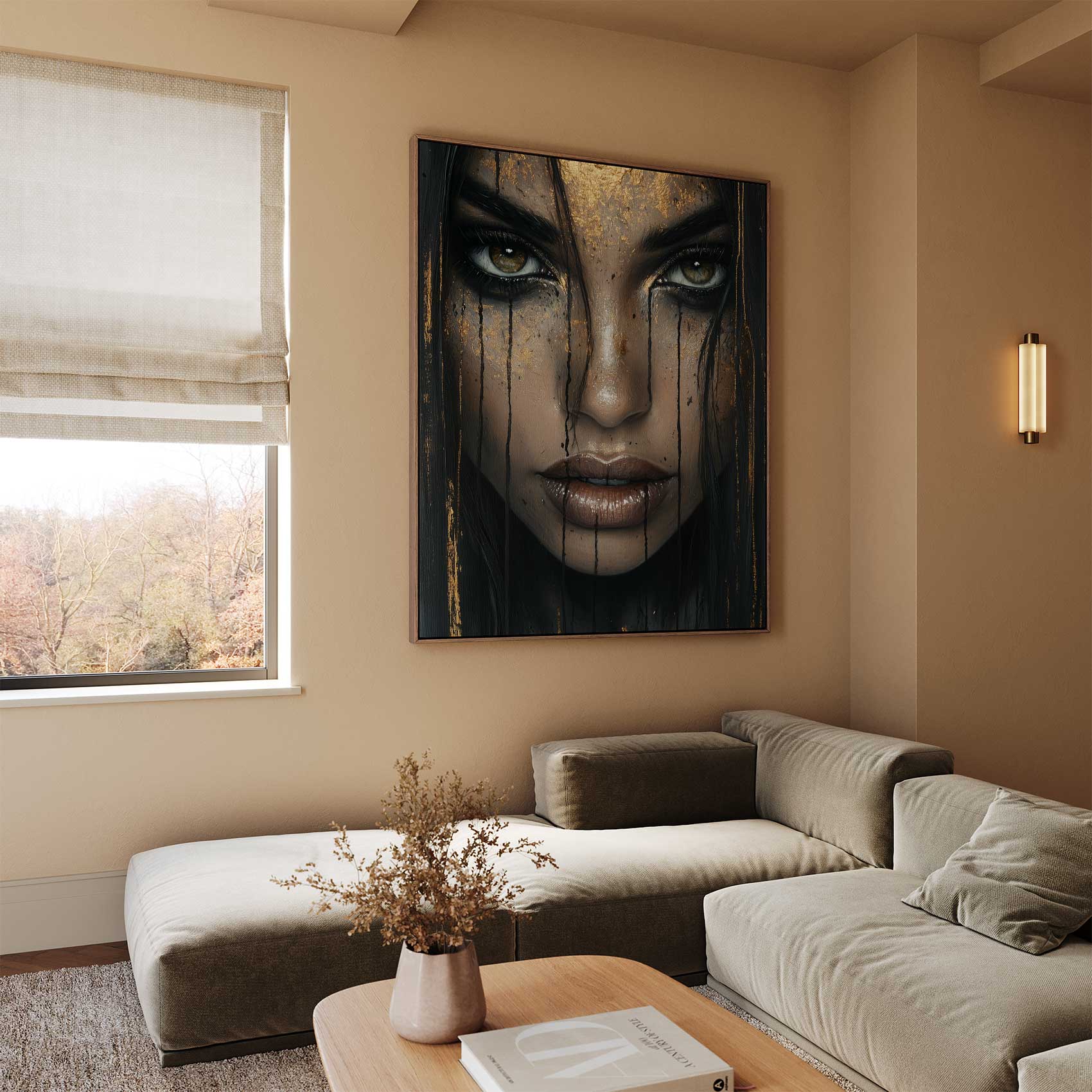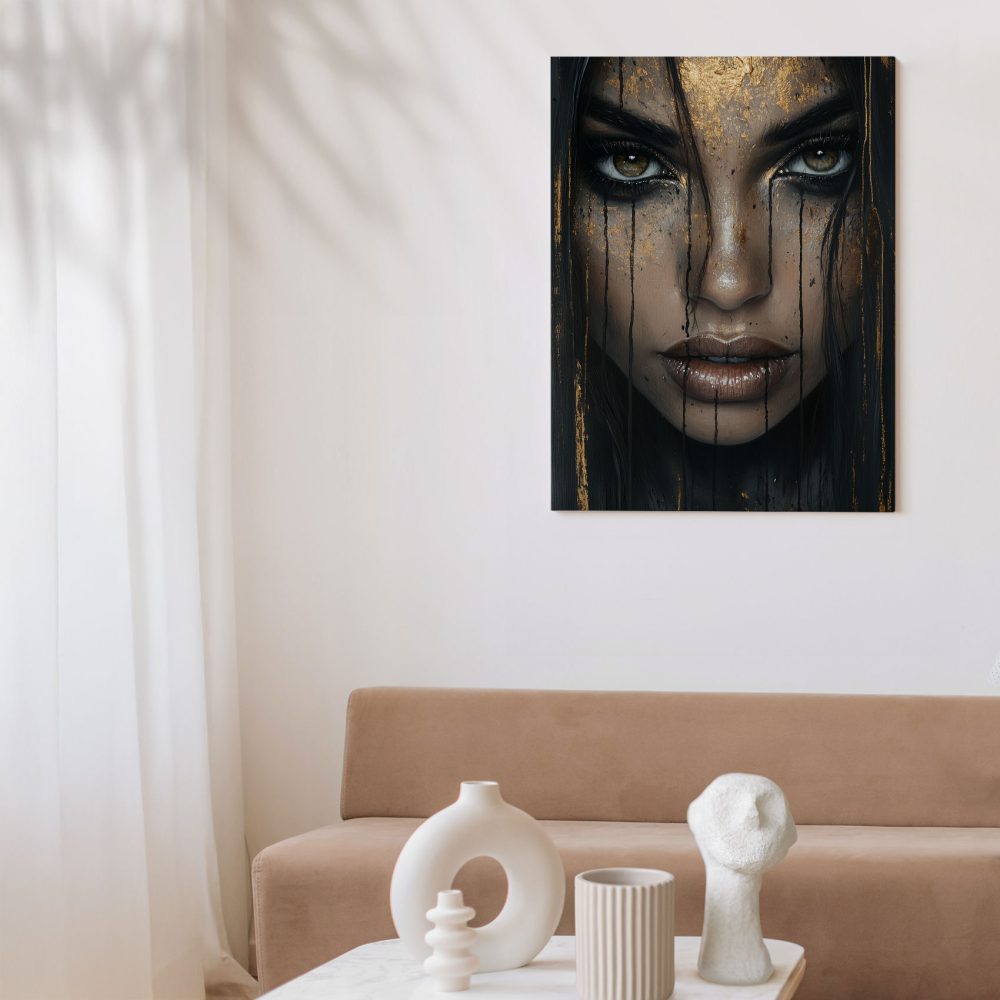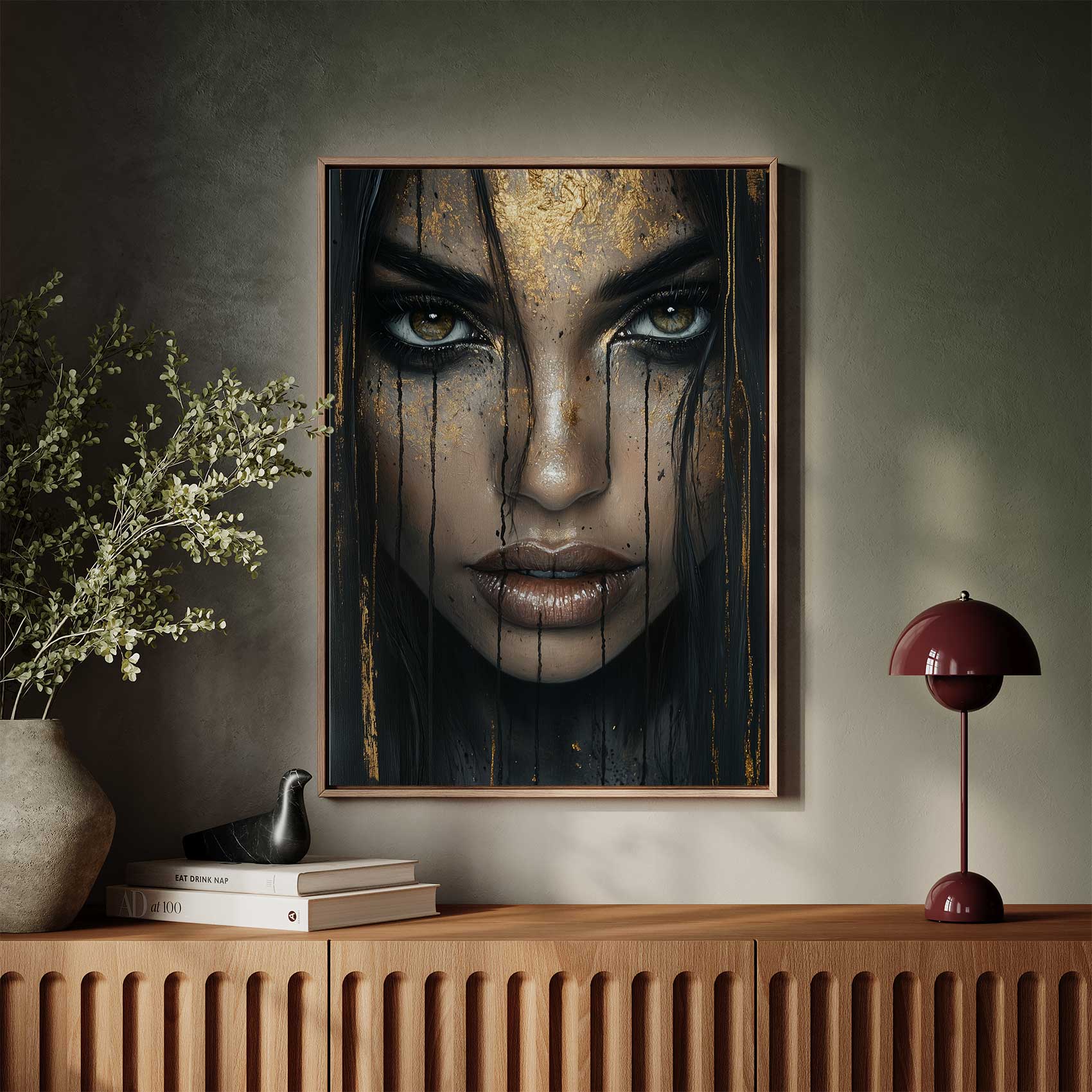 Terug naar collectie / Schilderijen / Abstract Schilderij / Gouden Mystieke Vrouwenportret