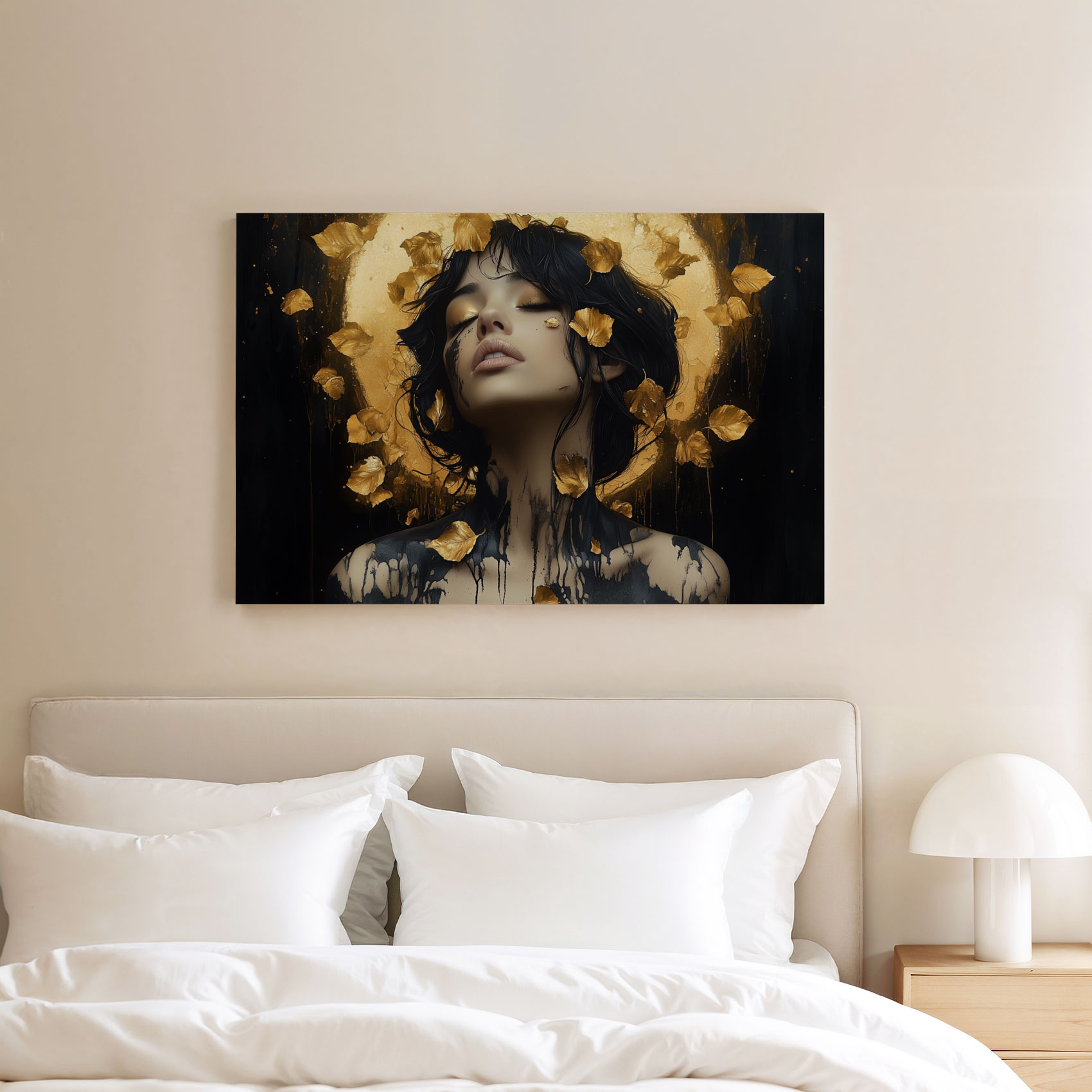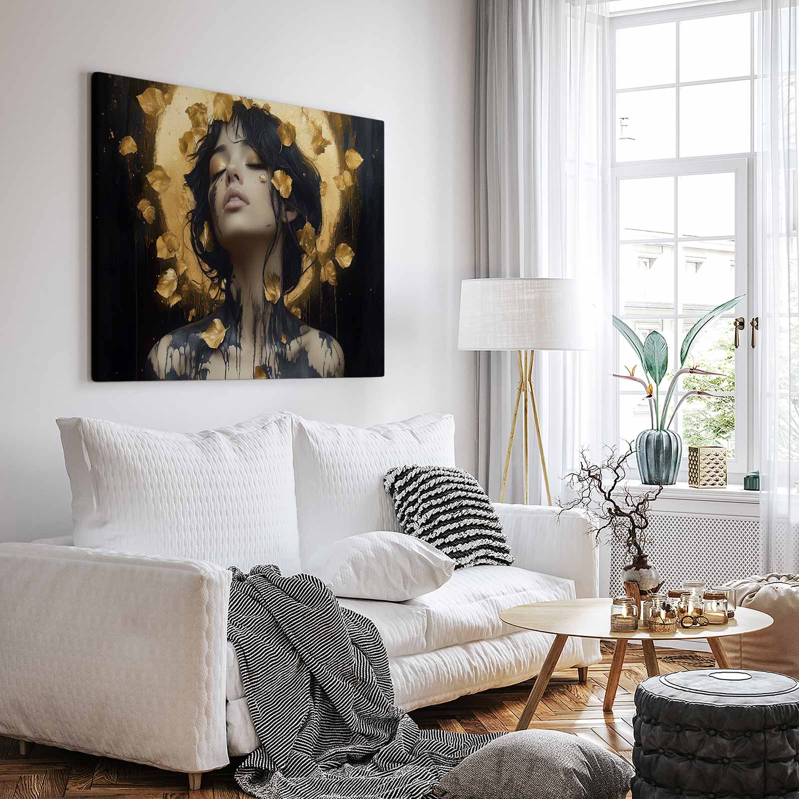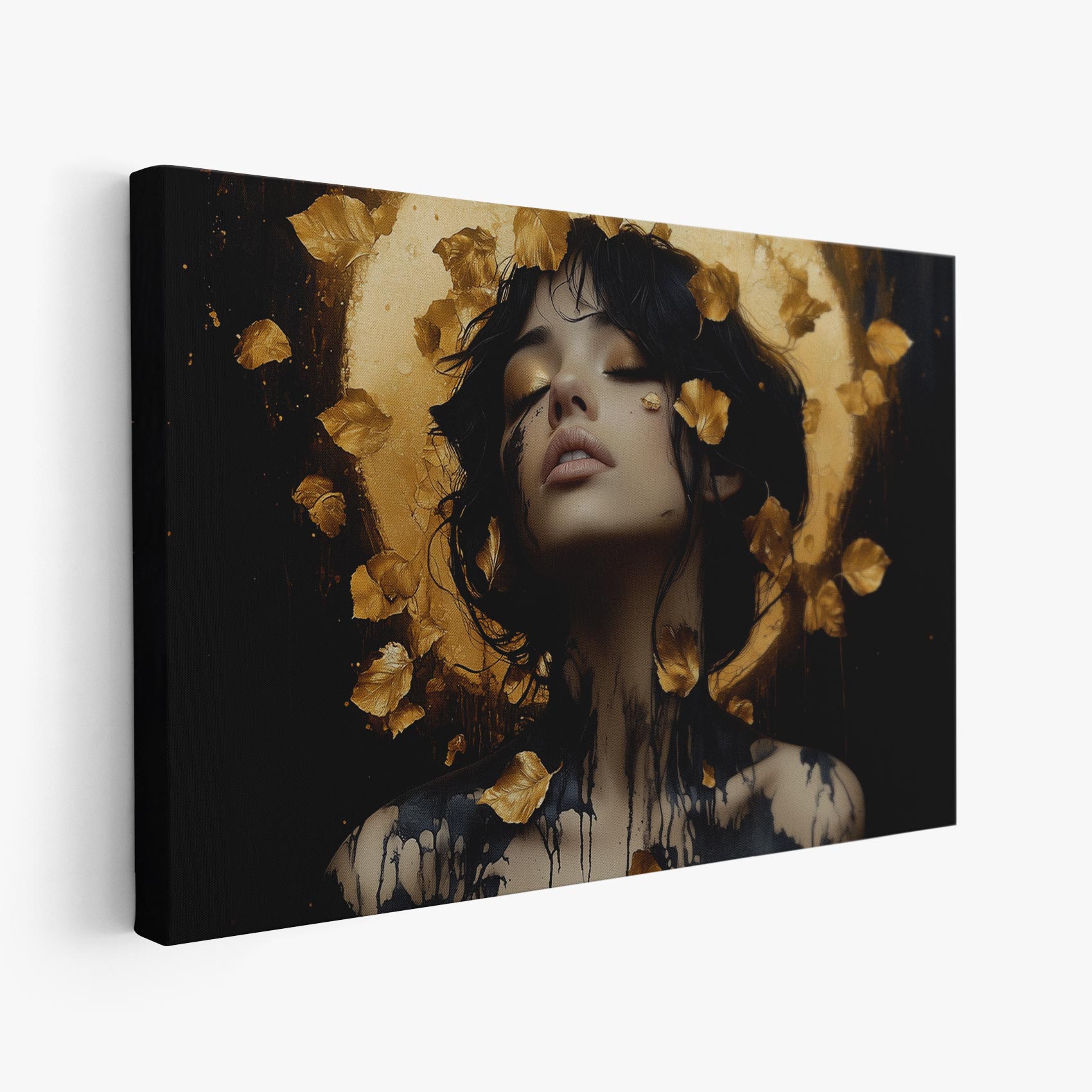 Terug naar collectie / Schilderijen / Abstract Schilderij / Gouden Mystieke Vrouwensilhouet