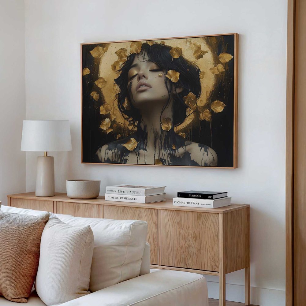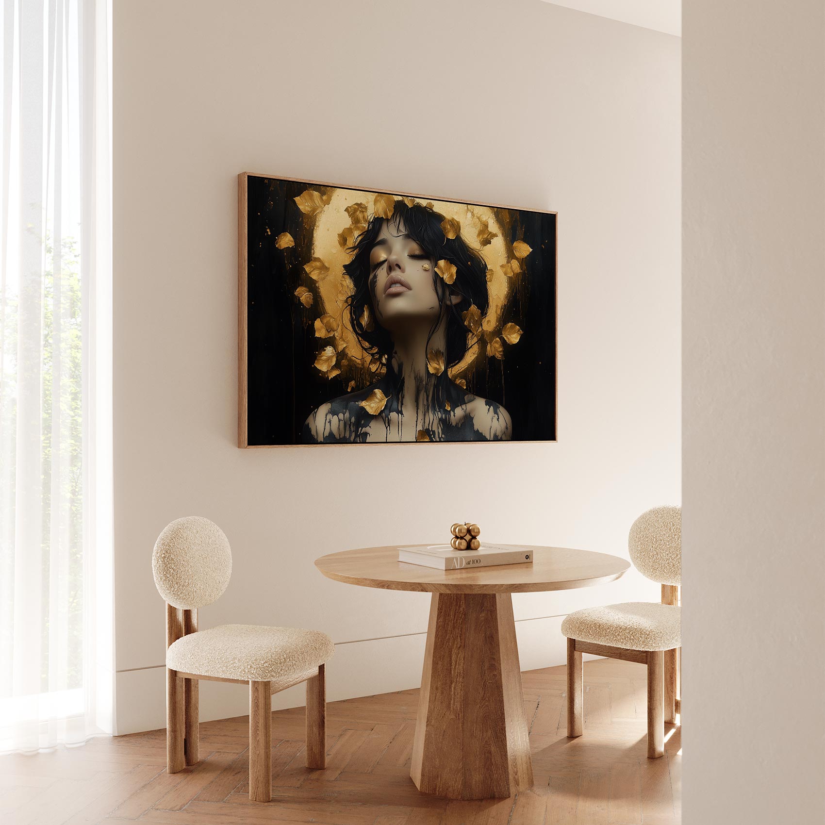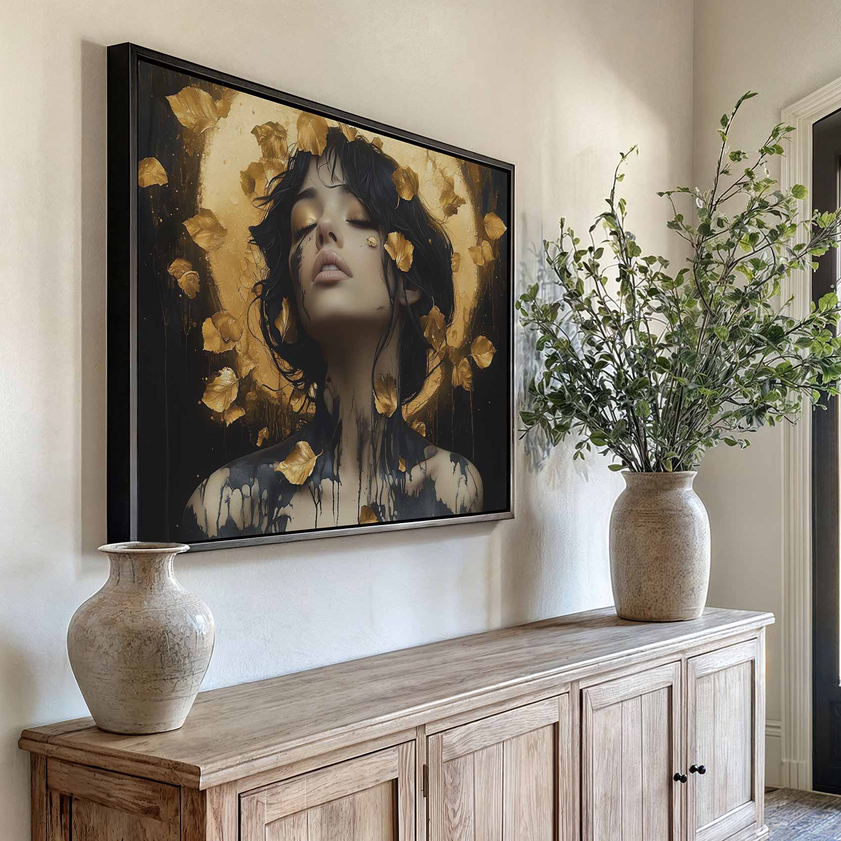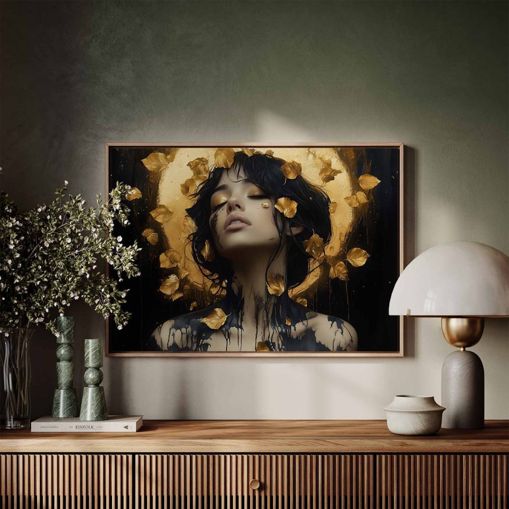 Terug naar collectie / Schilderijen / Abstract Schilderij / Gouden Mystieke Vrouwensilhouet