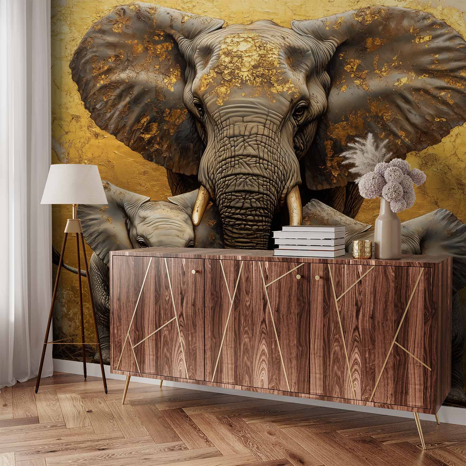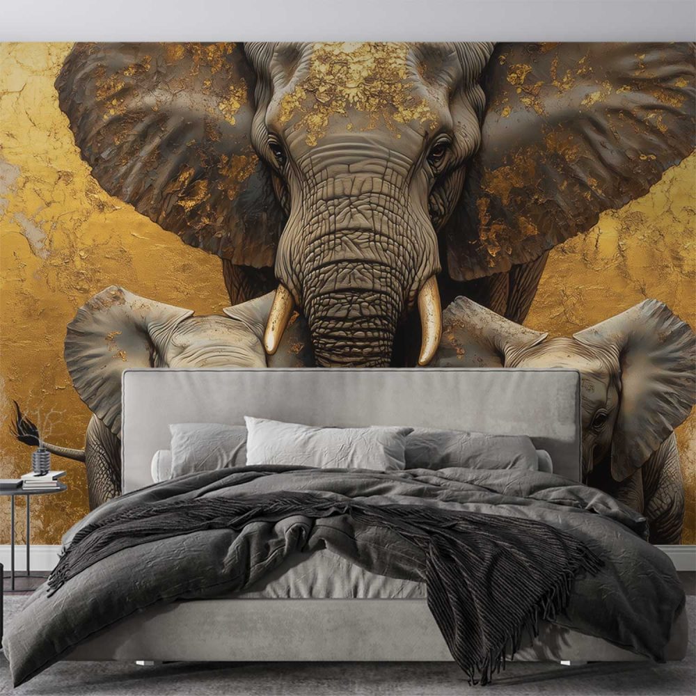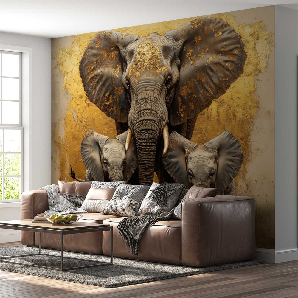 Gouden Olifantenfamilie behang