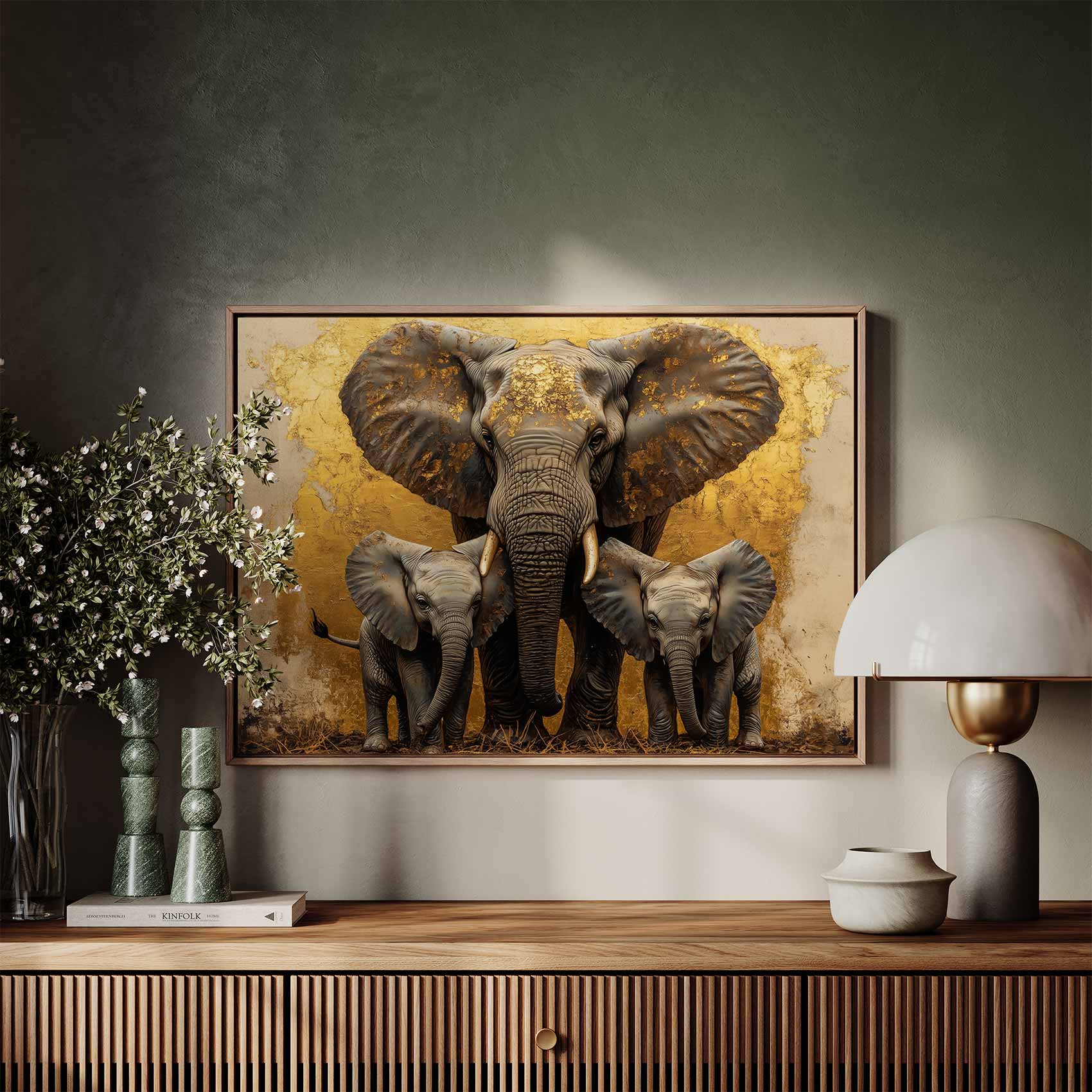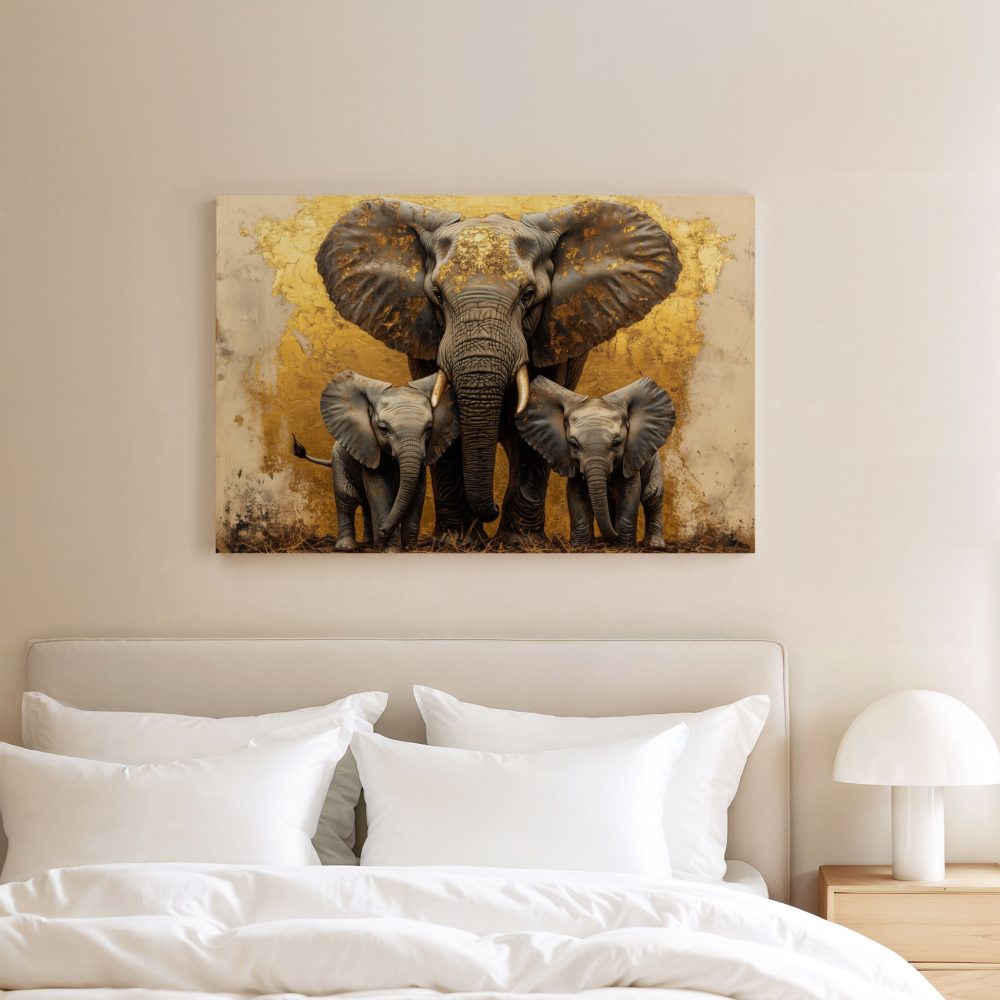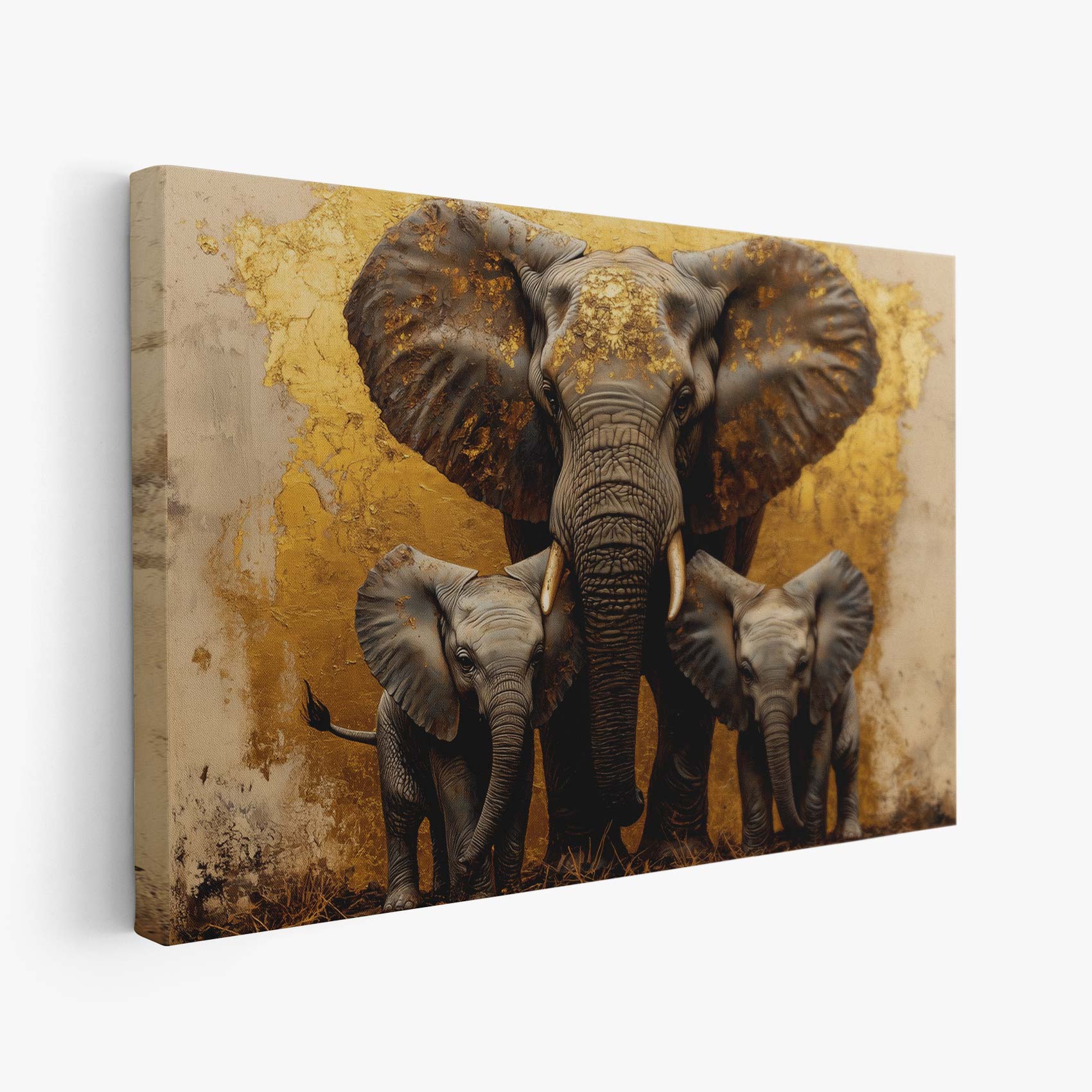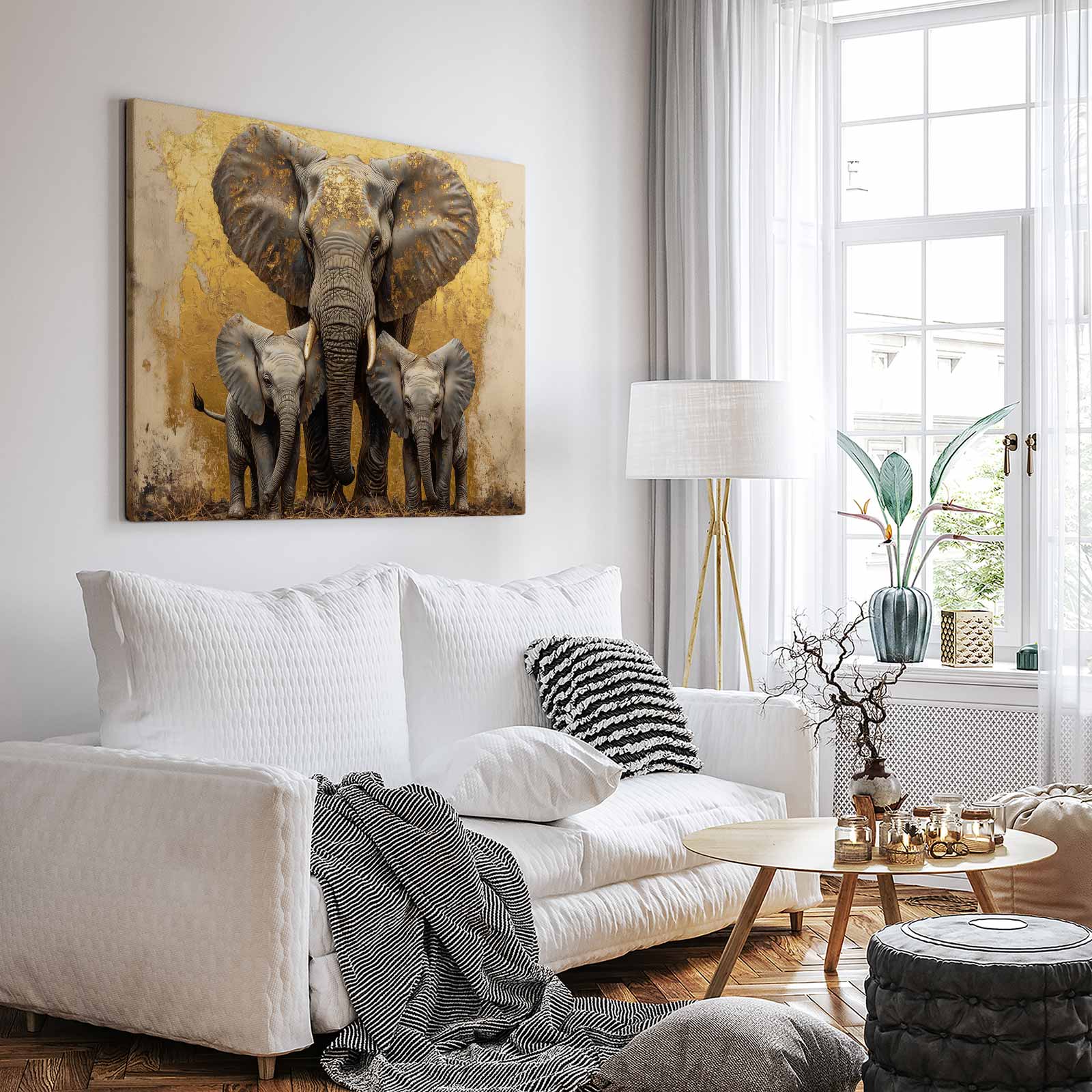 Terug naar collectie / Schilderijen / Dieren Schilderij / Gouden Olifantenfamilie Harmonie