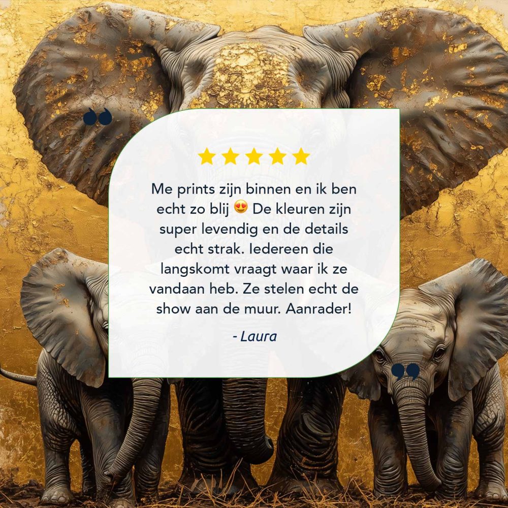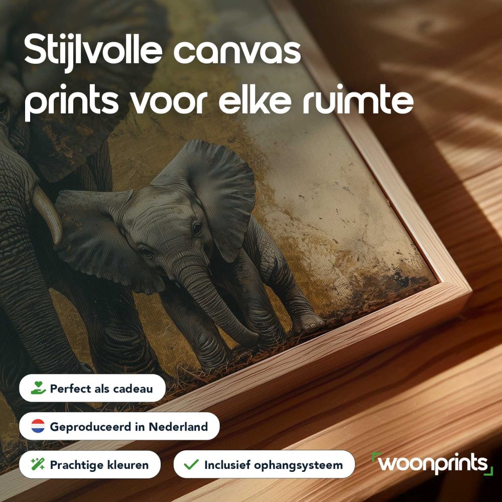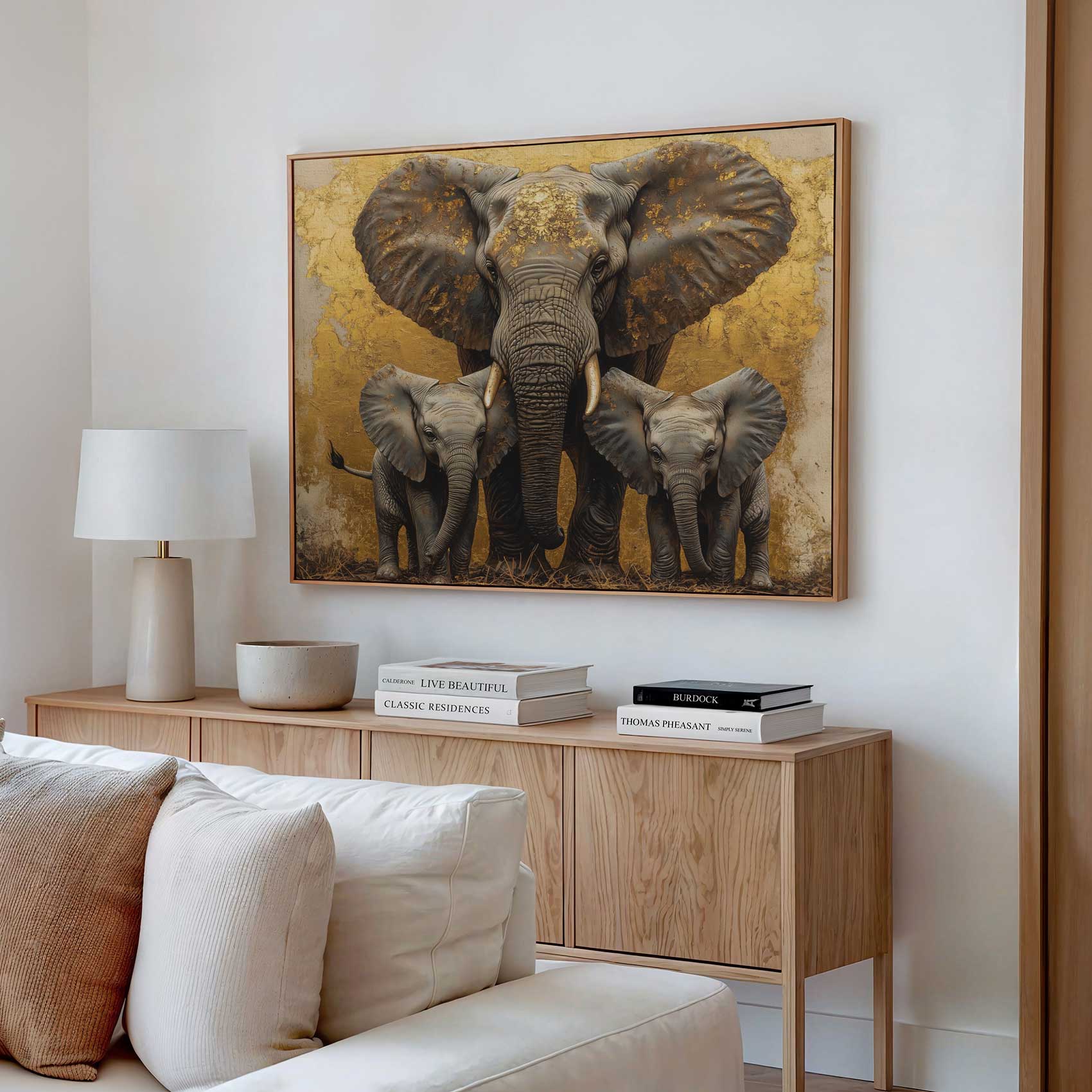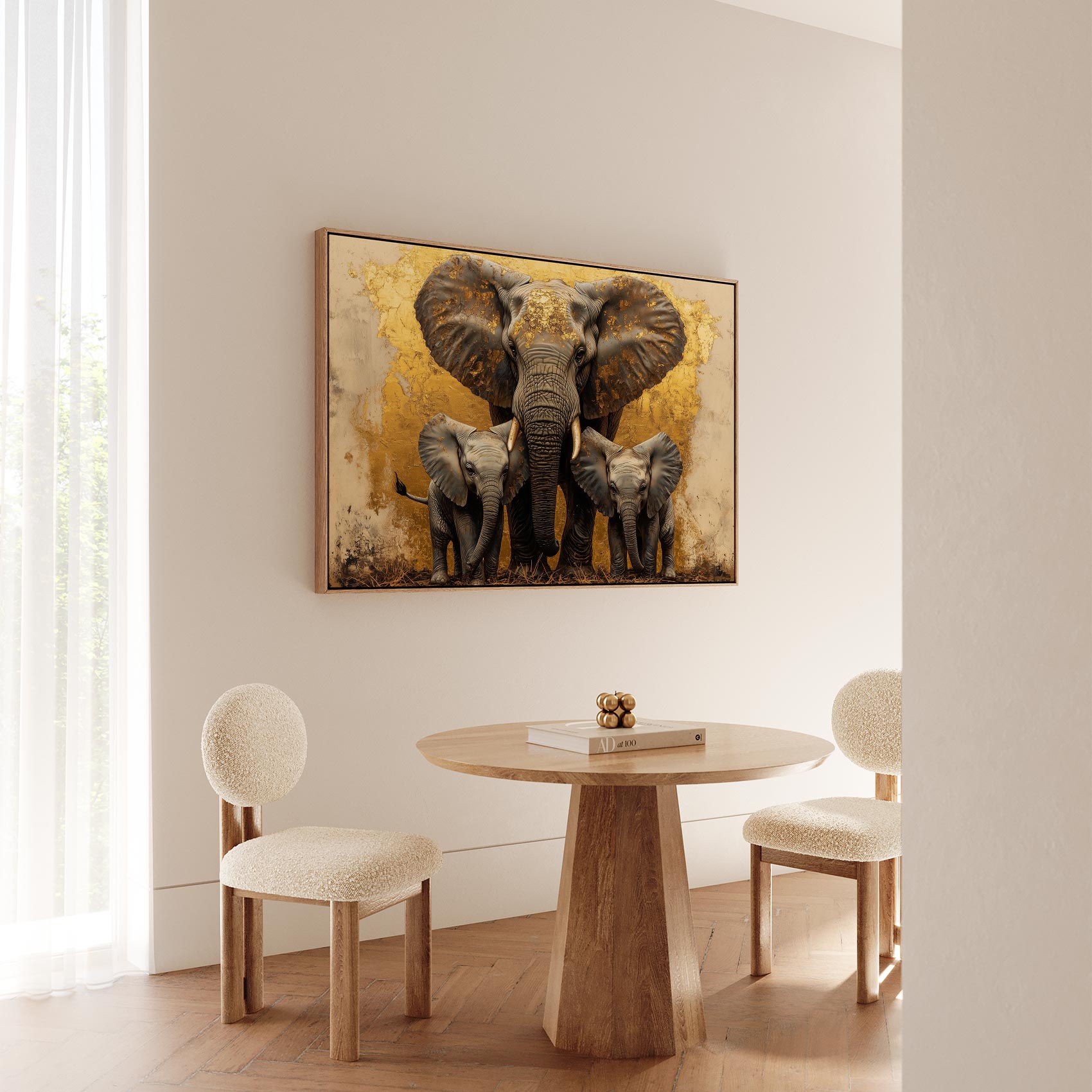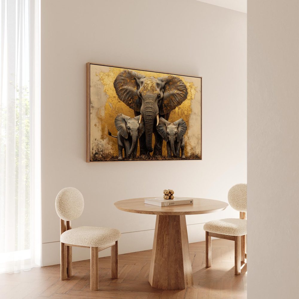 Terug naar collectie / Schilderijen / Dieren Schilderij / Gouden Olifantenfamilie Harmonie