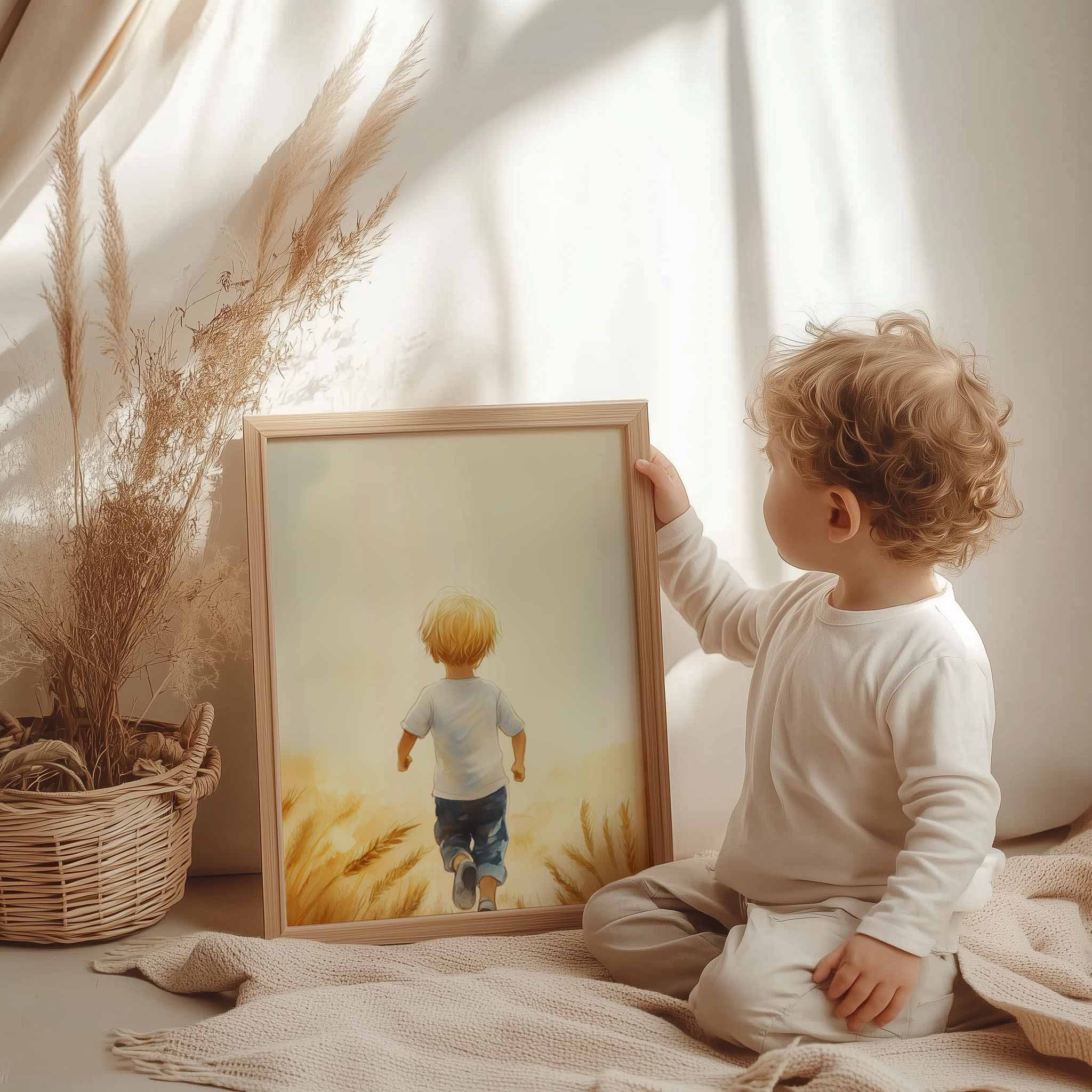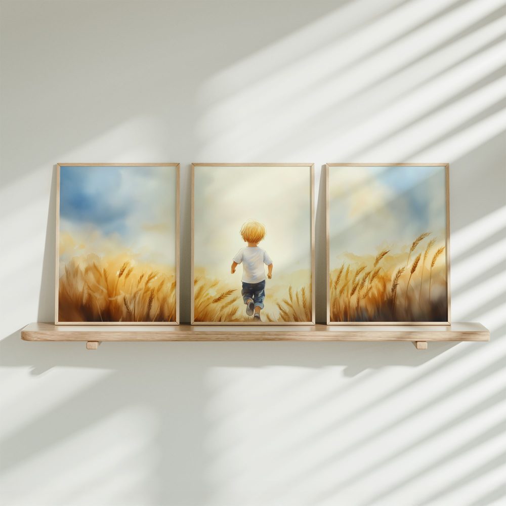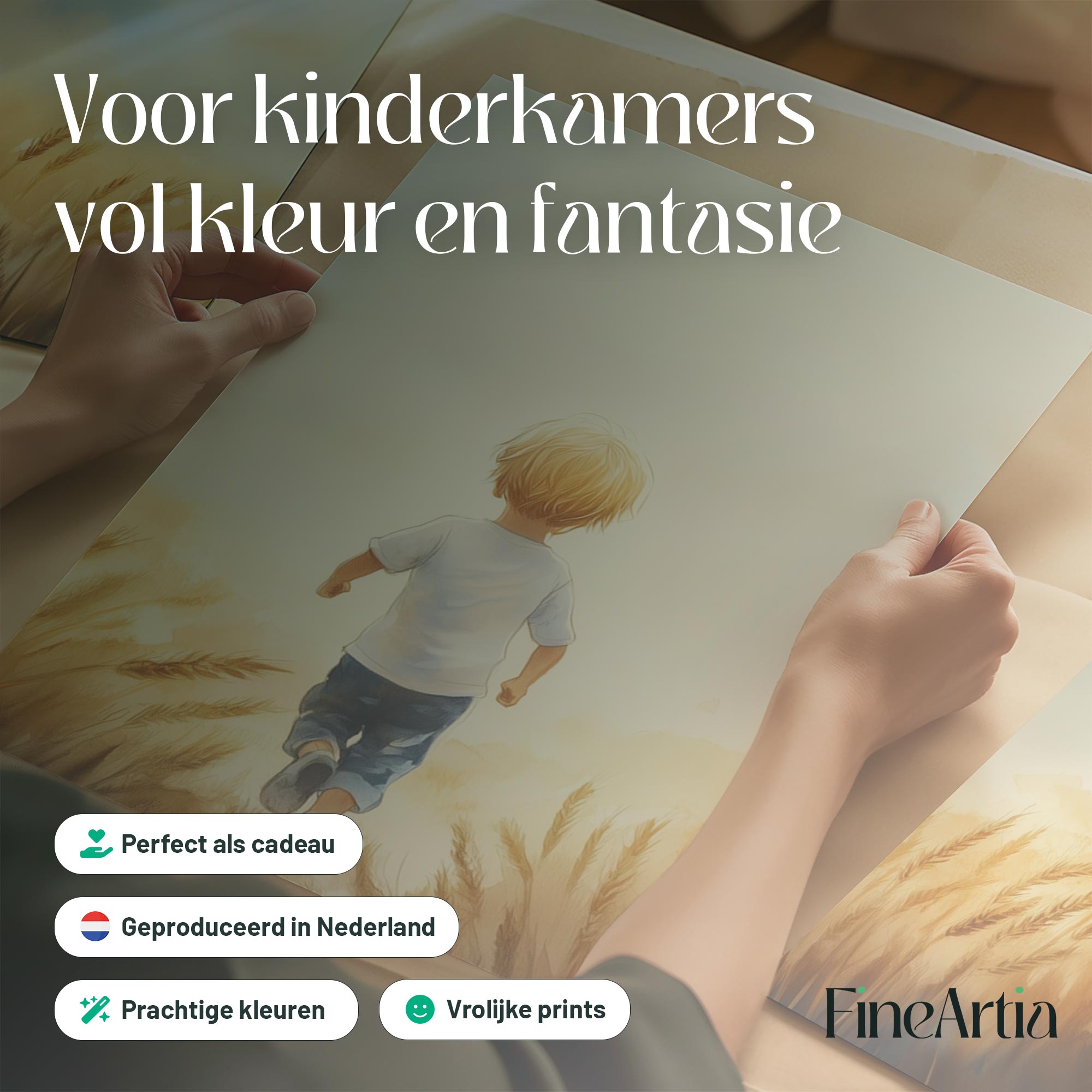 Terug naar collectie / Kinderkamer posters / Avontuurlijk posters / Gouden Tarweveld Avontuur – Speels Jongensportret
