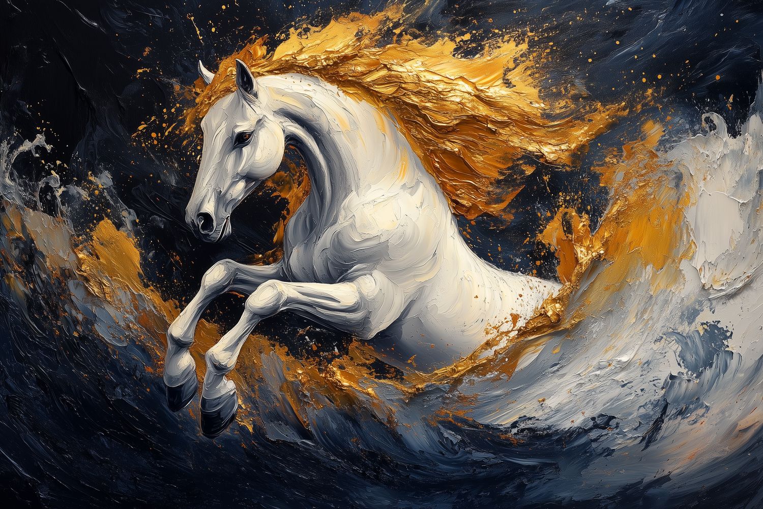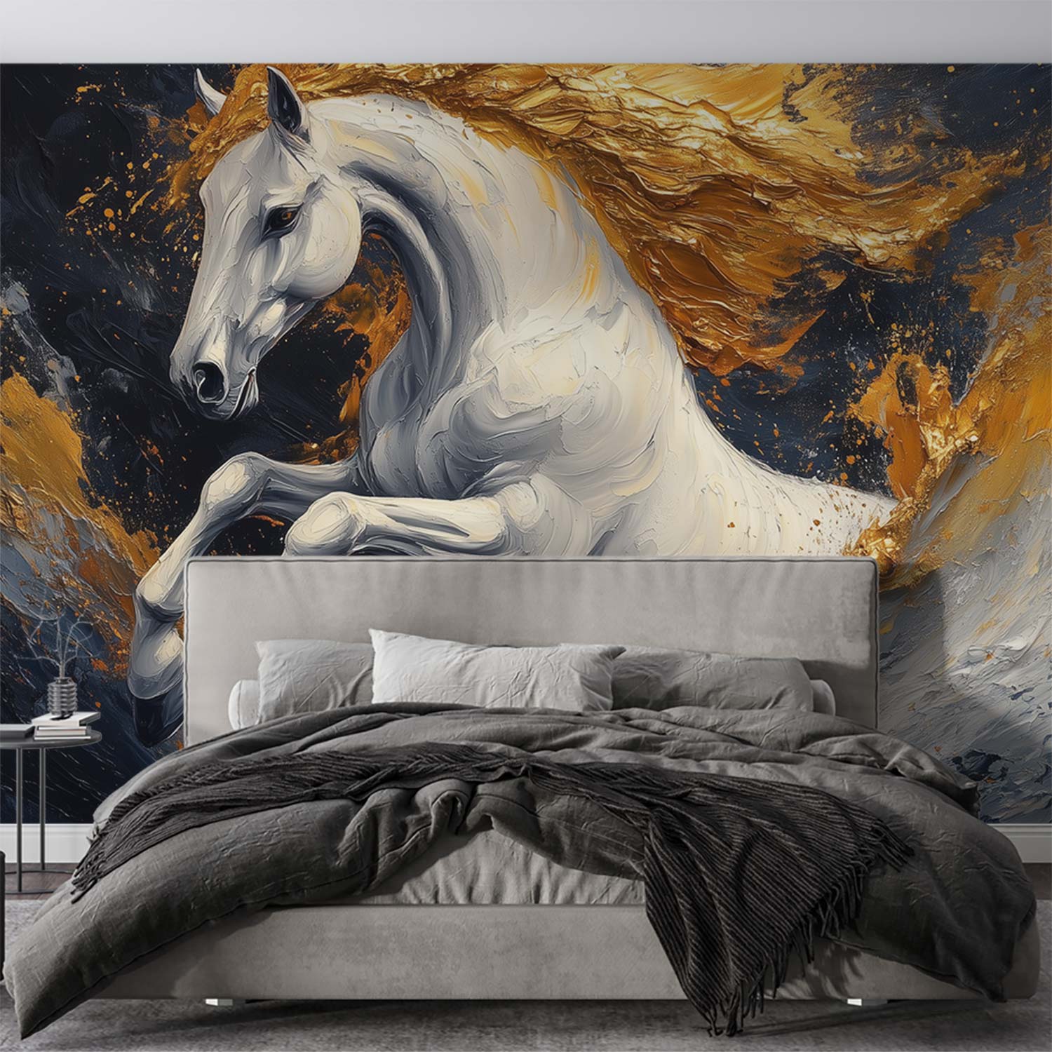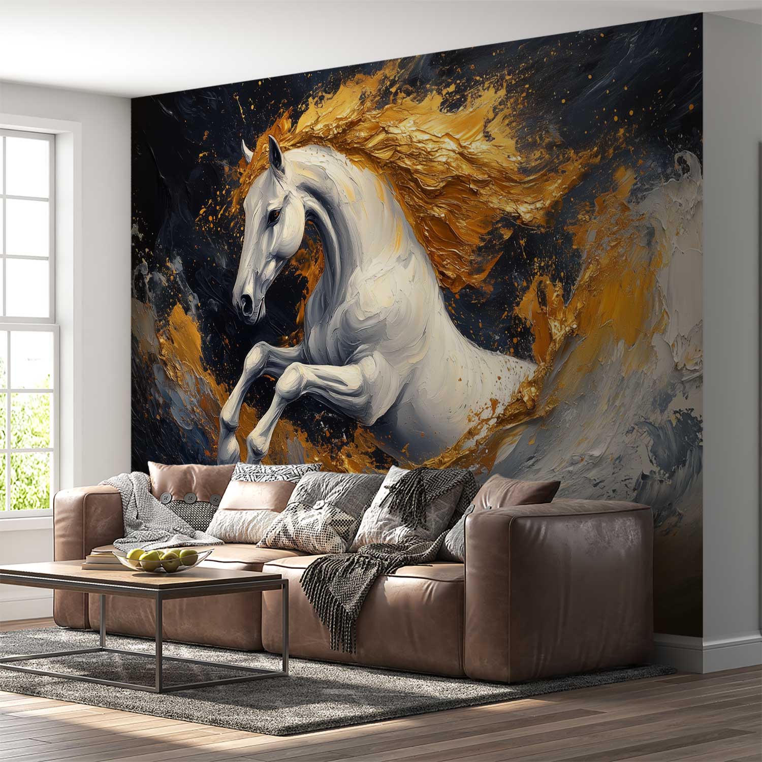 Gouden vlammende renpaard behang