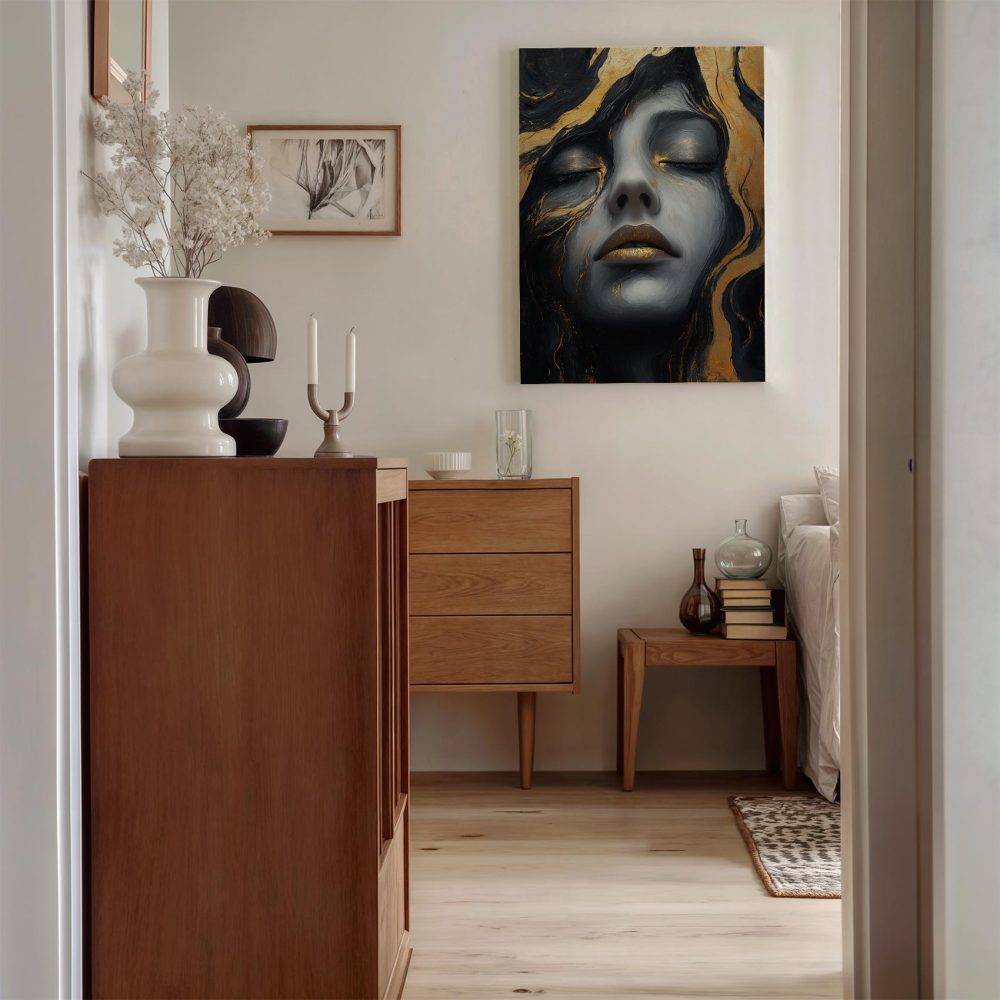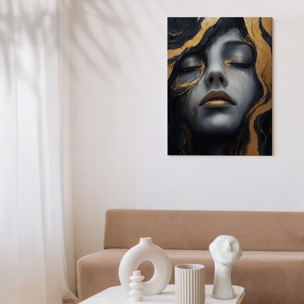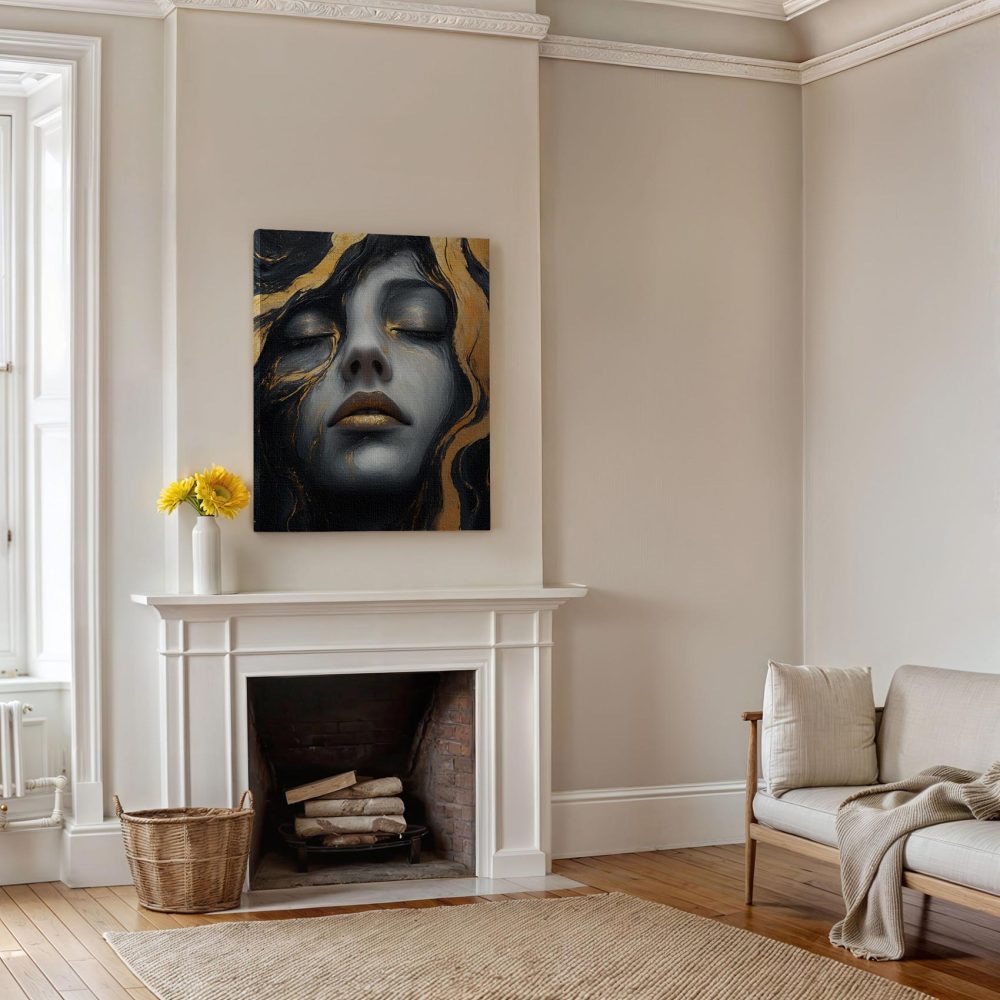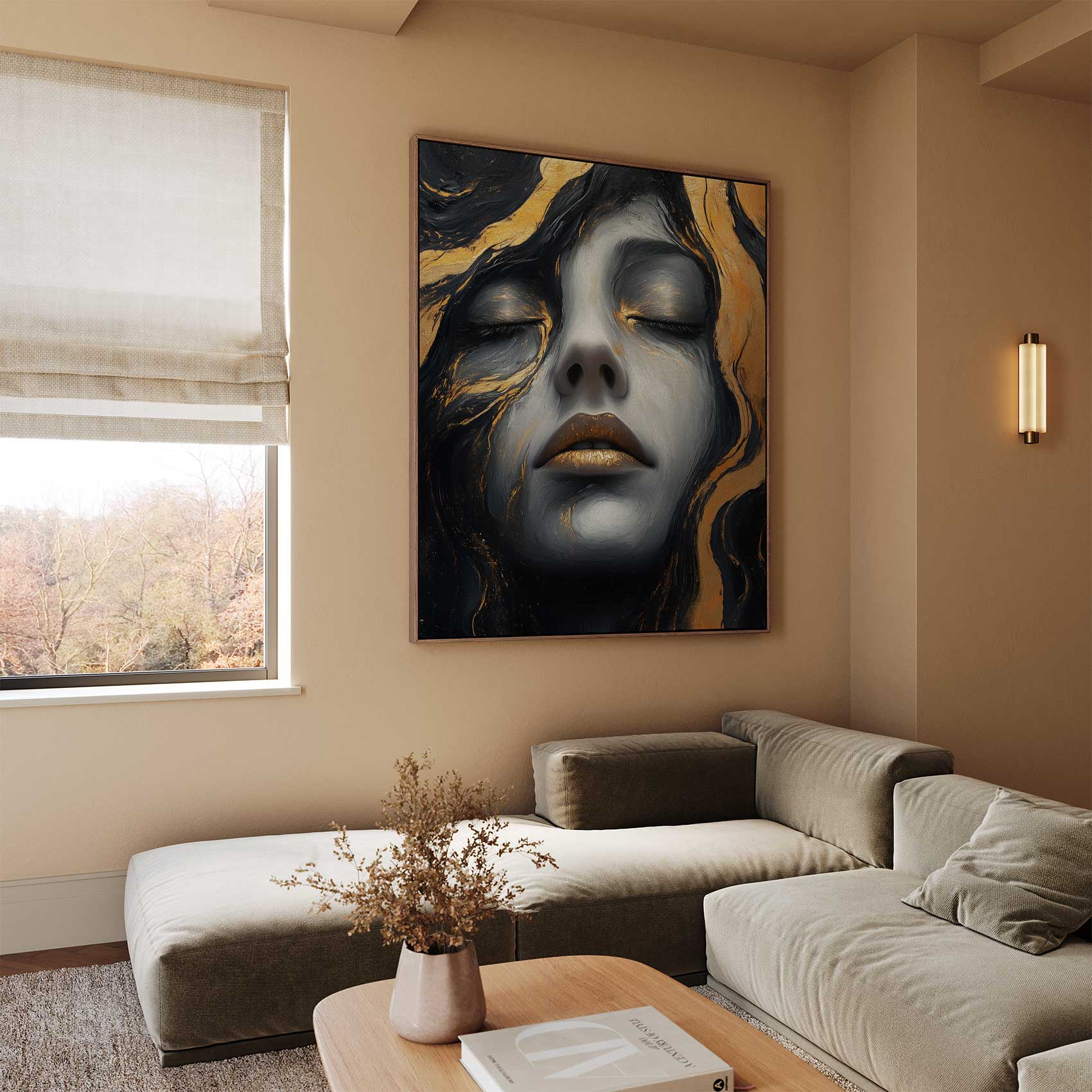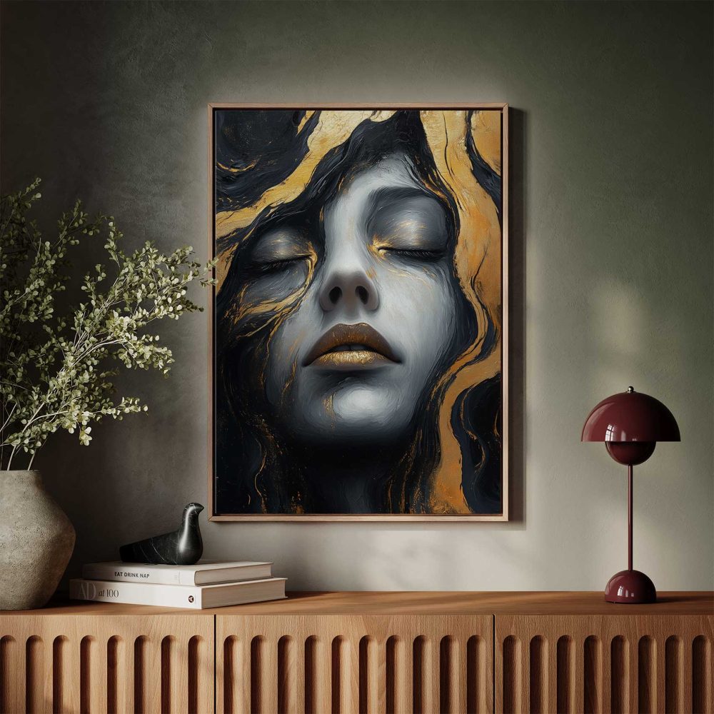 Terug naar collectie / Schilderijen / Exotisch Schilderij / Gouden Vrouw met Gesloten Ogen
