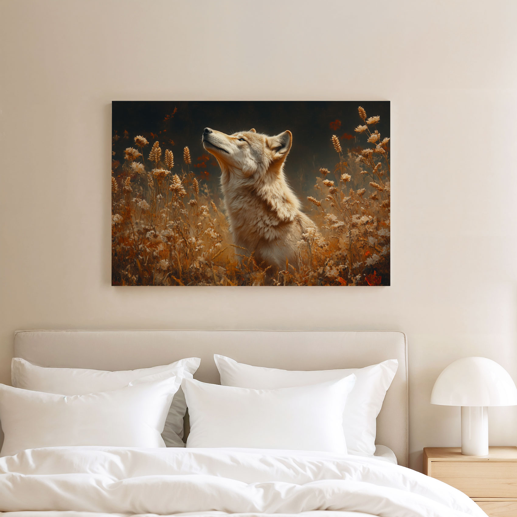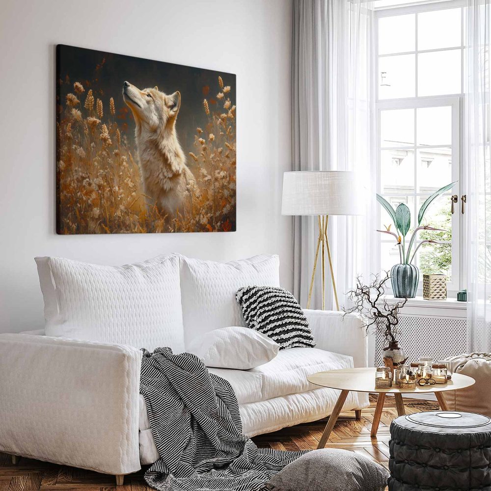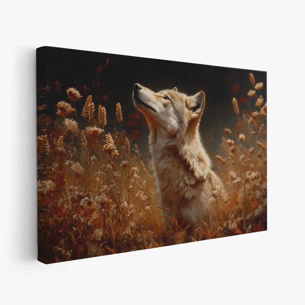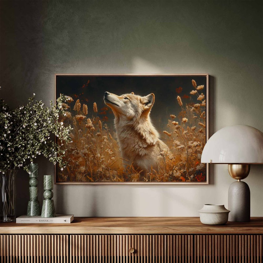 Terug naar collectie / Schilderijen / Bloemen Schilderij / Gouden wolf in bloemenveld