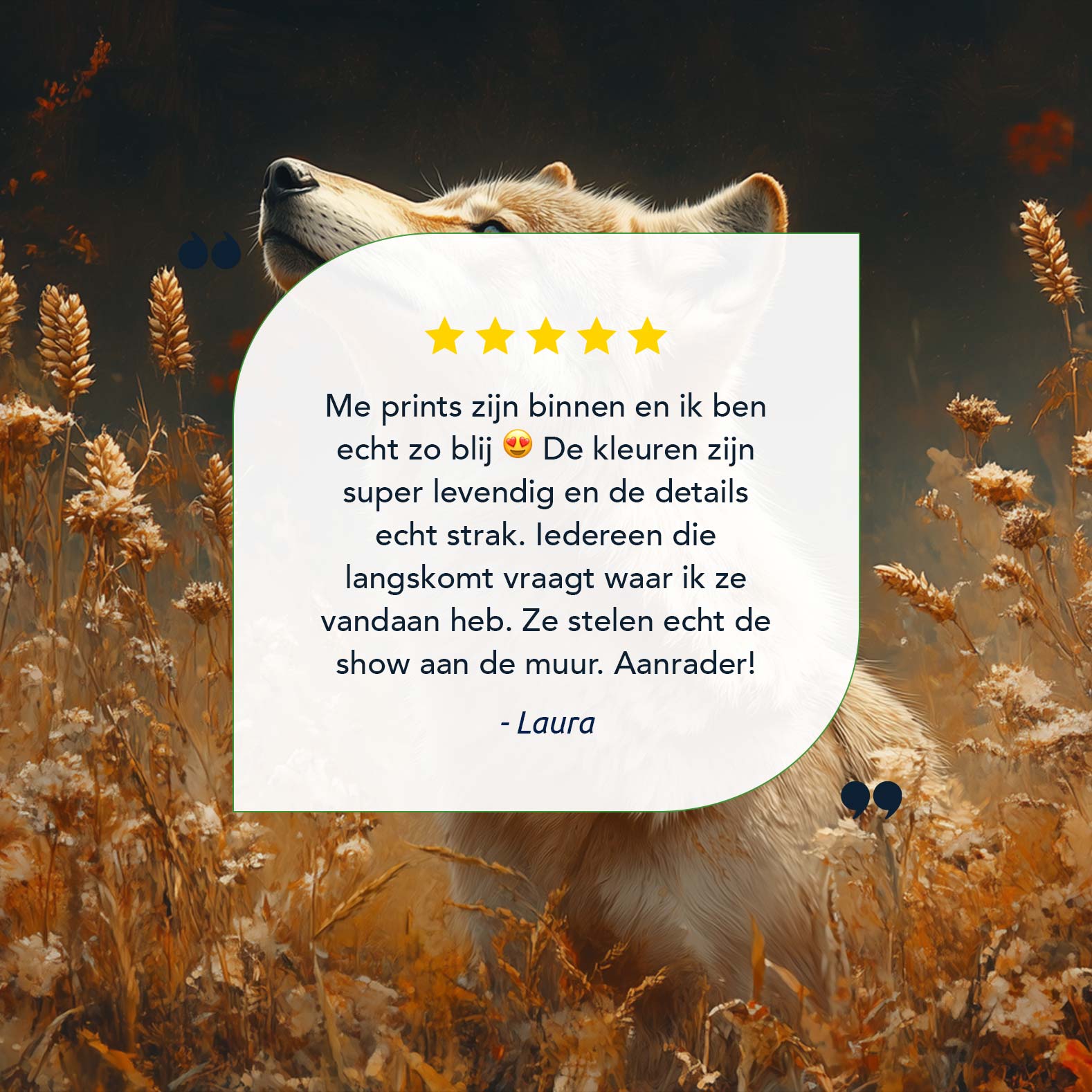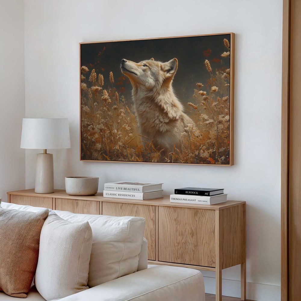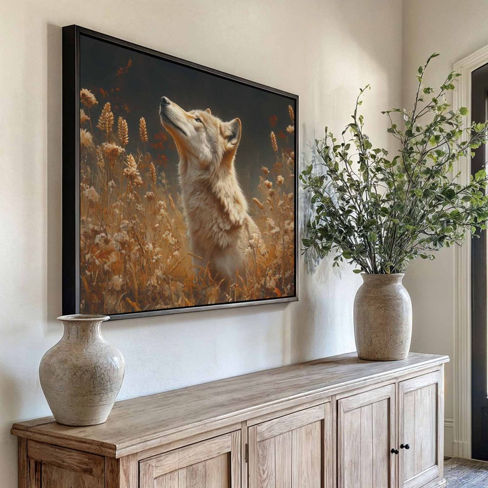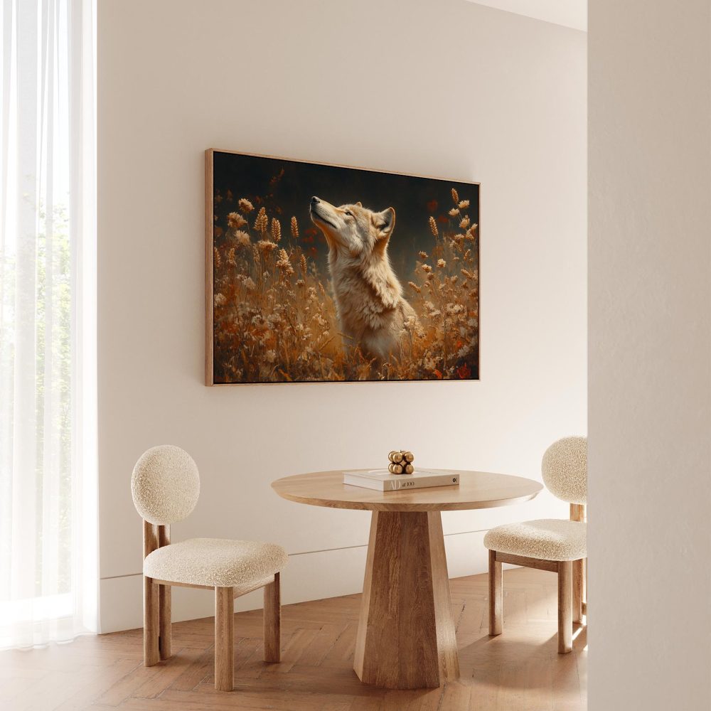 Terug naar collectie / Schilderijen / Bloemen Schilderij / Gouden wolf in bloemenveld