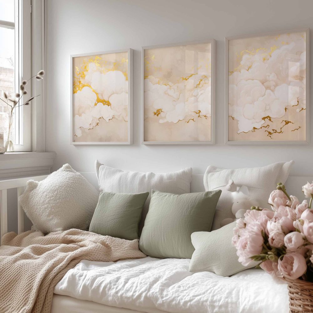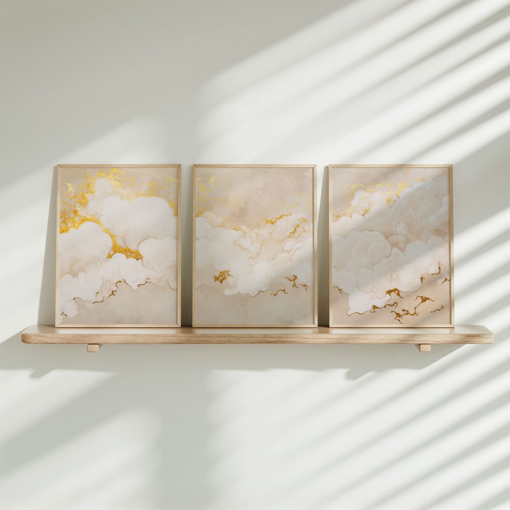 Gouden Wolkendroom – Elegante en Dromerige Wanddecoratie