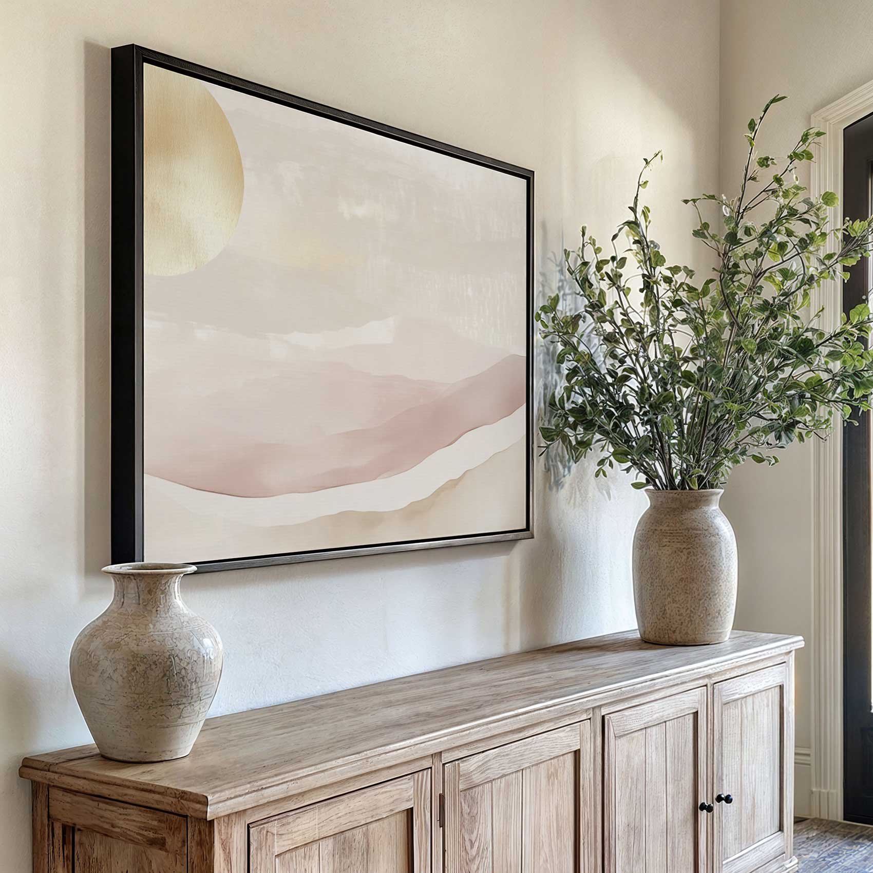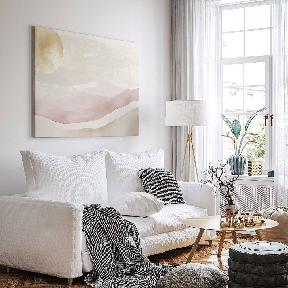 Terug naar collectie / Schilderijen / Bergen Schilderij / Gouden Zonsondergang Landschap