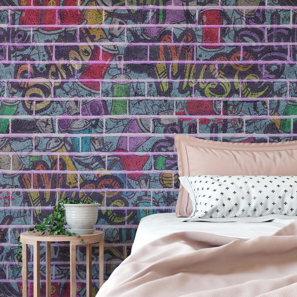 Graffiti Behang Kleurrijke Stadsgevel
