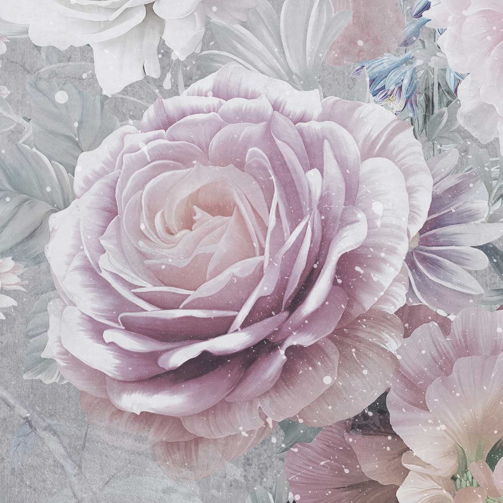 Terug naar collectie / Behang / Grijs Bloemen Behang met Paarse Roos