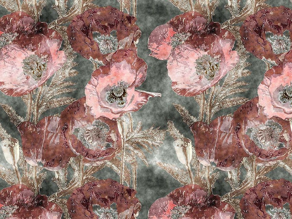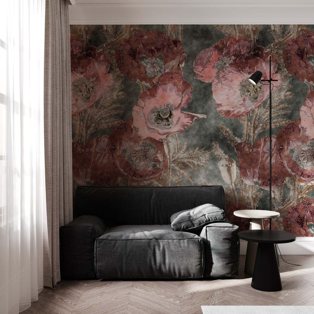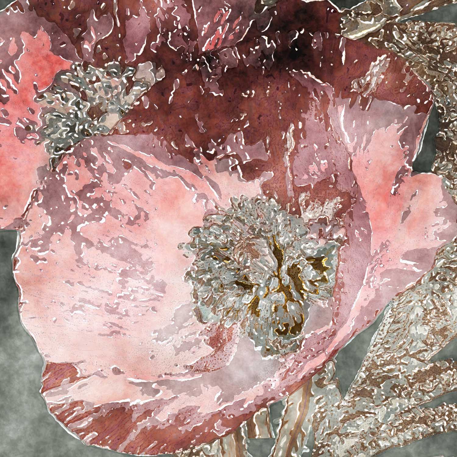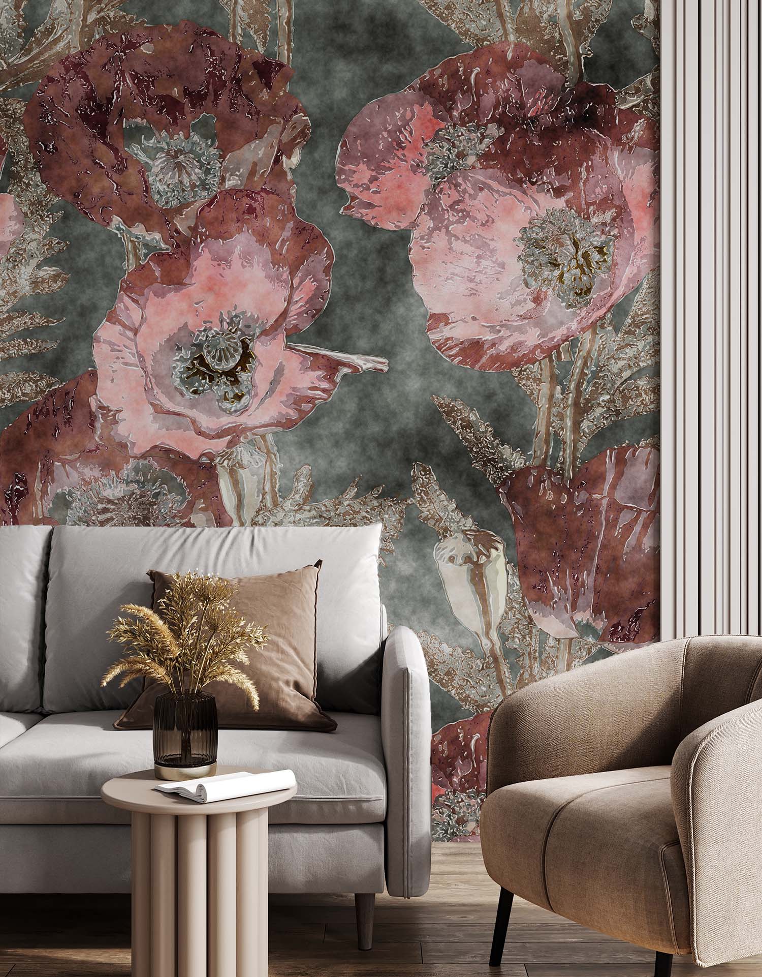 Terug naar collectie / Behang / Grijs Bloemen Behang met Roze Accenten