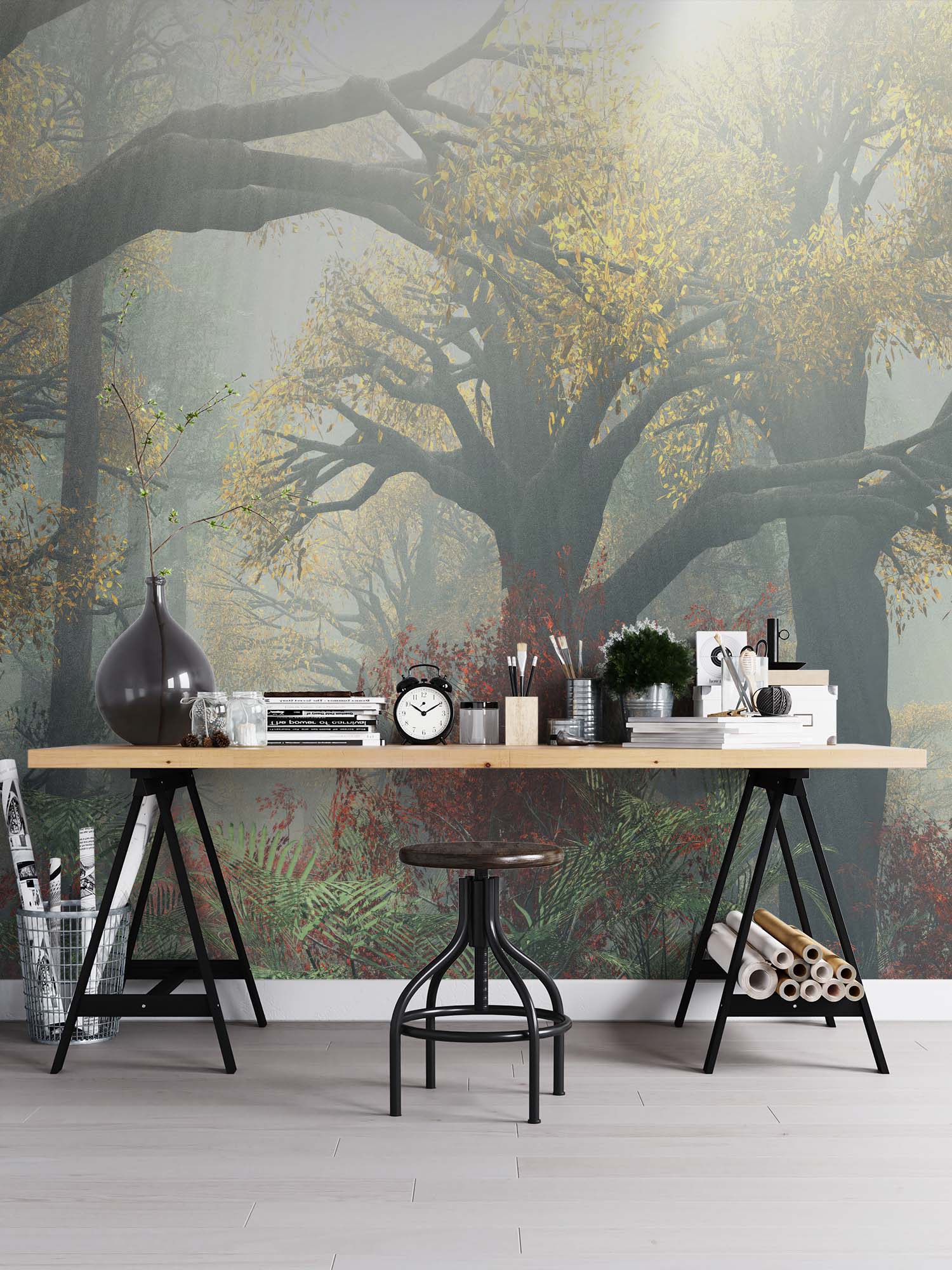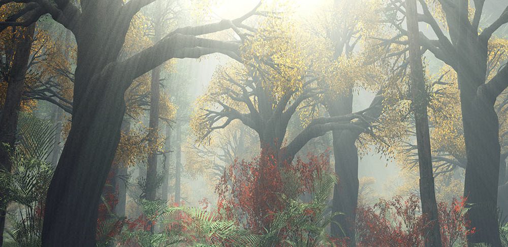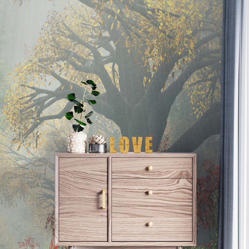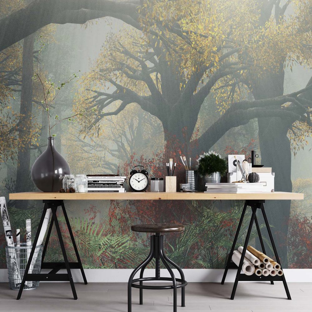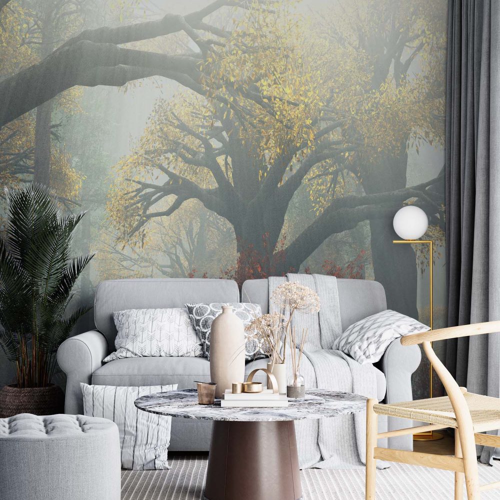 Terug naar collectie / Behang / Groen Gouden Natuur Behang – Zonovergoten Bos
