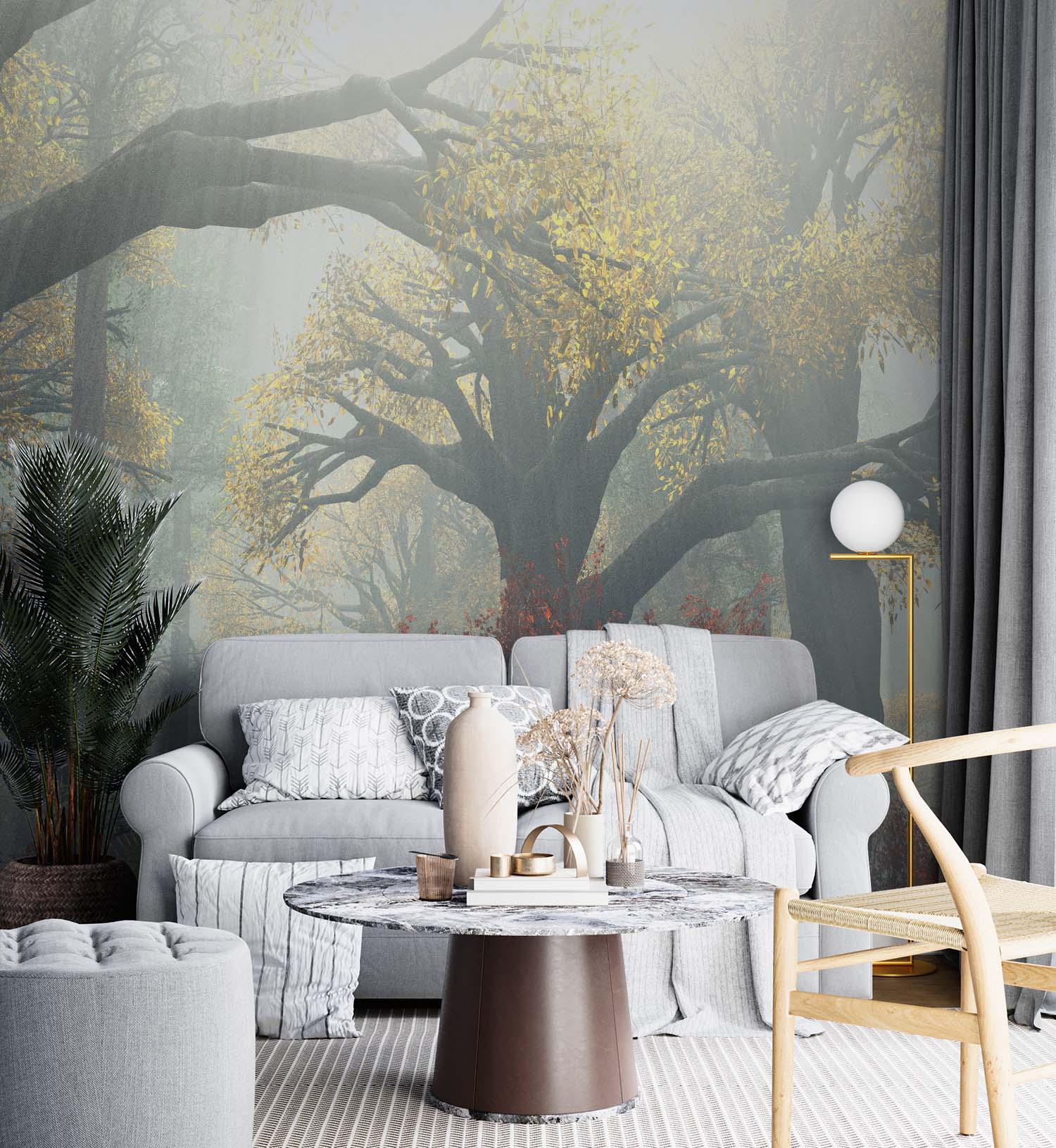 U ontvangt een staal van 15 × 20 cm op Variovlies behang, met dezelfde print en structuur als het uiteindelijke product. Zo kunt u thuis rustig beoordelen of het ontwerp goed past.