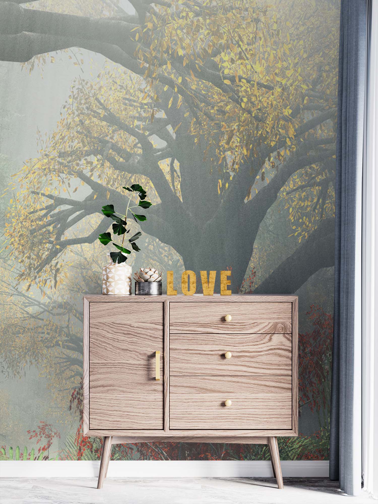 Groen Gouden Natuur Behang – Zonovergoten Bos