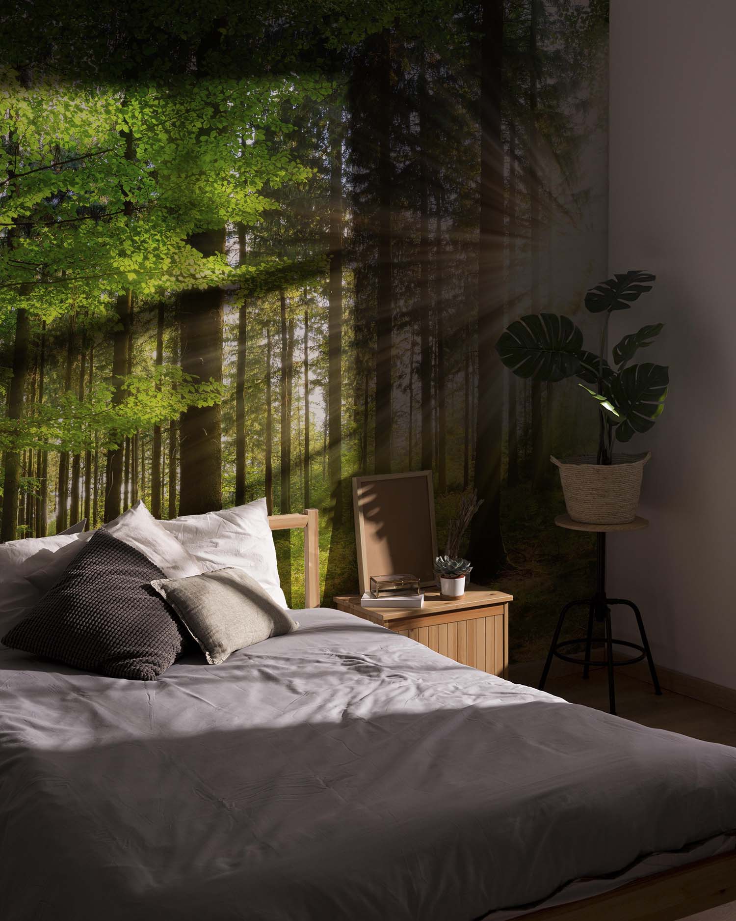 U ontvangt een staal van 15 × 20 cm op Variovlies behang, met dezelfde print en structuur als het uiteindelijke product. Zo kunt u thuis rustig beoordelen of het ontwerp goed past.