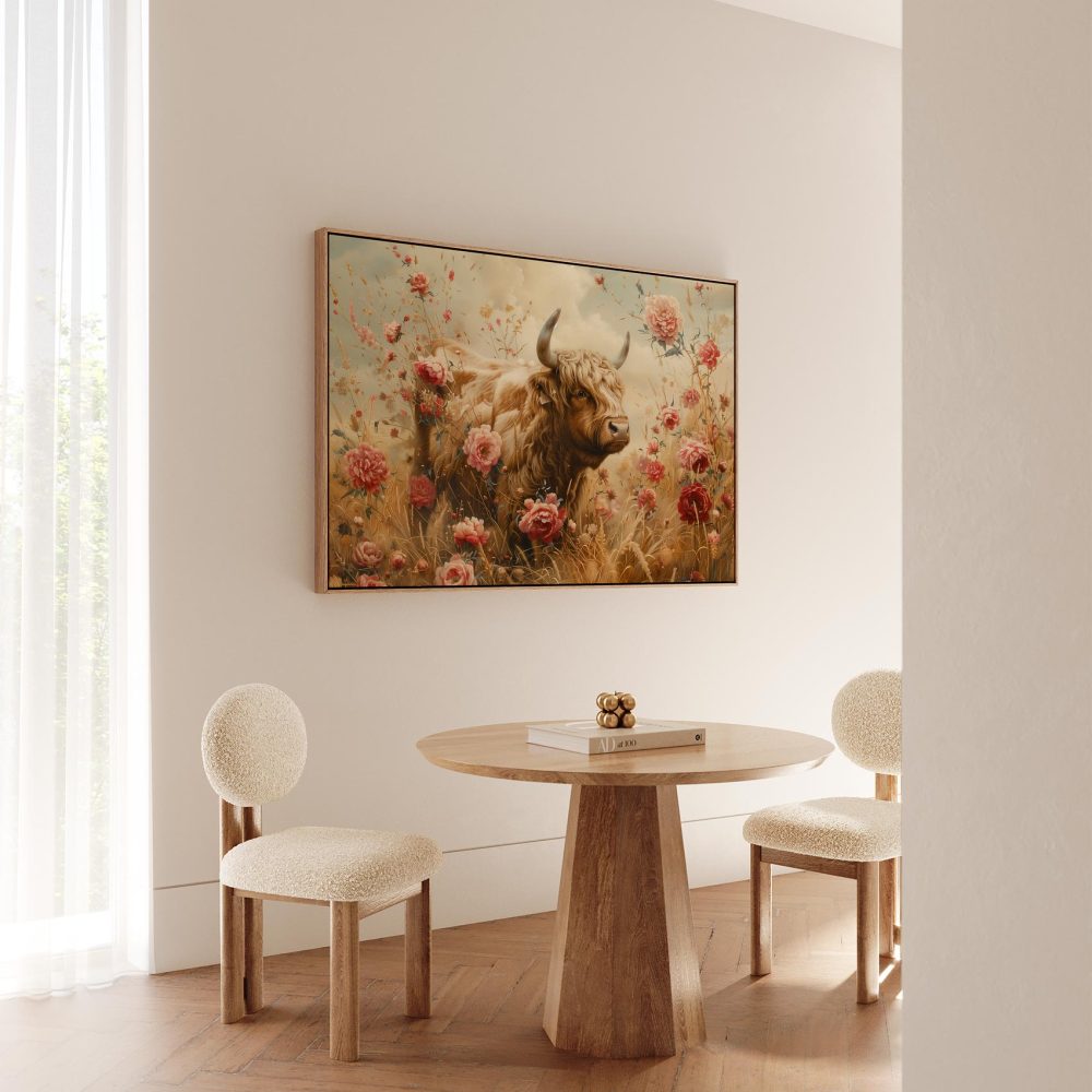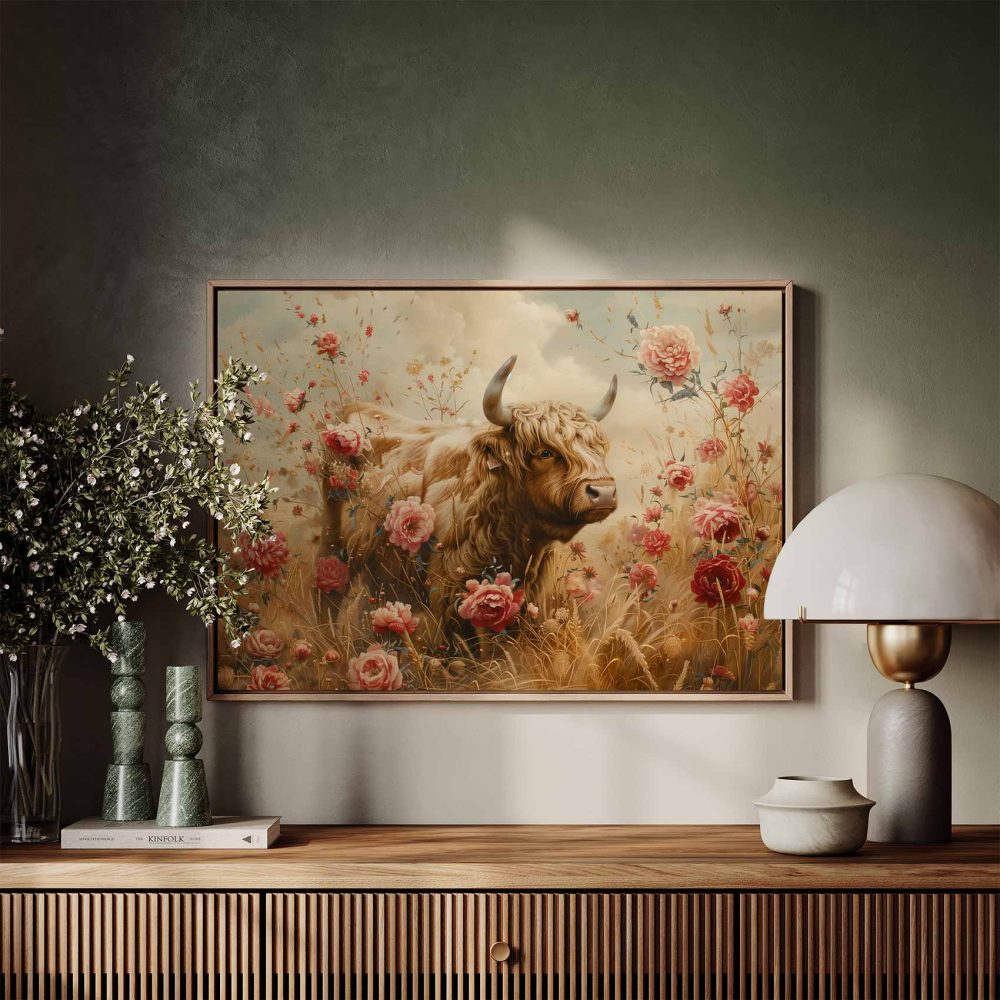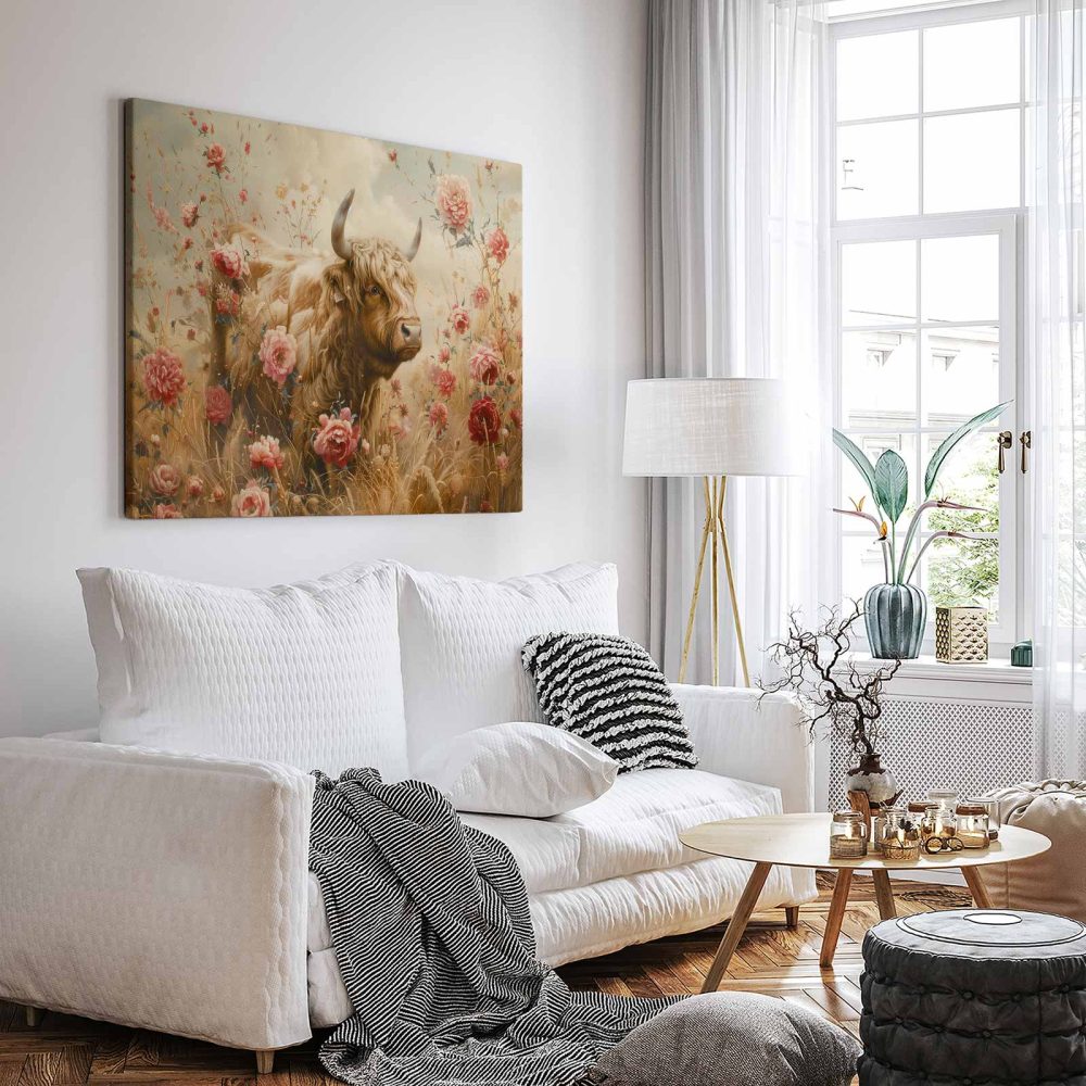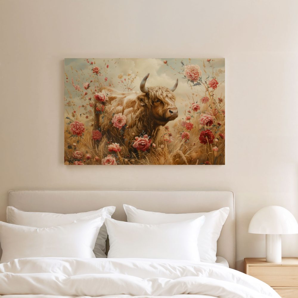 Terug naar collectie / Schilderijen / Bloemen Schilderij / Grote stier tussen bloemenveld
