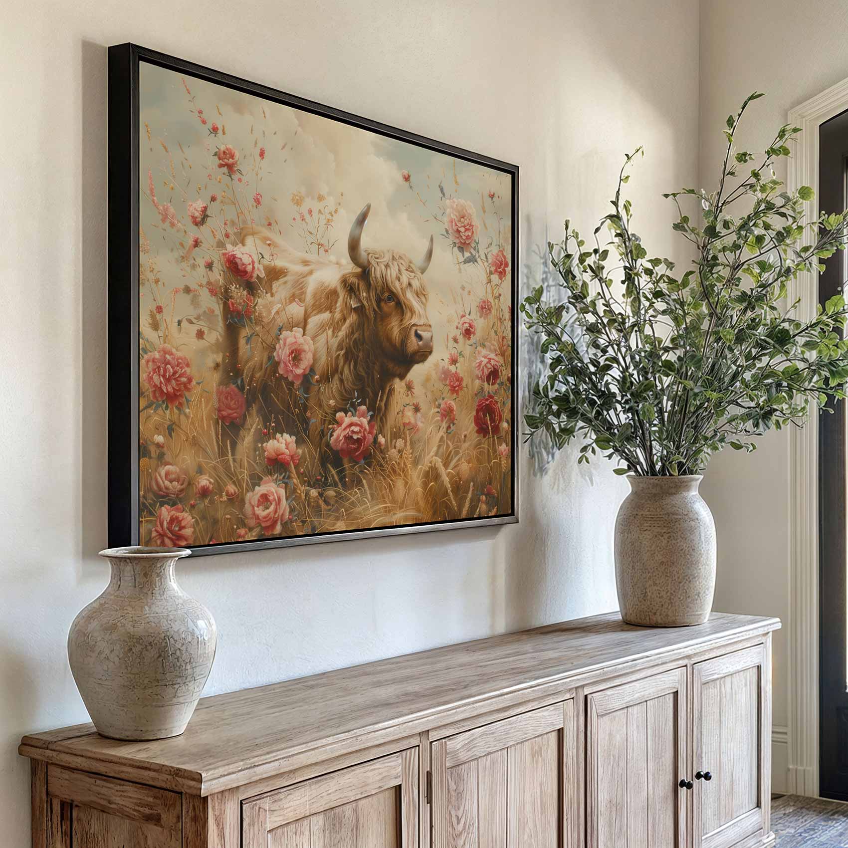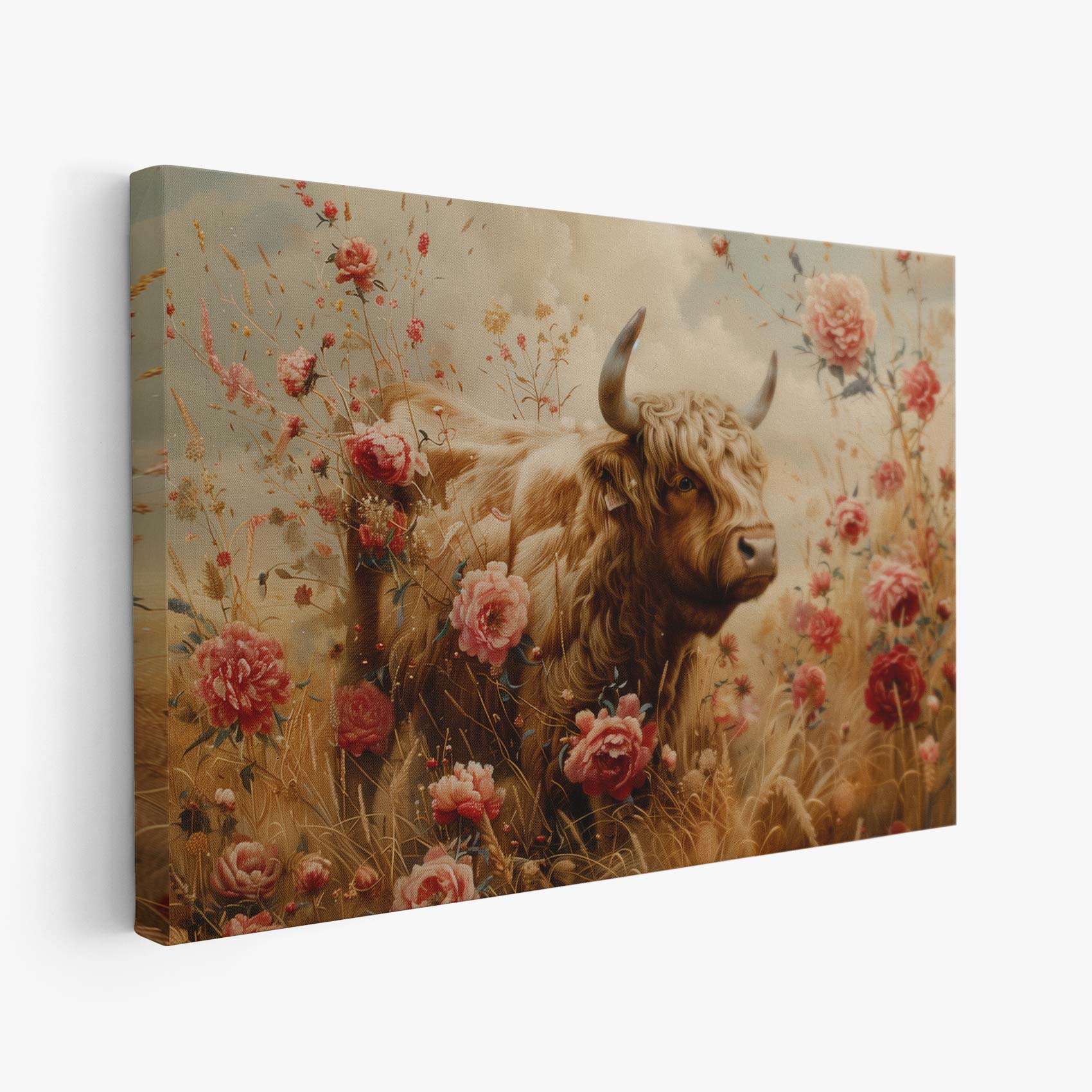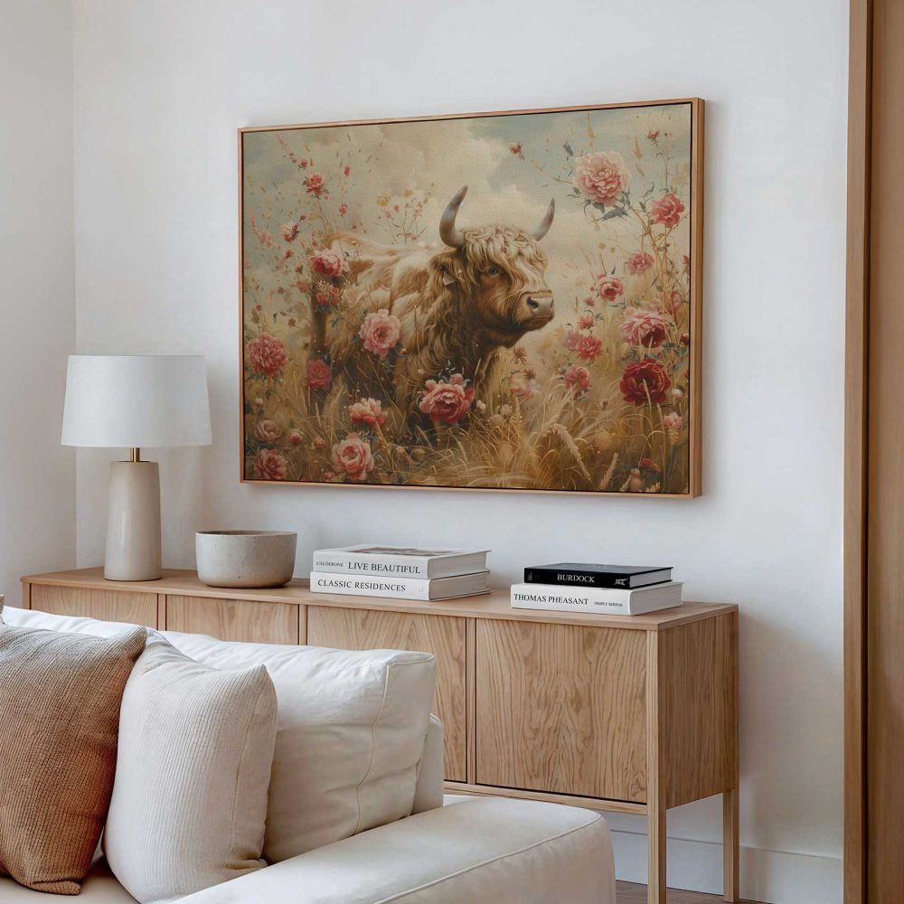 Terug naar collectie / Schilderijen / Bloemen Schilderij / Grote stier tussen bloemenveld
