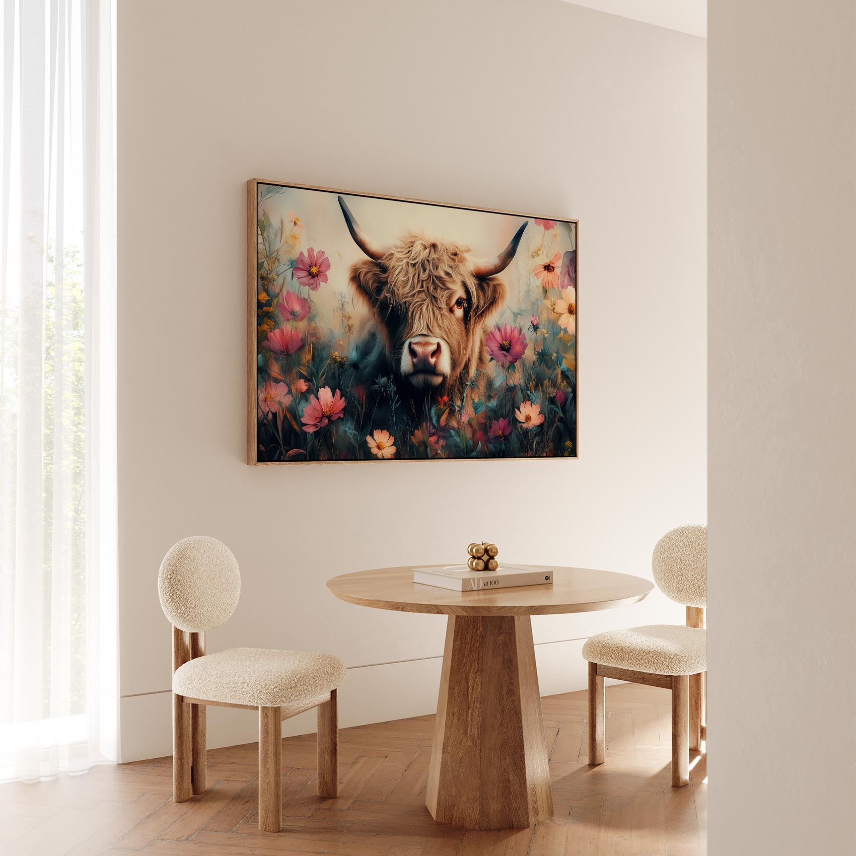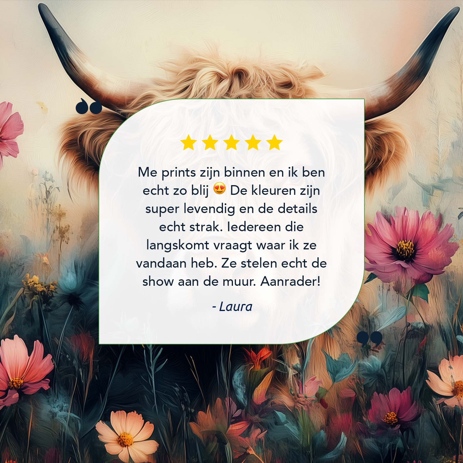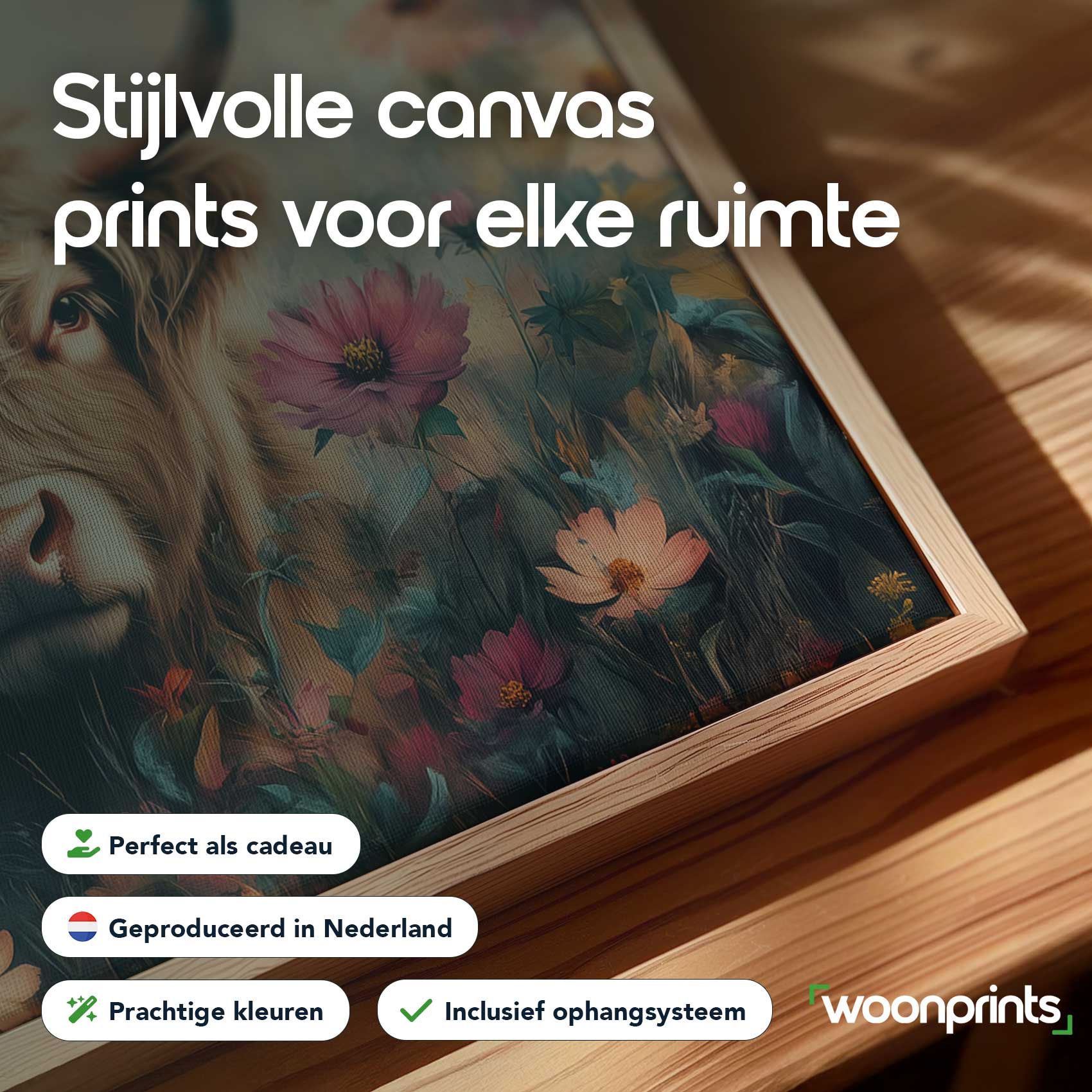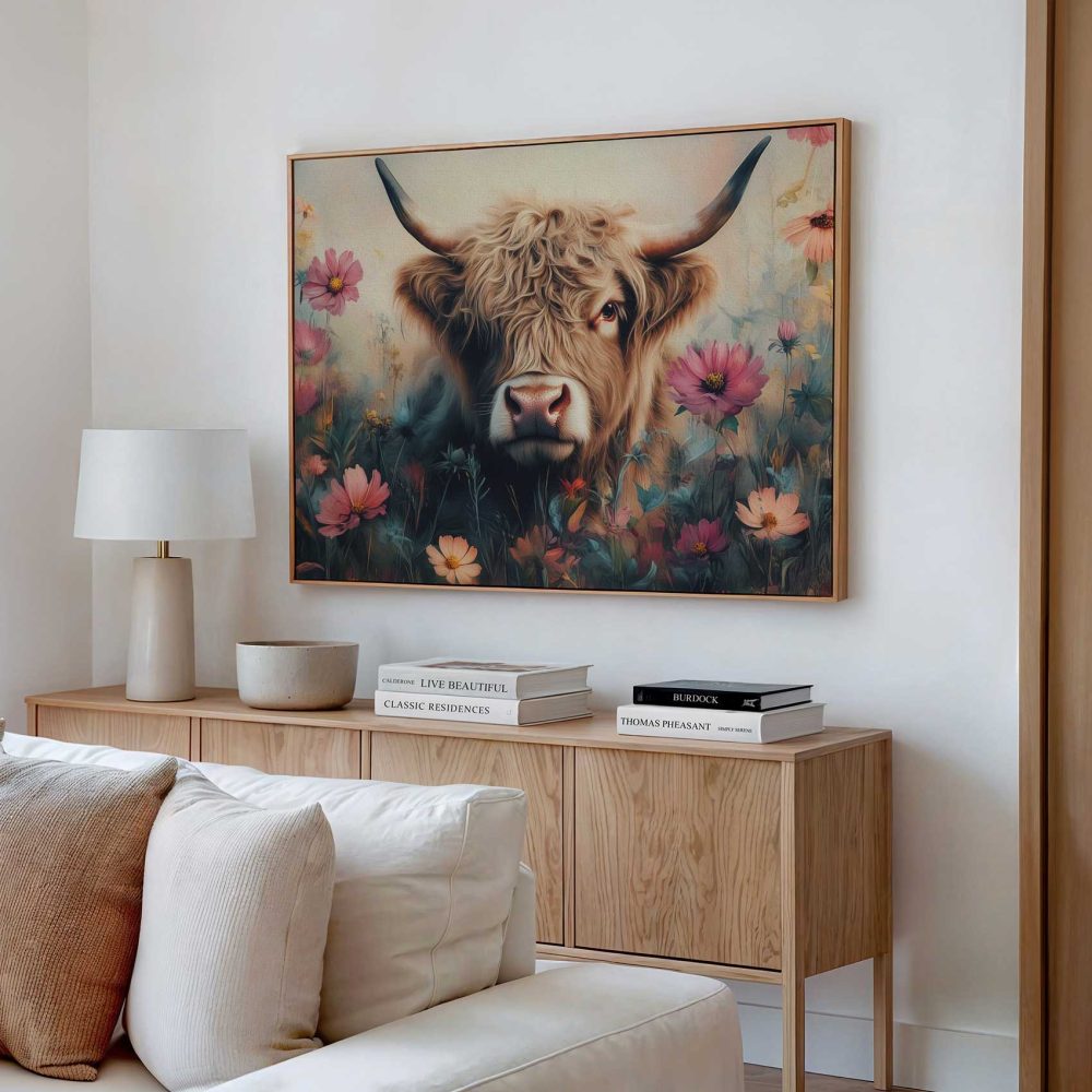 Terug naar collectie / Schilderijen / Bloemen Schilderij / Harige koe in bloemenveld