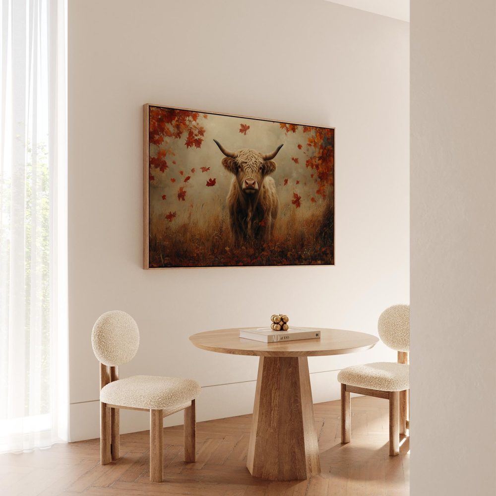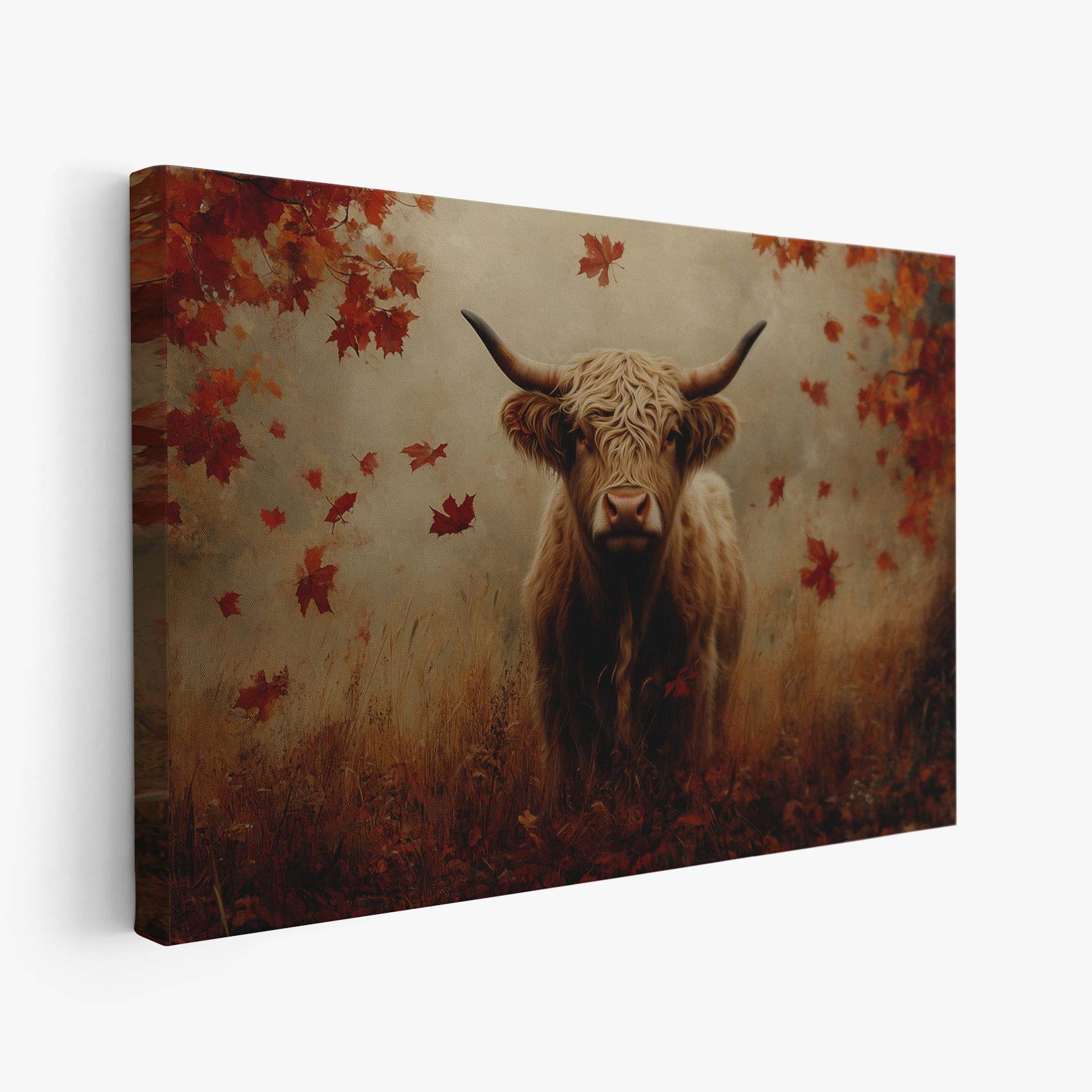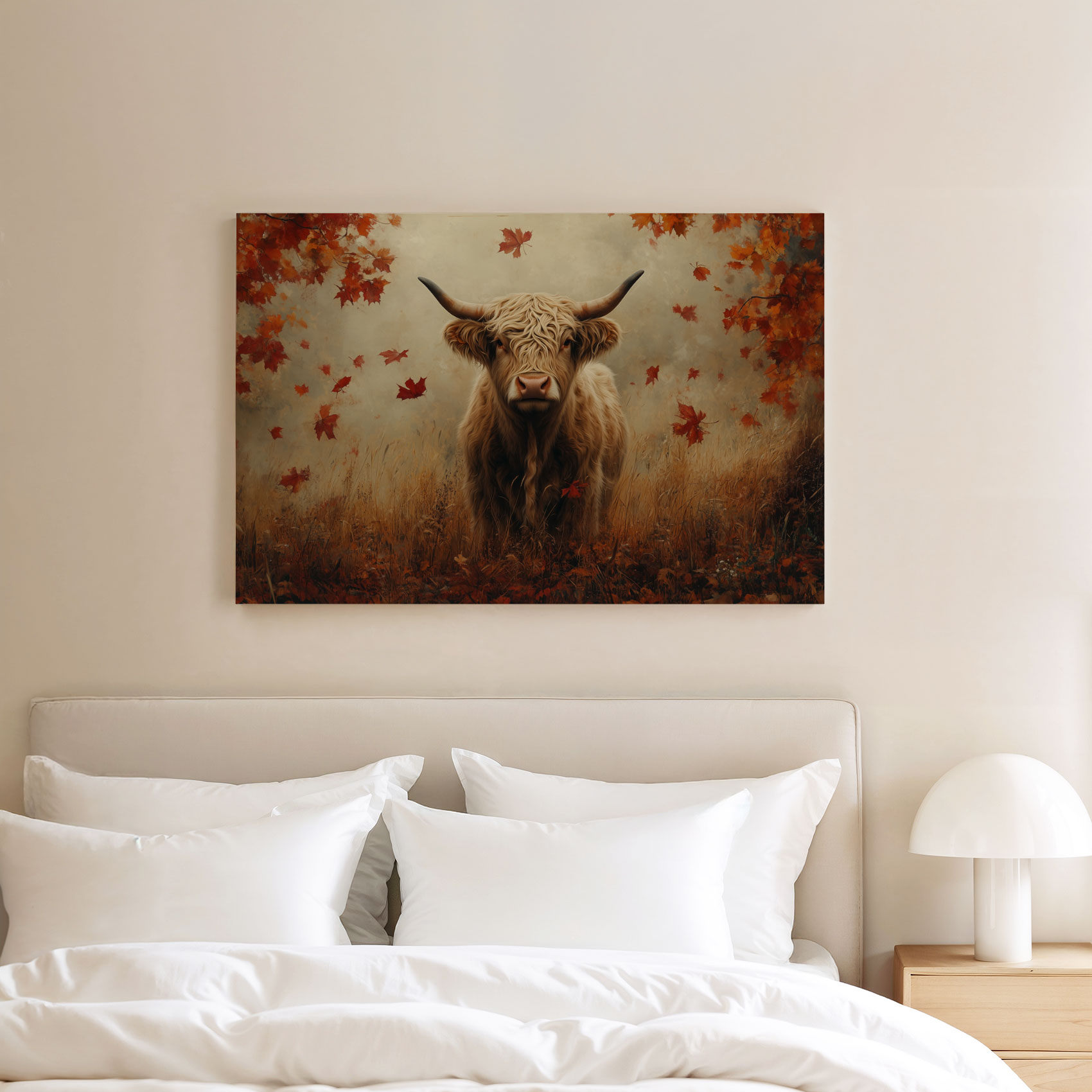 Terug naar collectie / Schilderijen / Bloemen Schilderij / Herfstige koe in roodbladig veld