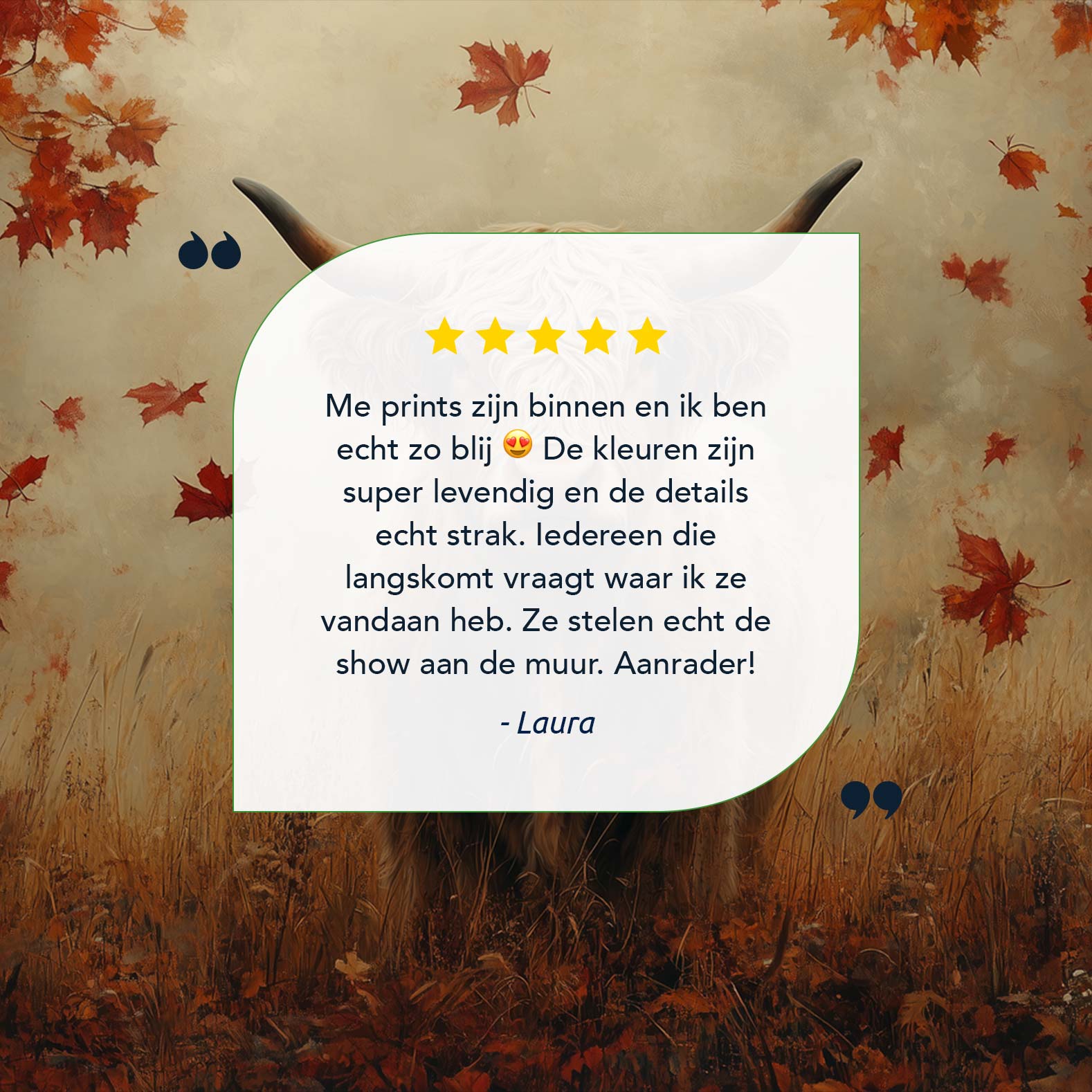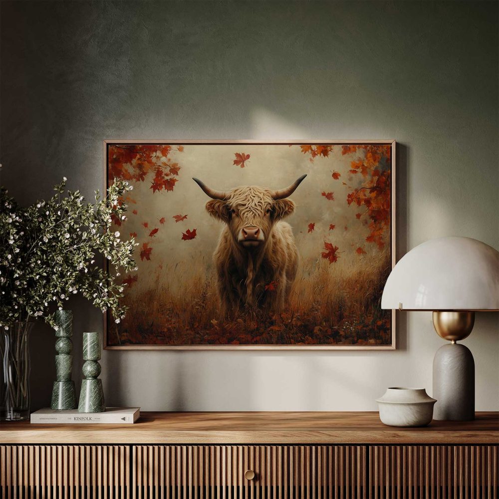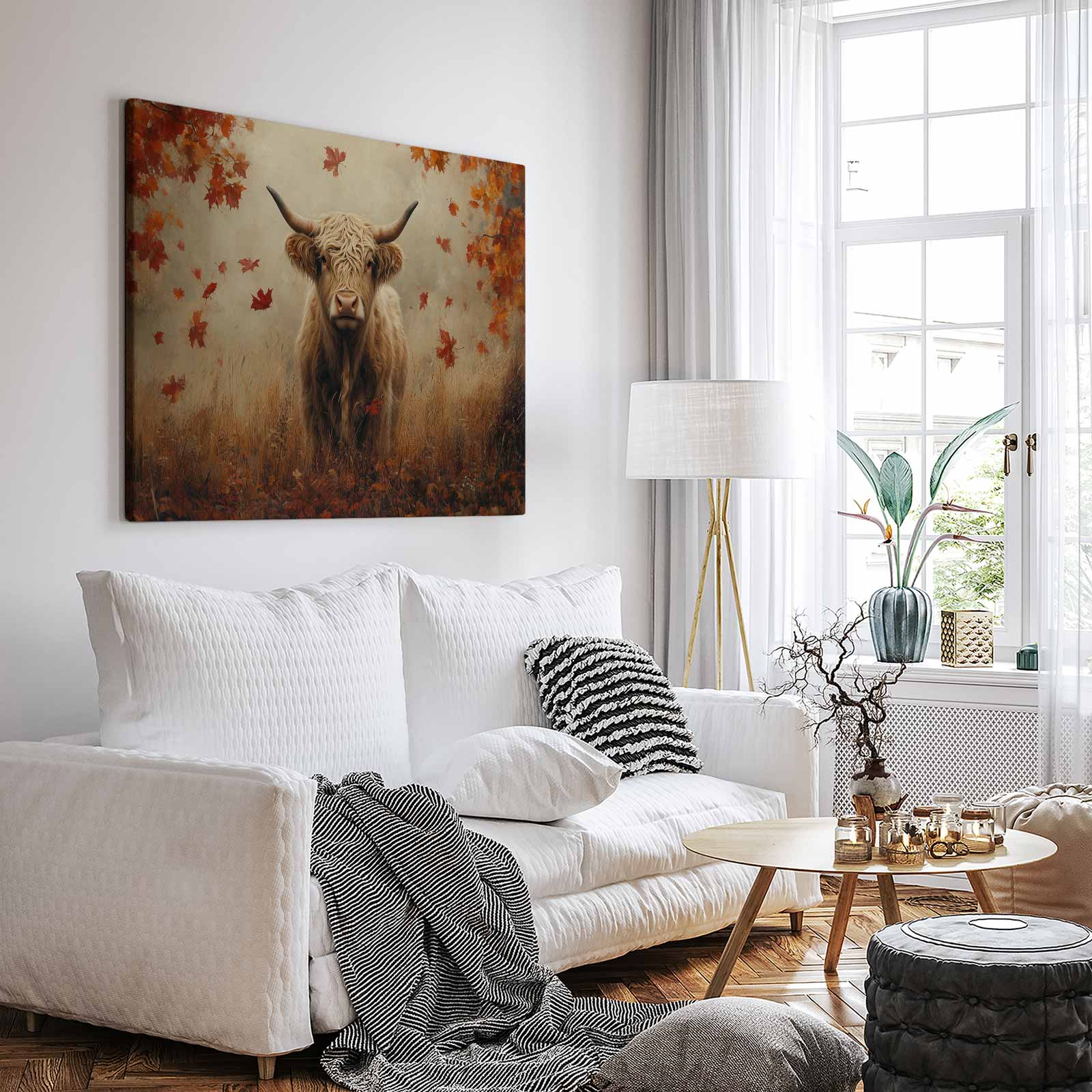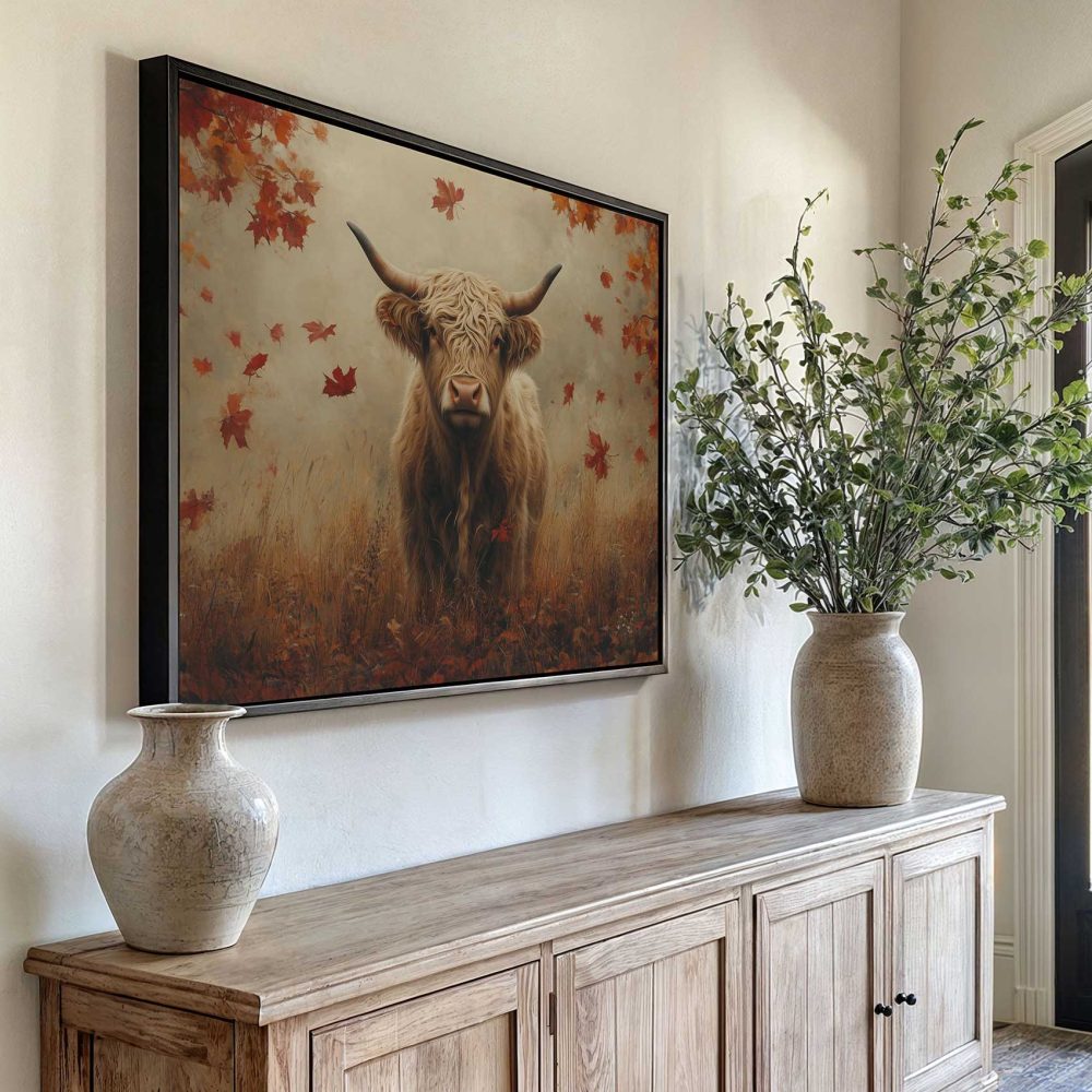 Terug naar collectie / Schilderijen / Bloemen Schilderij / Herfstige koe in roodbladig veld
