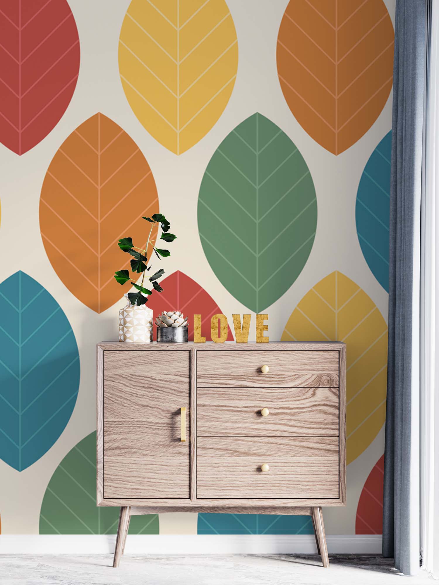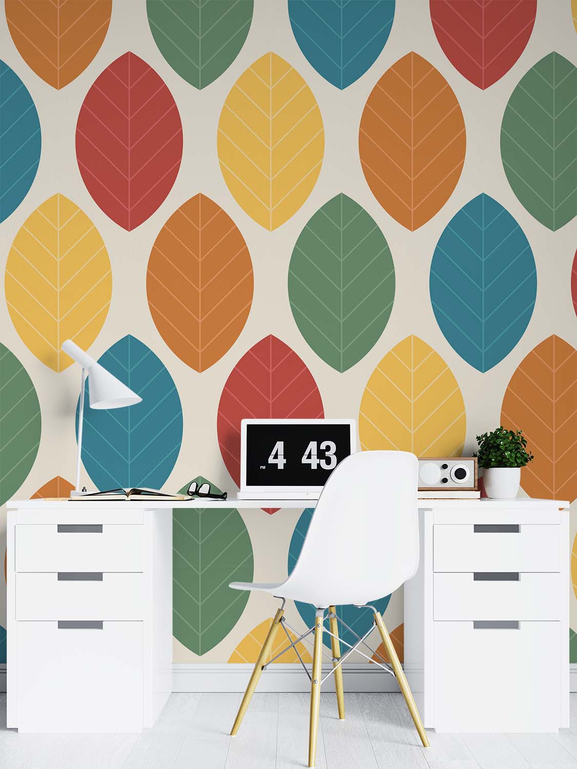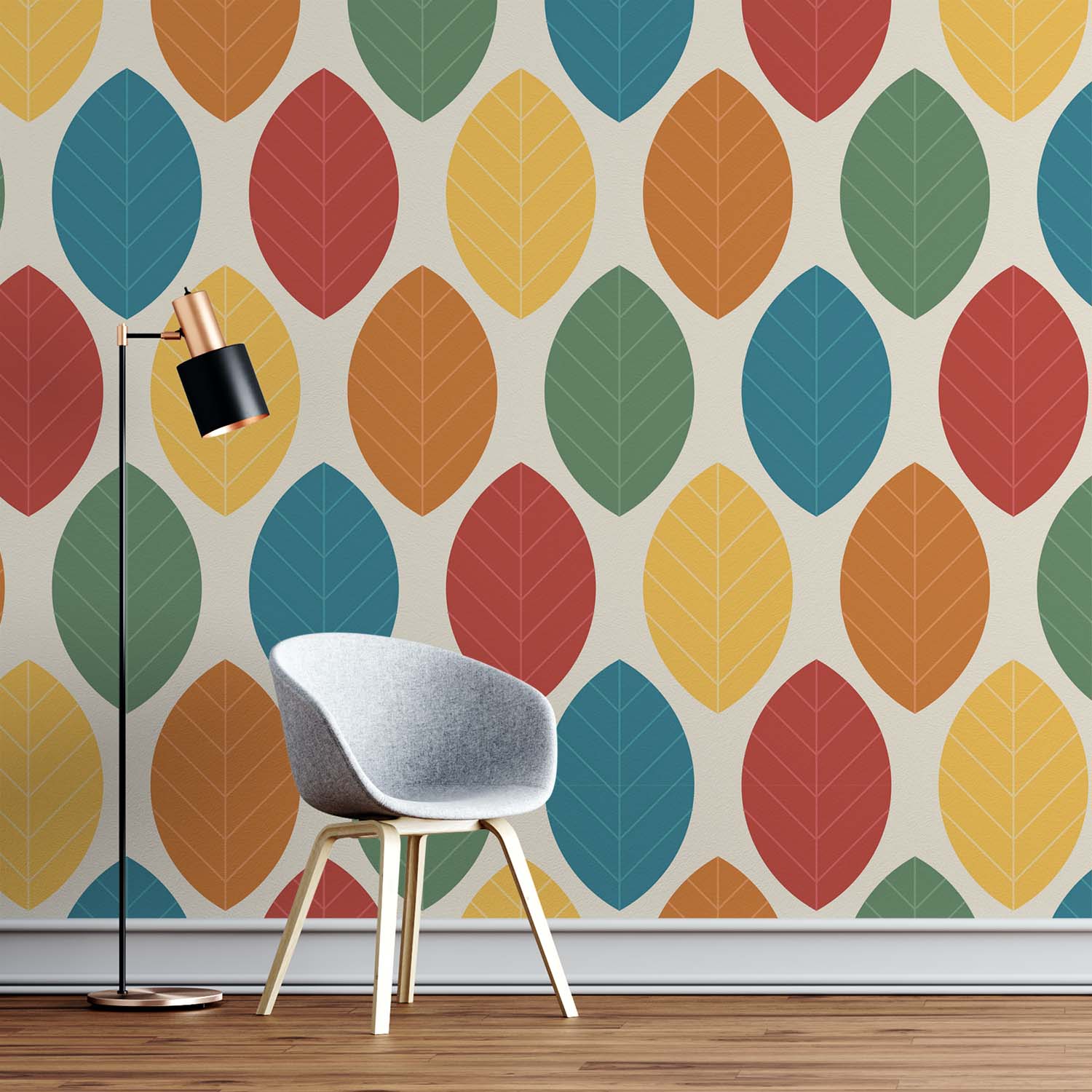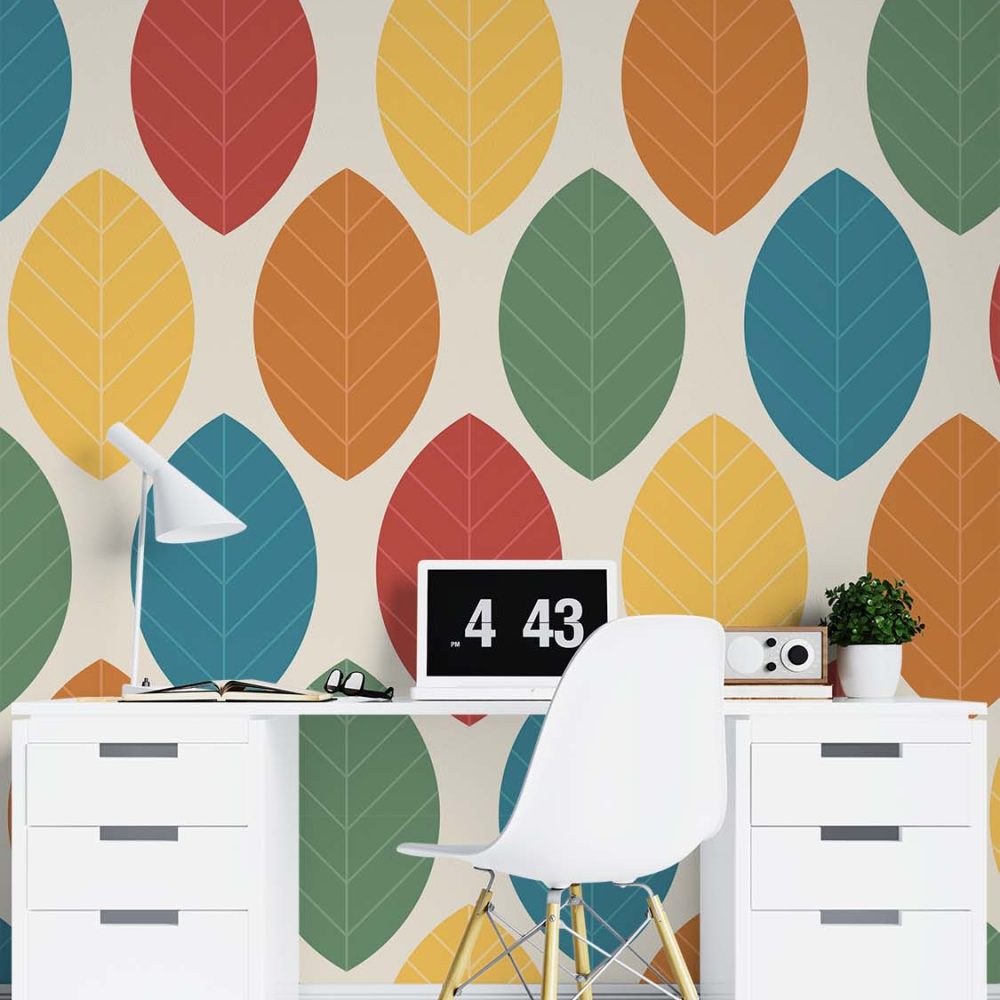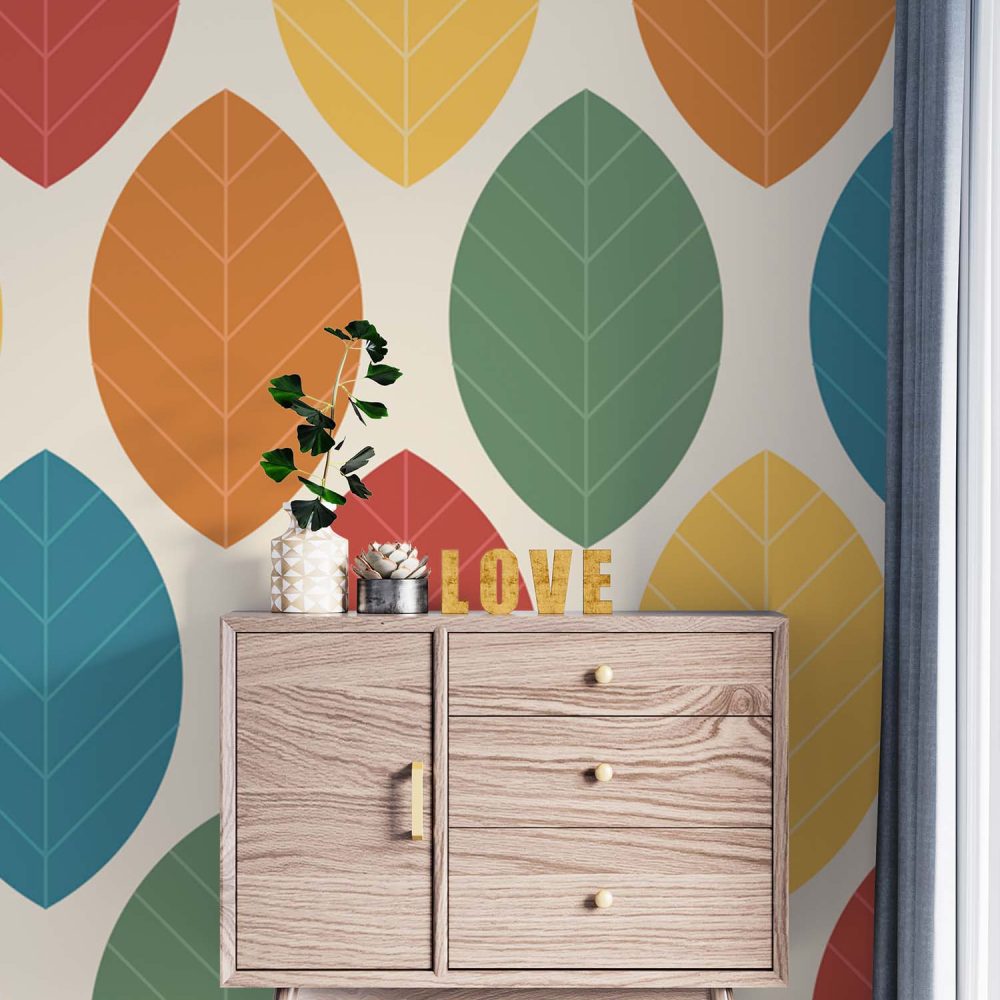 Terug naar collectie / Behang / Abstract behang / Herfstkleuren Retro Bladeren Behang