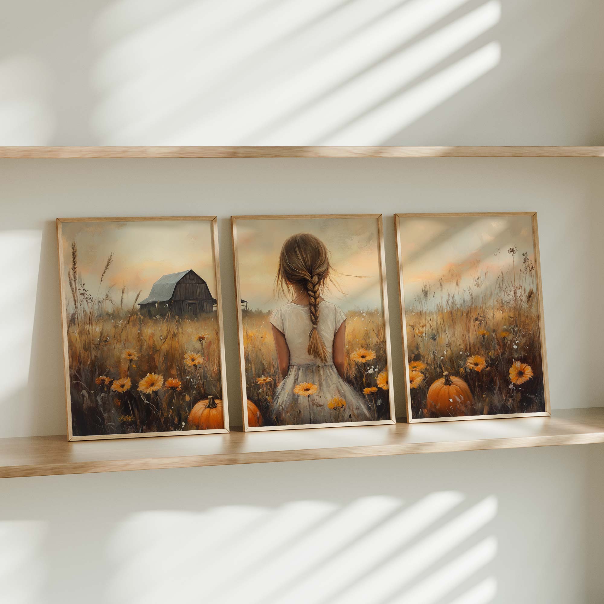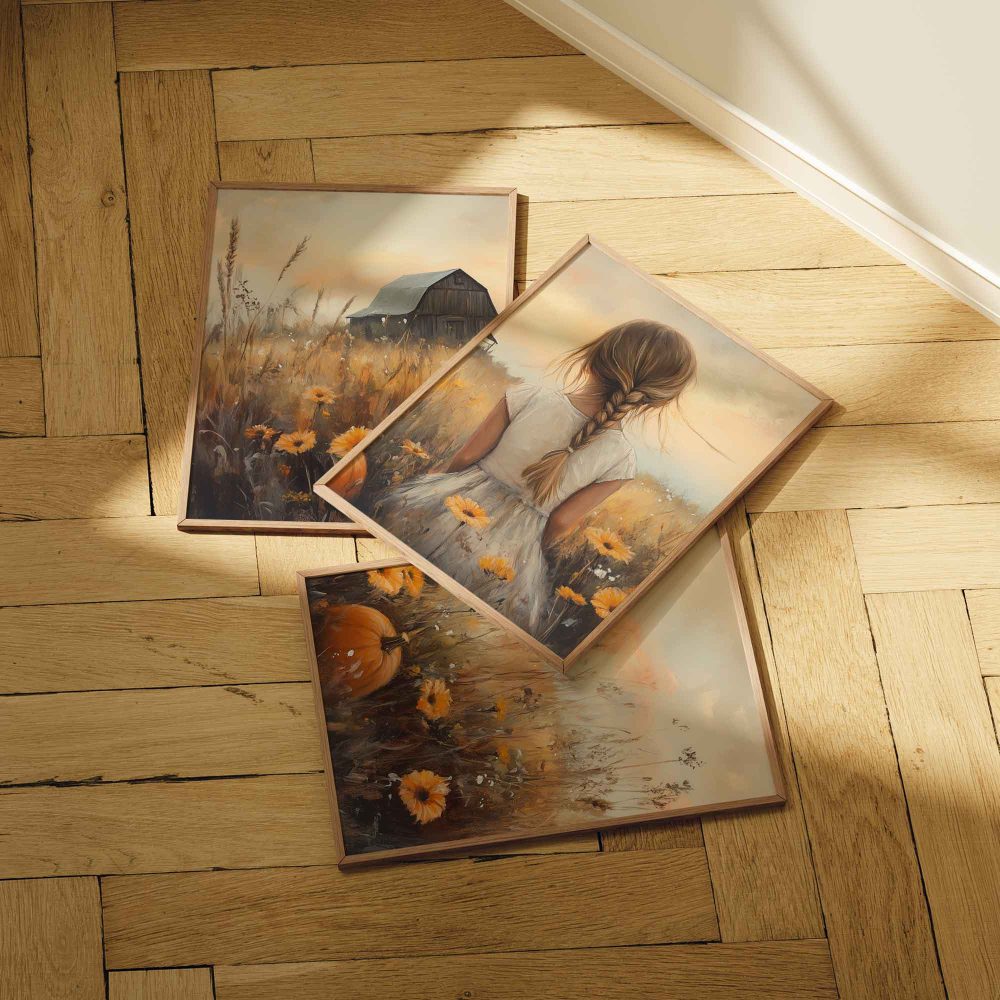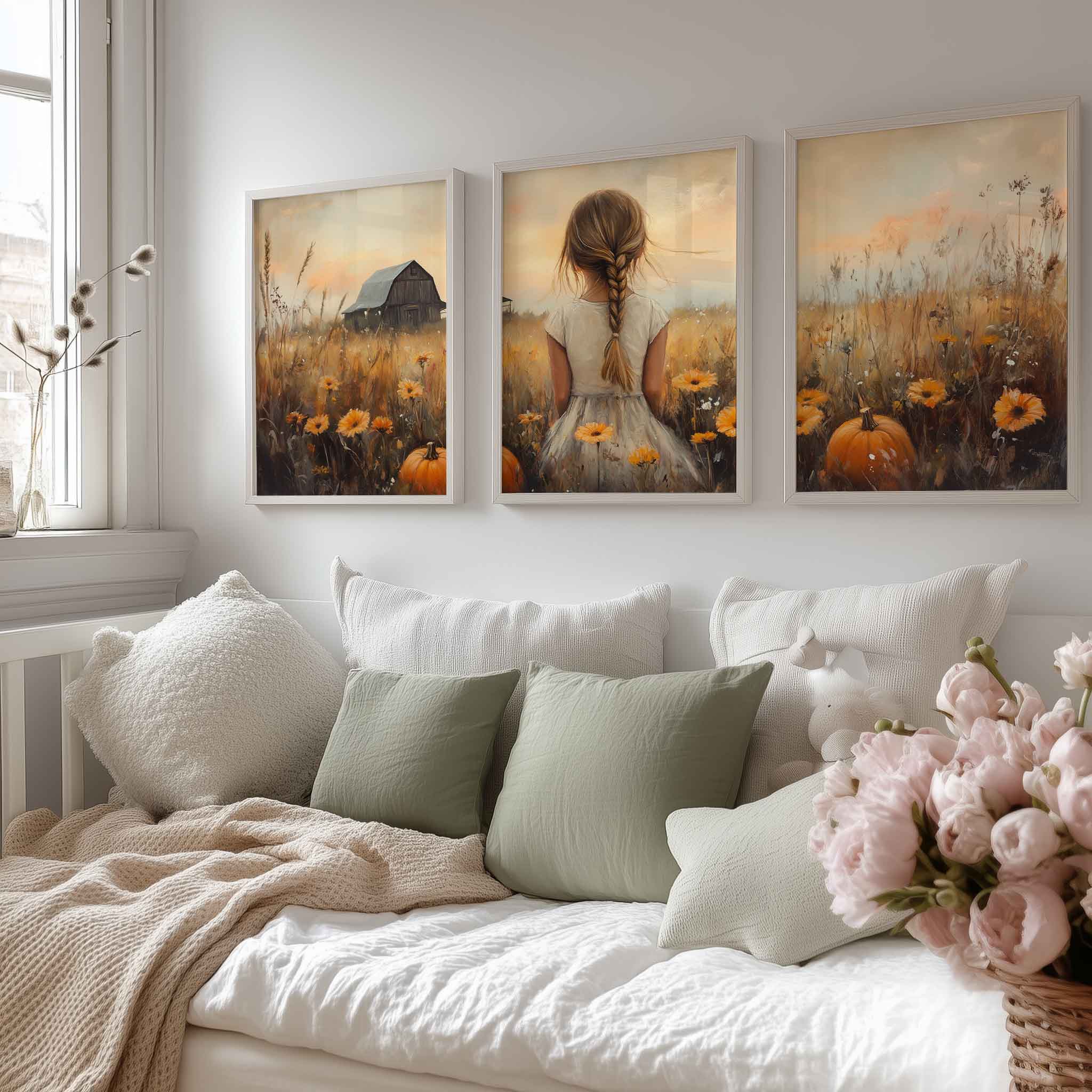 Herfstprinses tussen pompoenen en bloemen