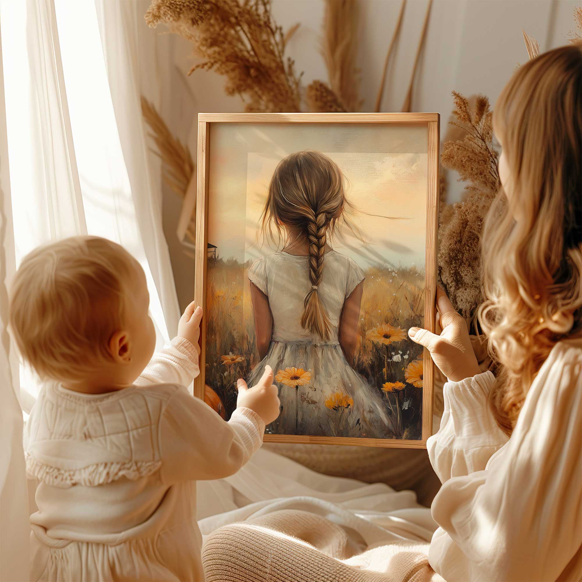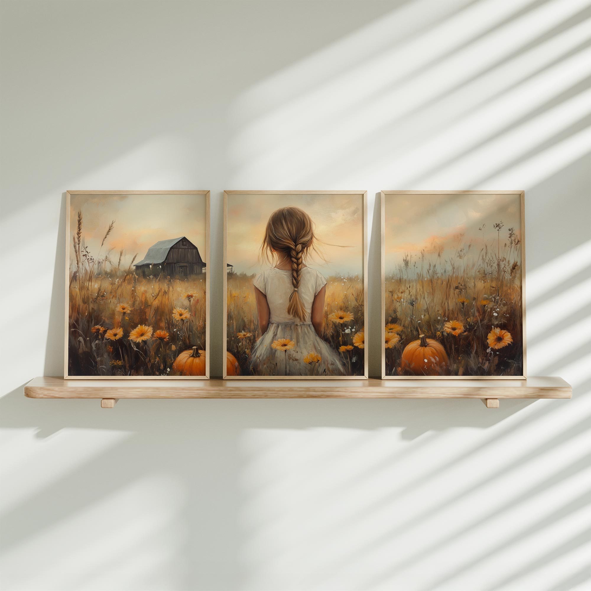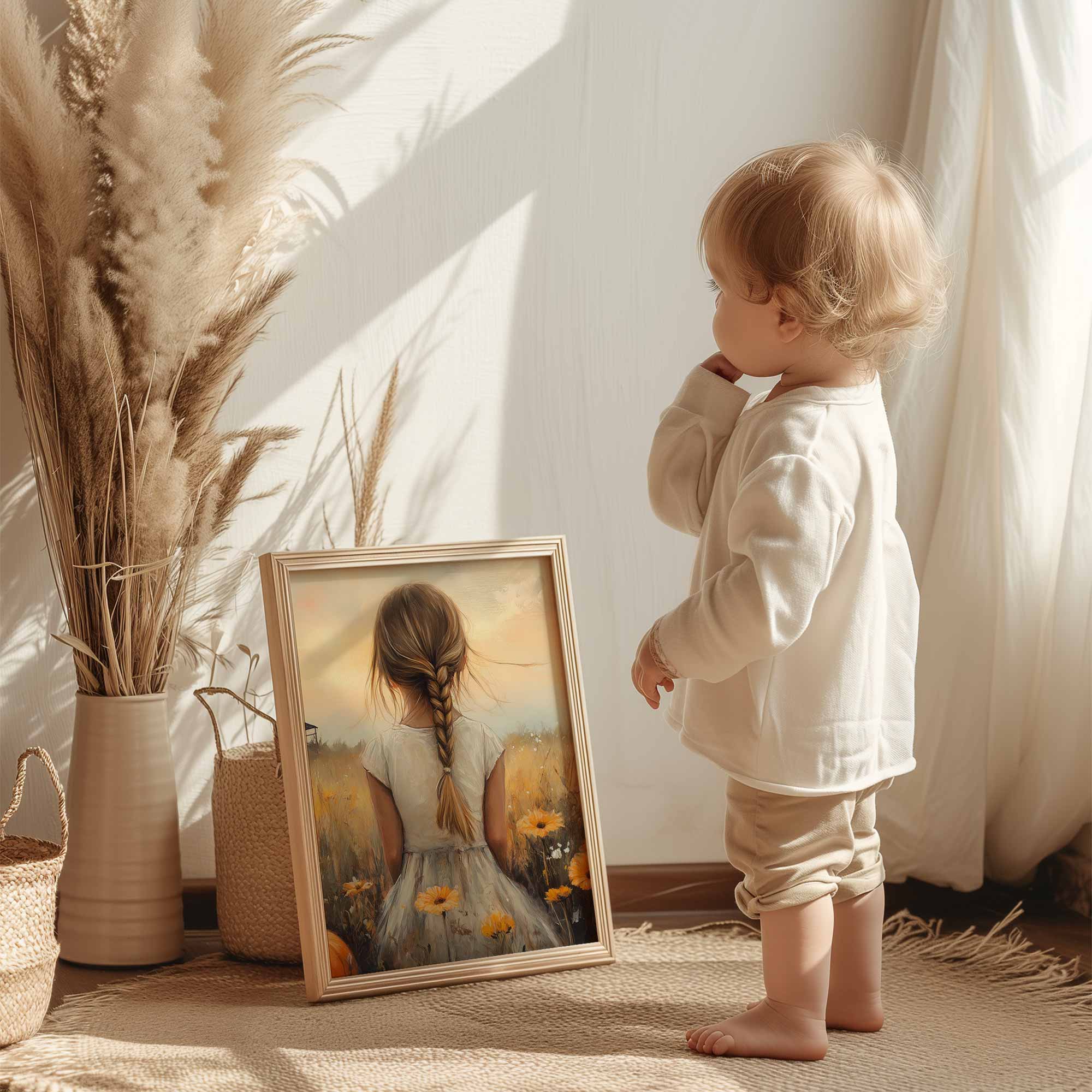 Herfstprinses tussen pompoenen en bloemen