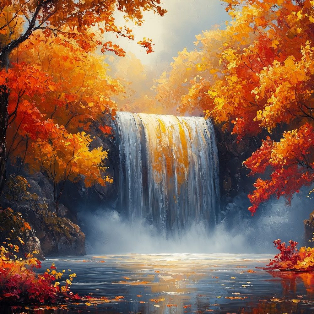 Terug naar collectie / Behang / Herfstwaterval in bos behang