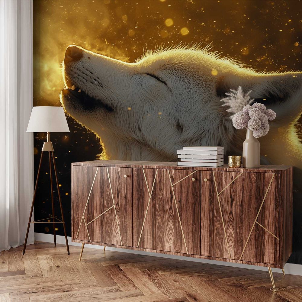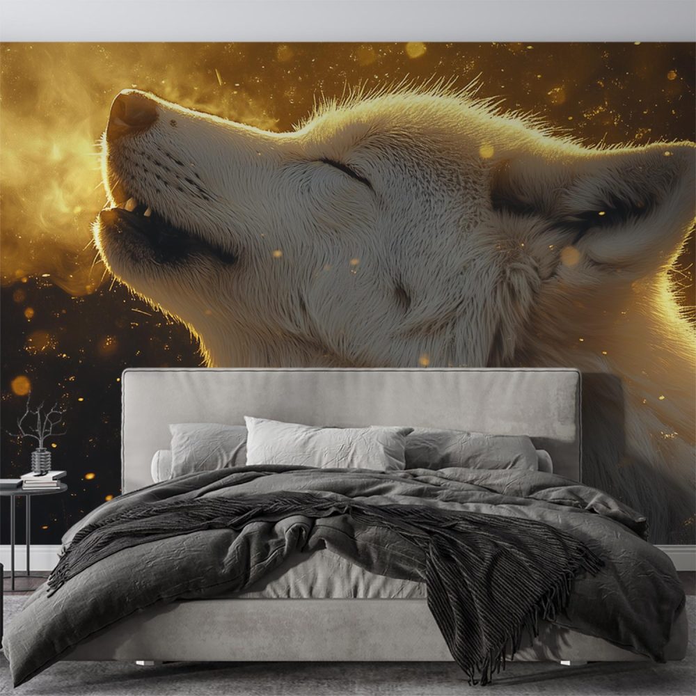 Hoevende witte wolf behang
