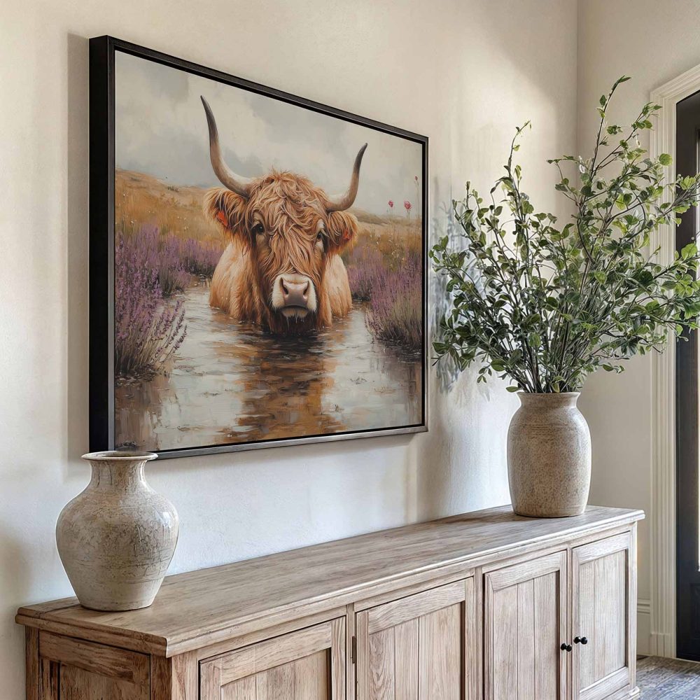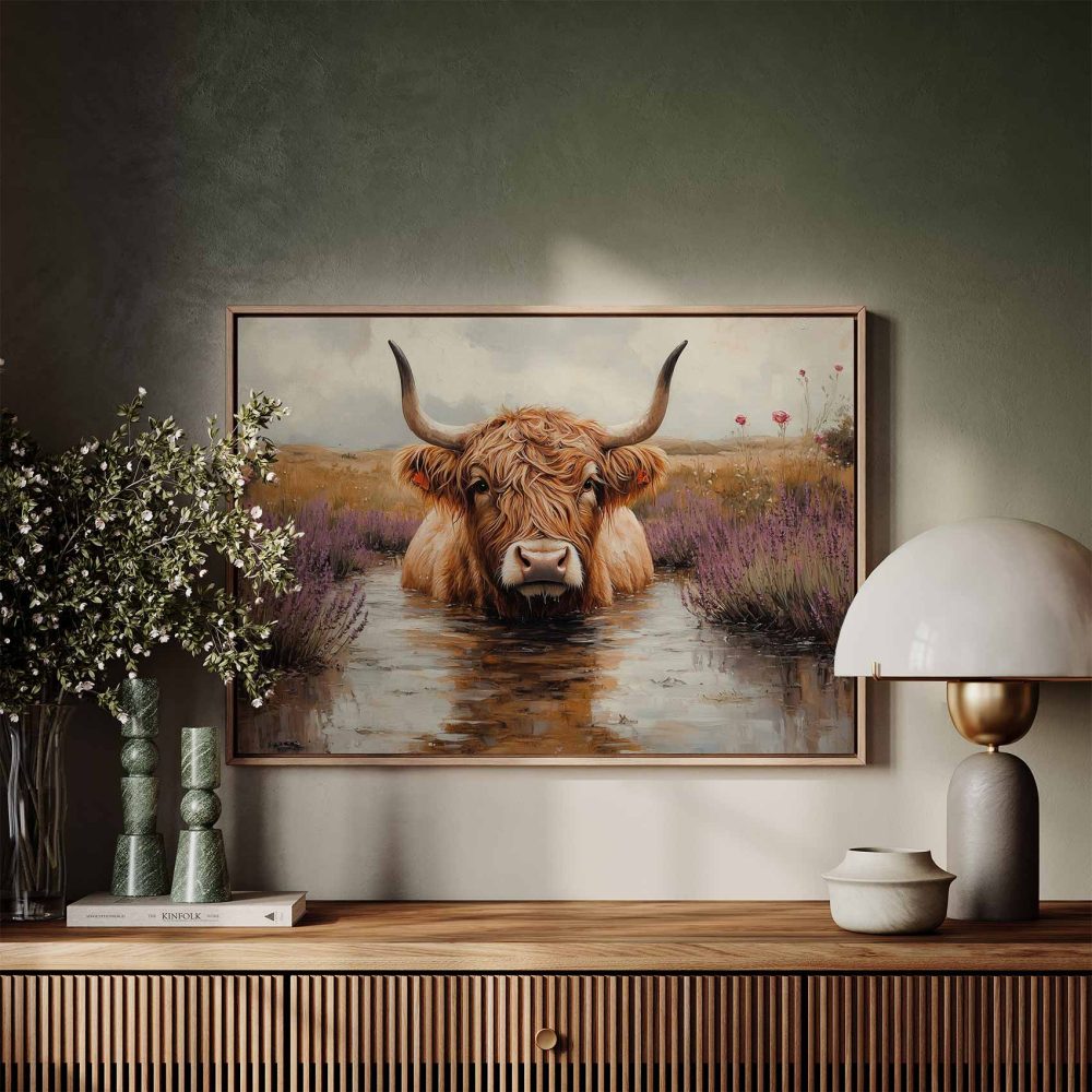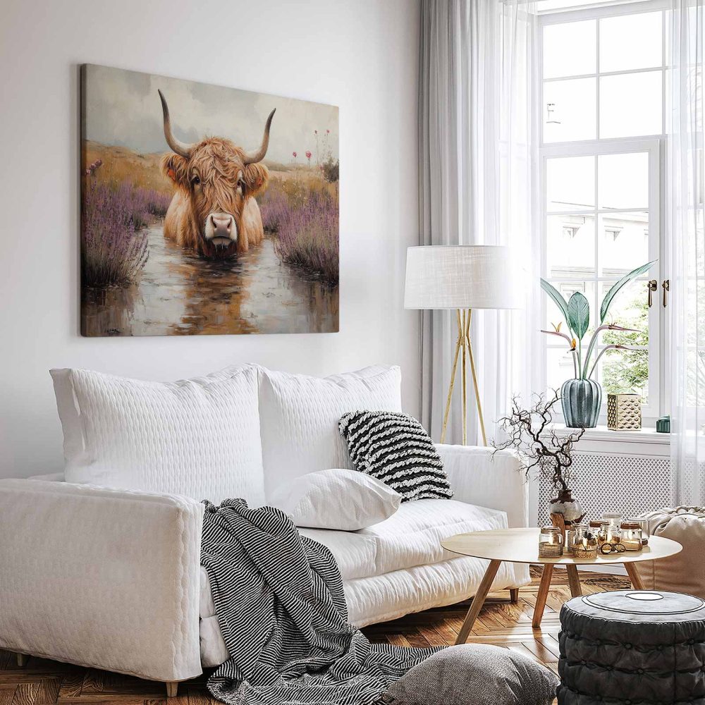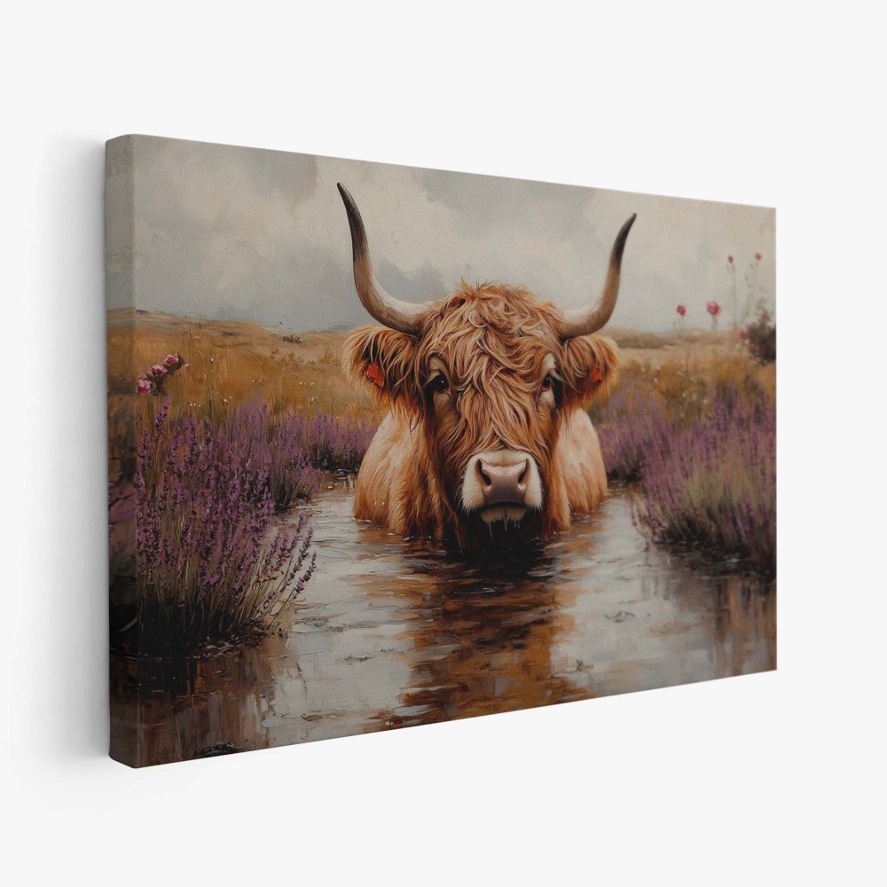 Terug naar collectie / Schilderijen / Bloemen Schilderij / Hooglander in paarse bloemen