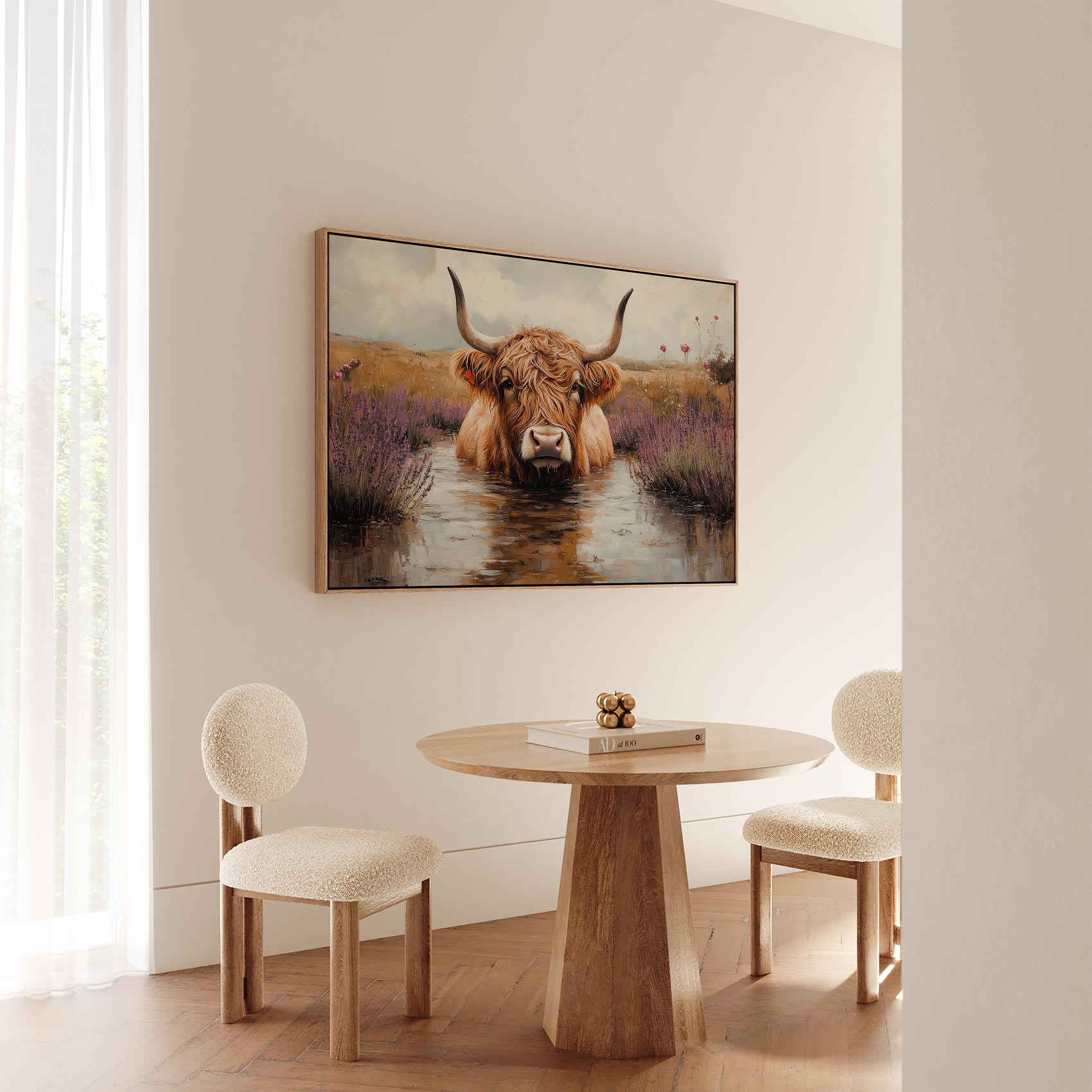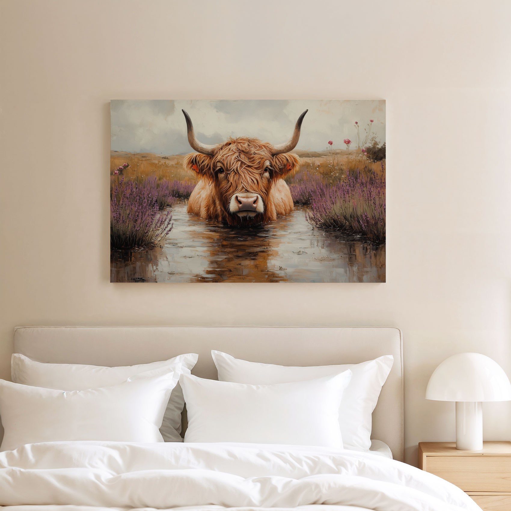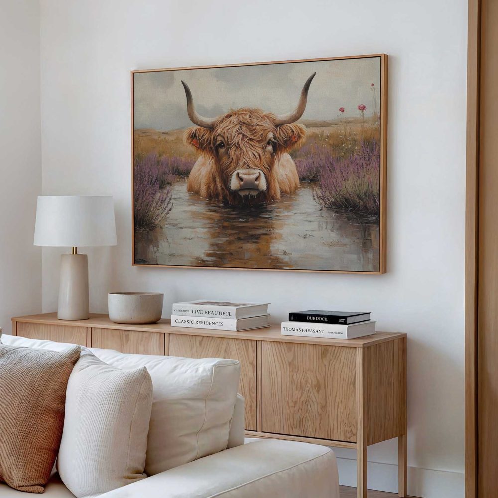 Terug naar collectie / Schilderijen / Bloemen Schilderij / Hooglander in paarse bloemen