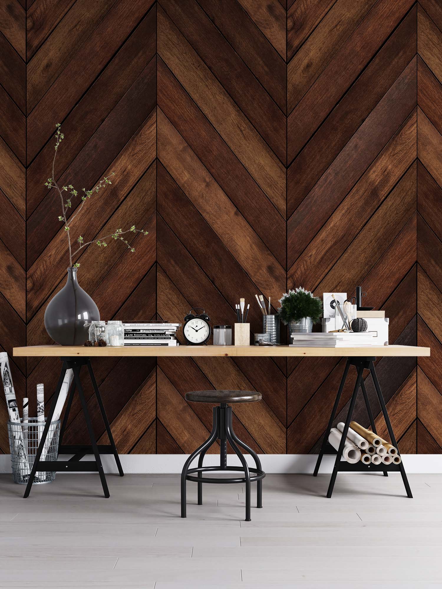 Terug naar collectie / Behang / Abstract behang / Hout Behang in Mahonie & Eiken