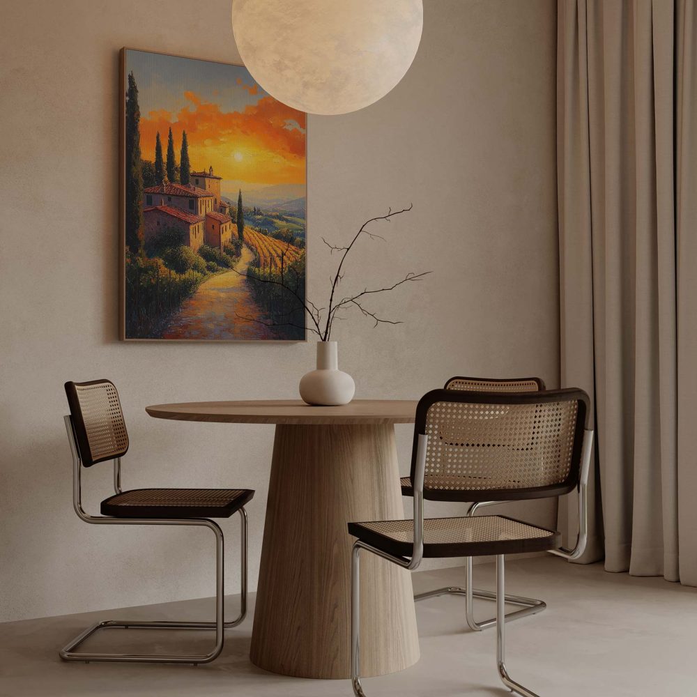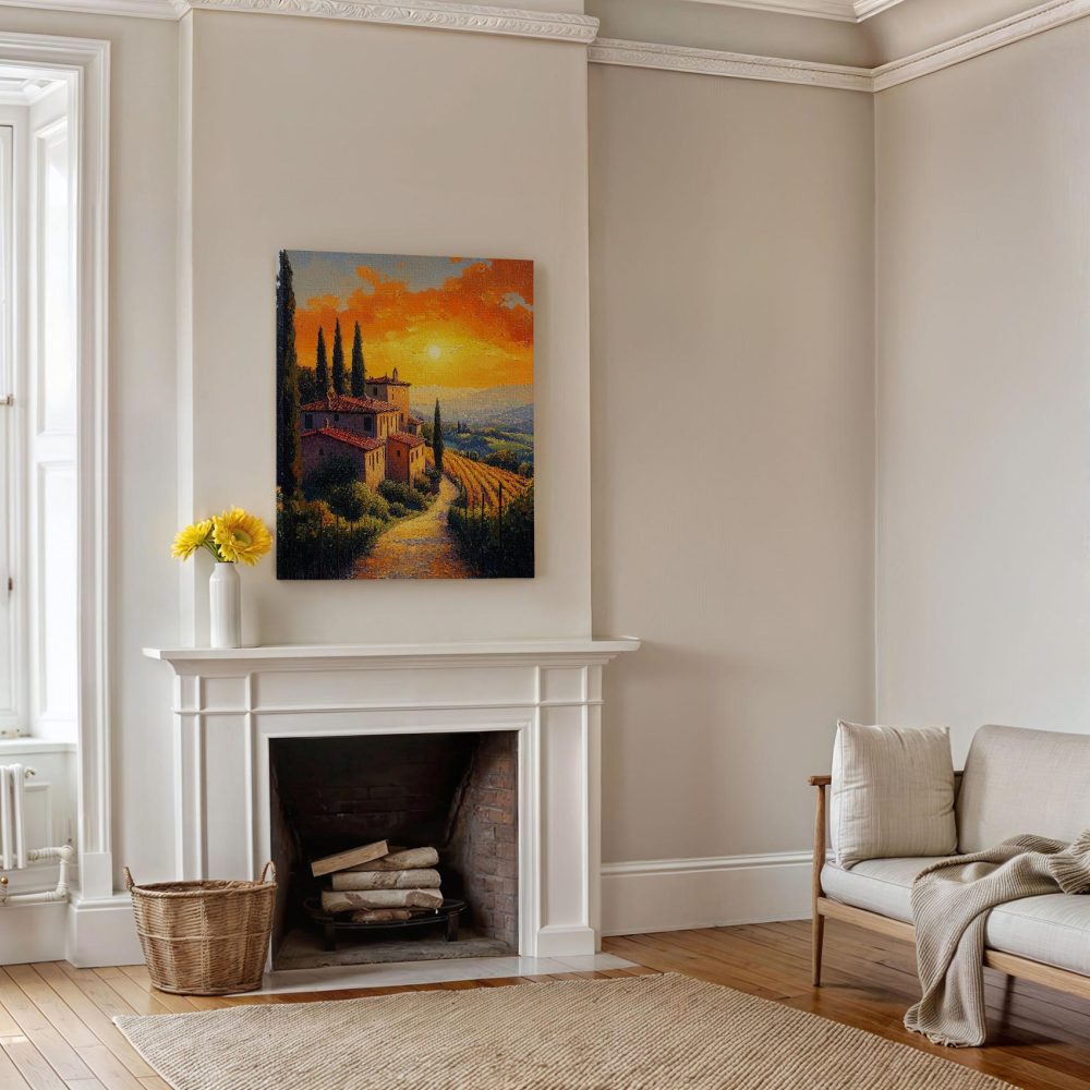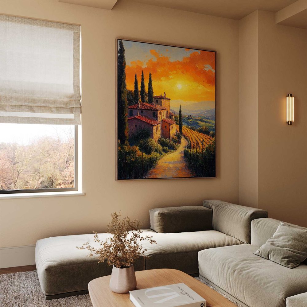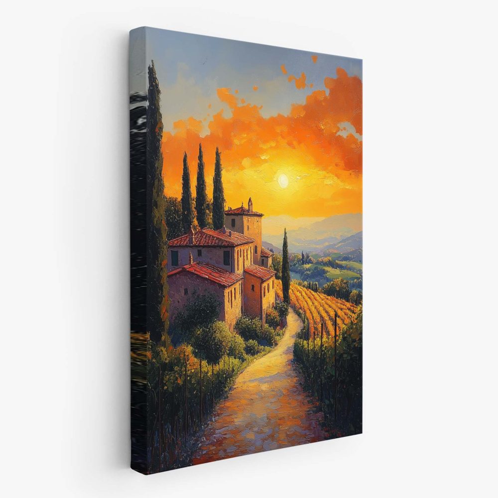 Terug naar collectie / Schilderijen / Kunst Schilderij / Idyllisch zonsondergang dorpje