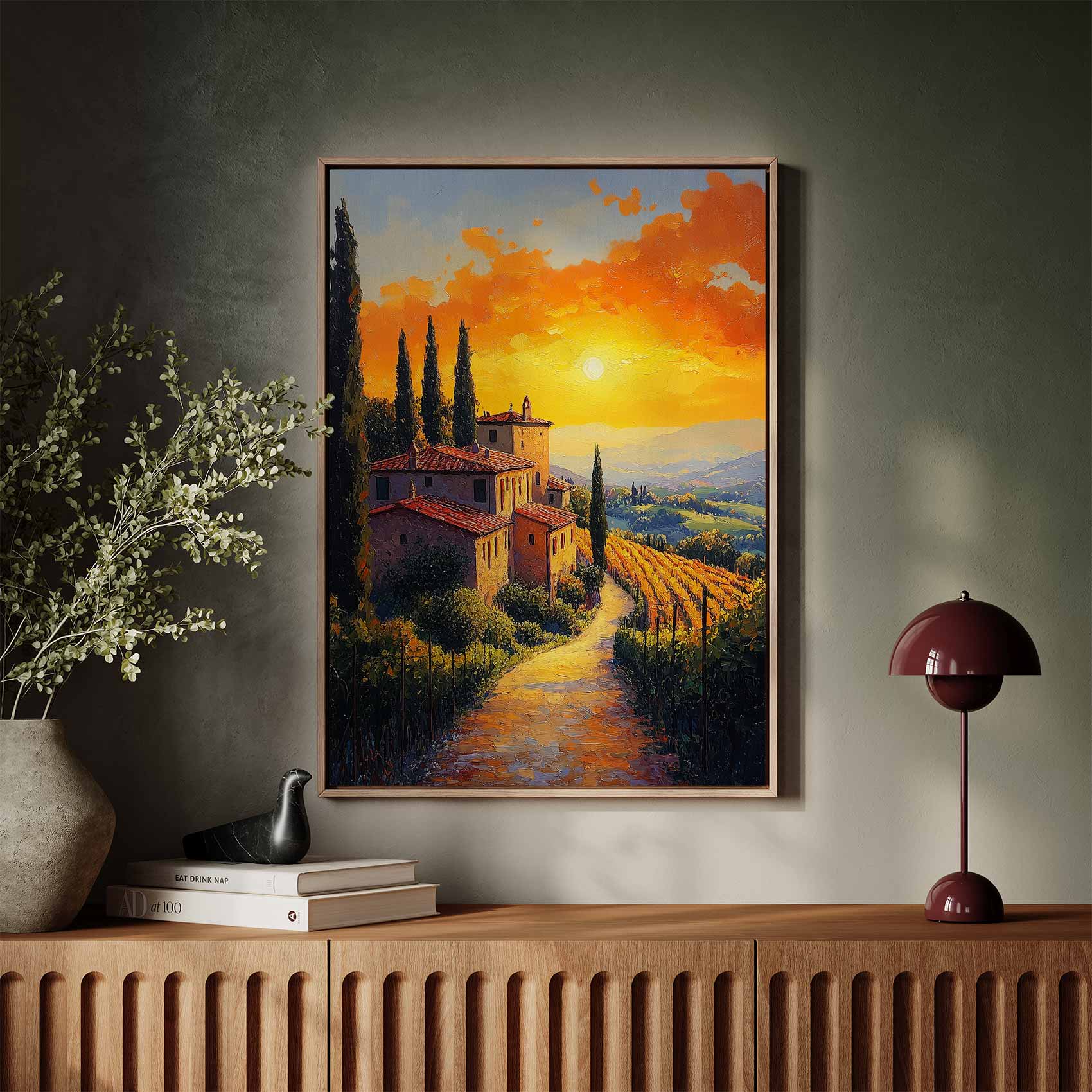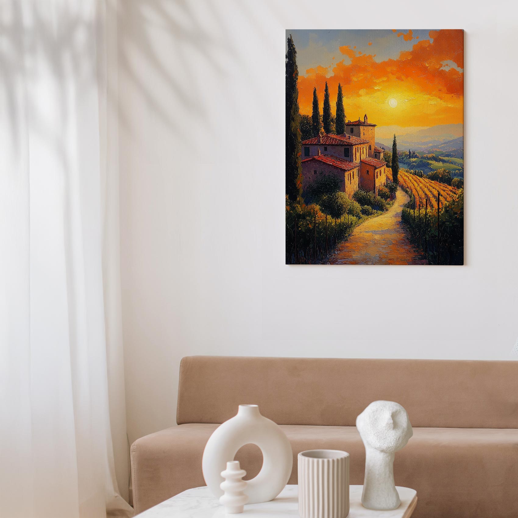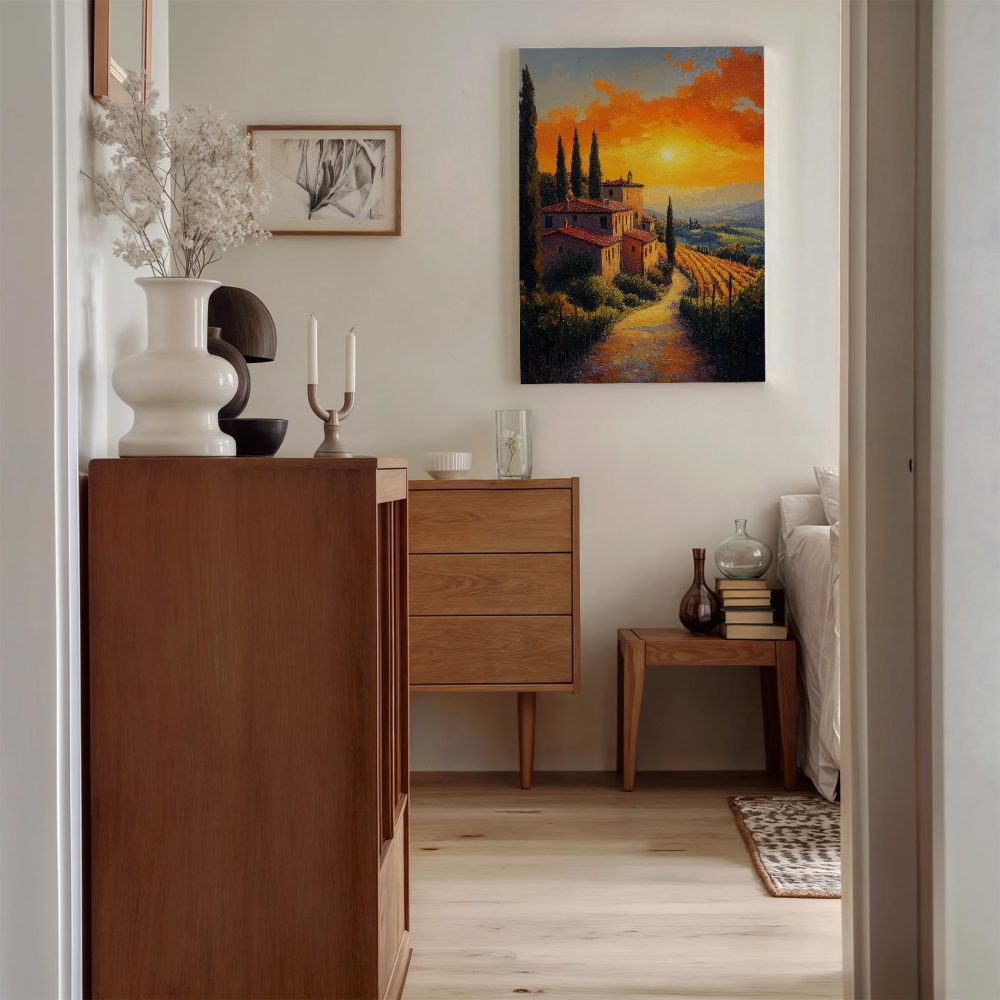 Terug naar collectie / Schilderijen / Kunst Schilderij / Idyllisch zonsondergang dorpje