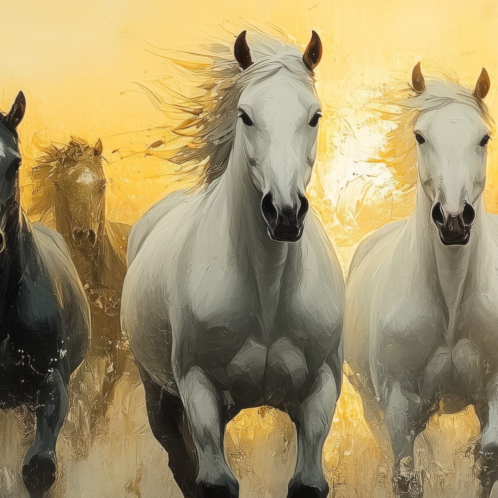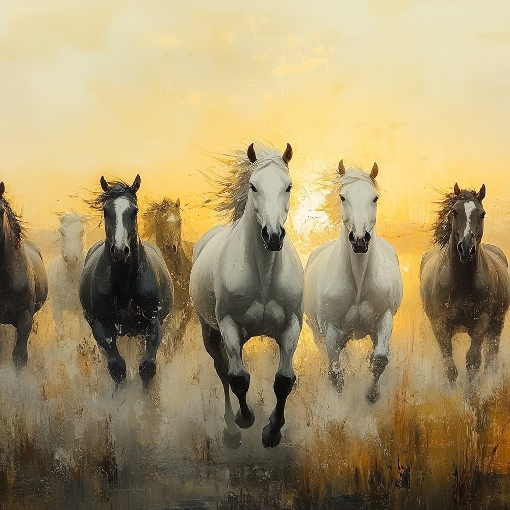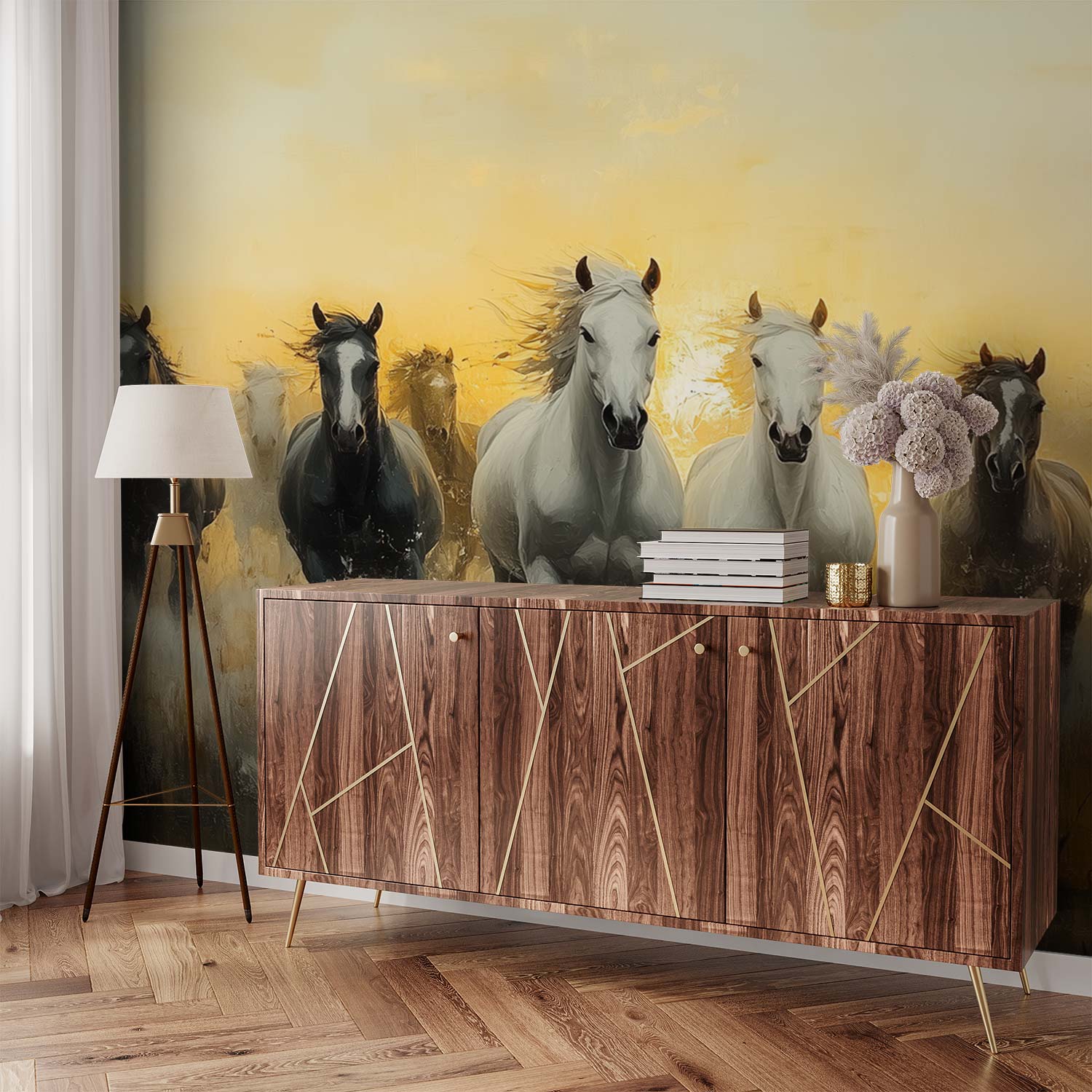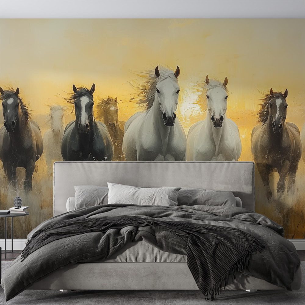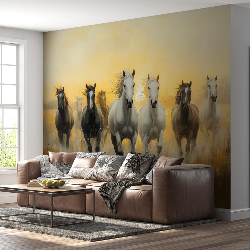Terug naar collectie / Behang / Abstract behang / Impressionistisch rennende paardenlandschap behang