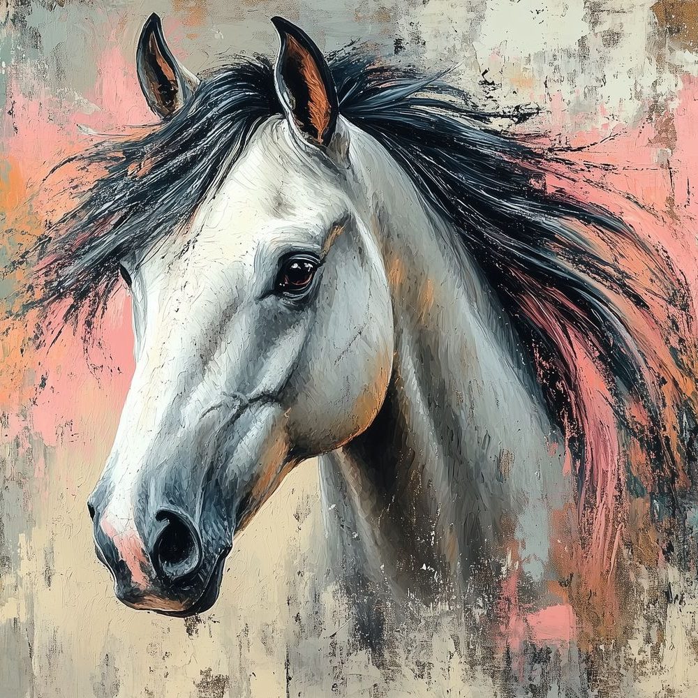 Terug naar collectie / Behang / Abstract behang / Impressionistisch Roze Blauw Paard behang
