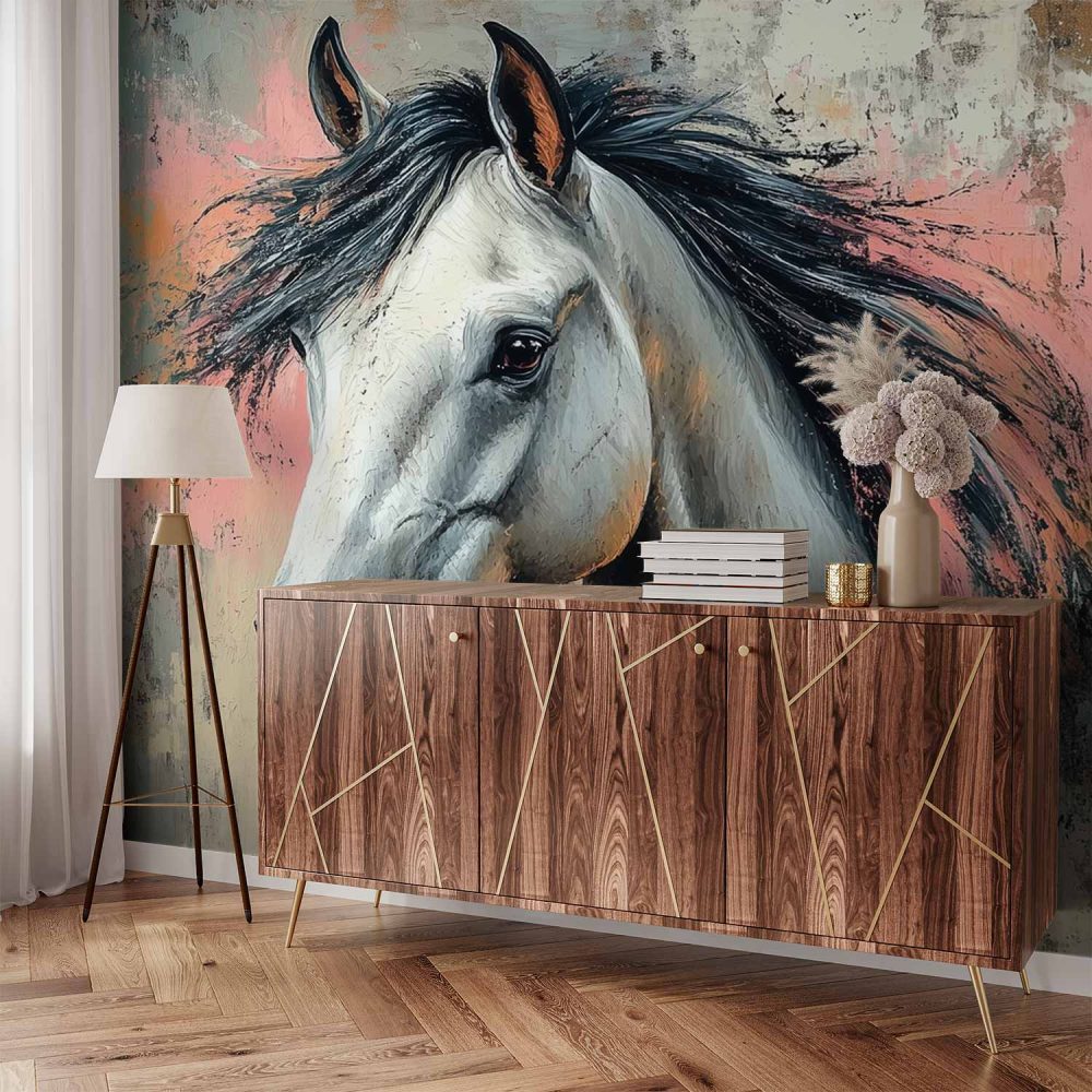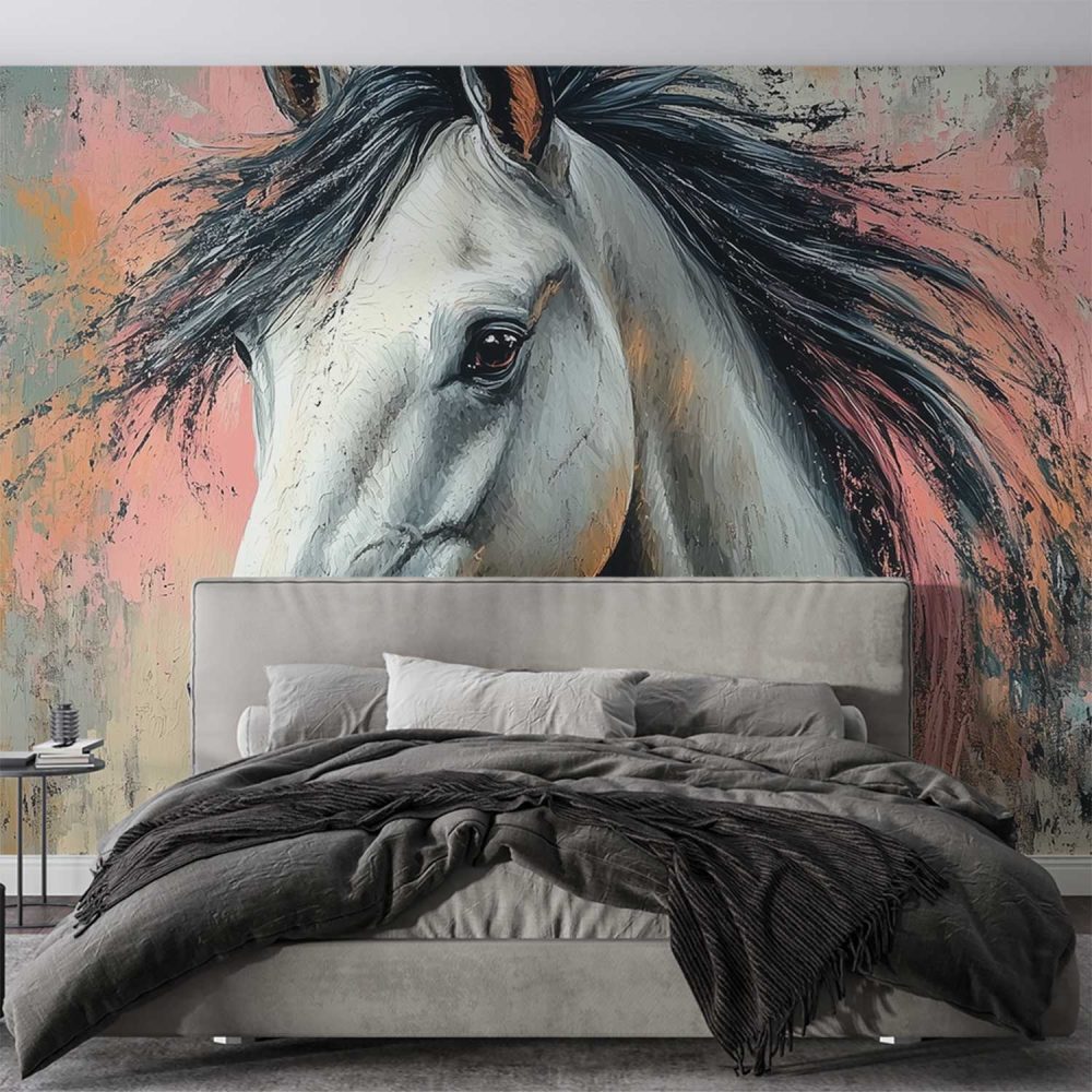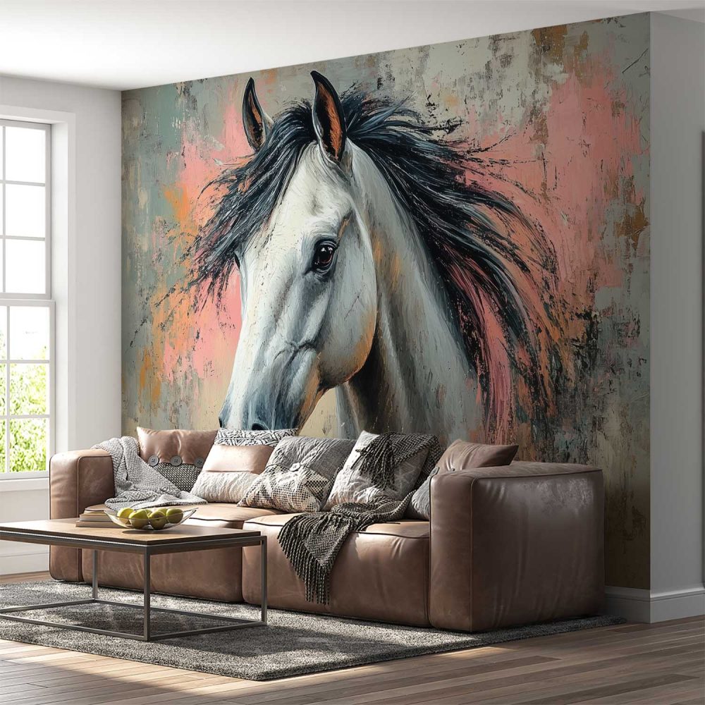 Impressionistisch Roze Blauw Paard behang