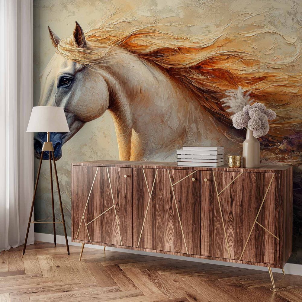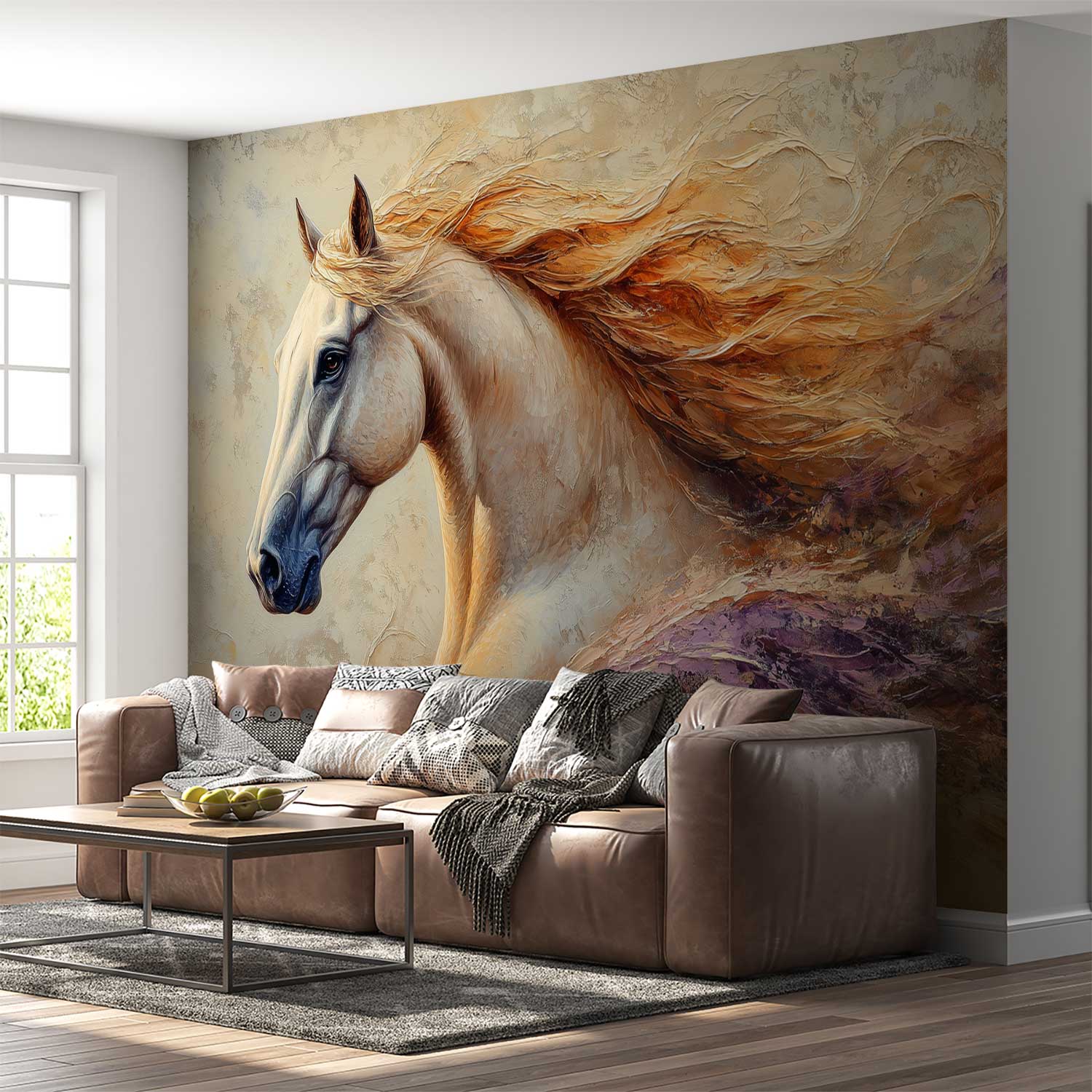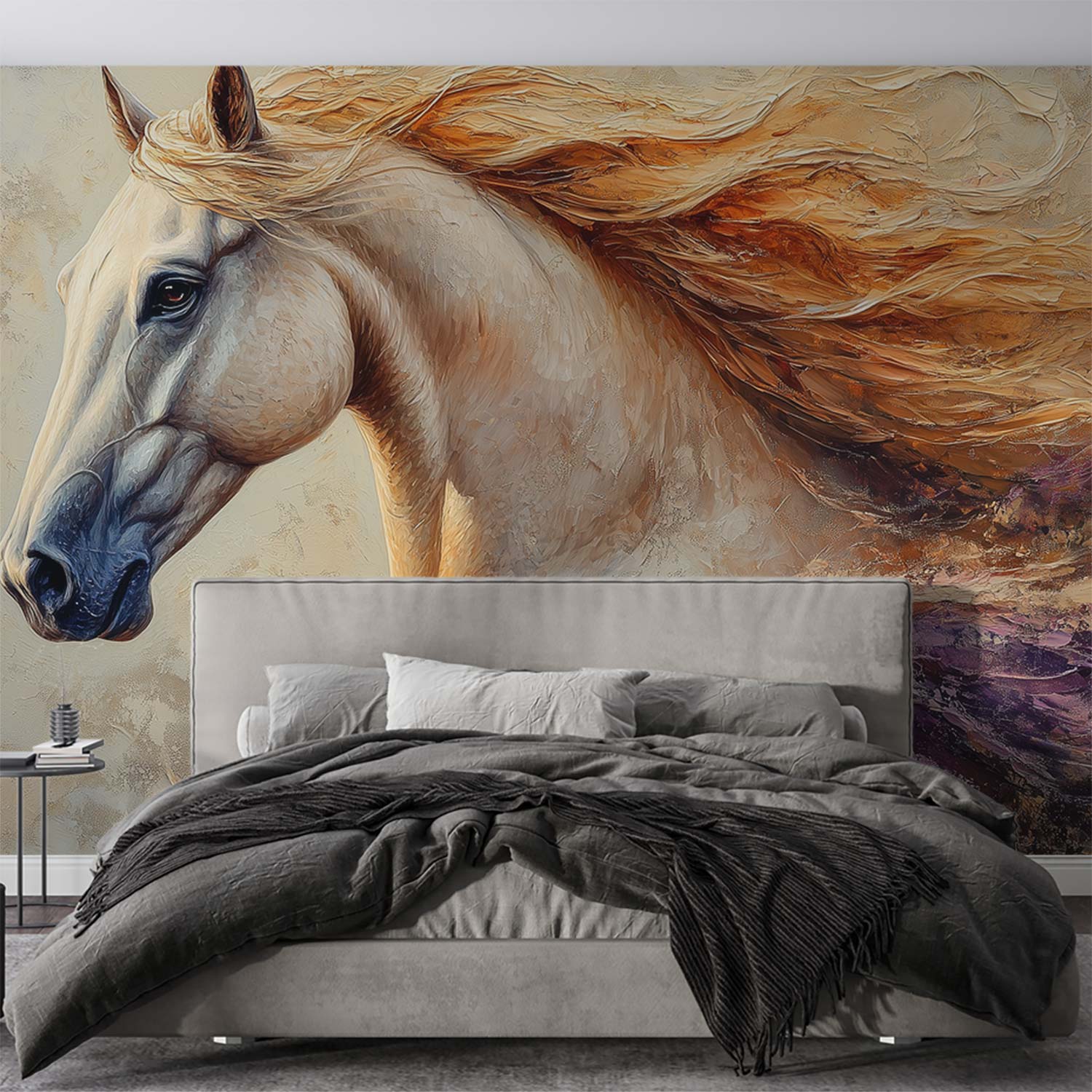 Terug naar collectie / Behang / Abstract behang / Impressionistisch witte paard behang