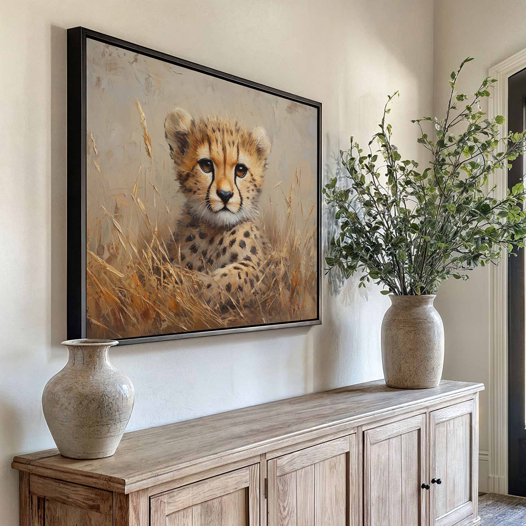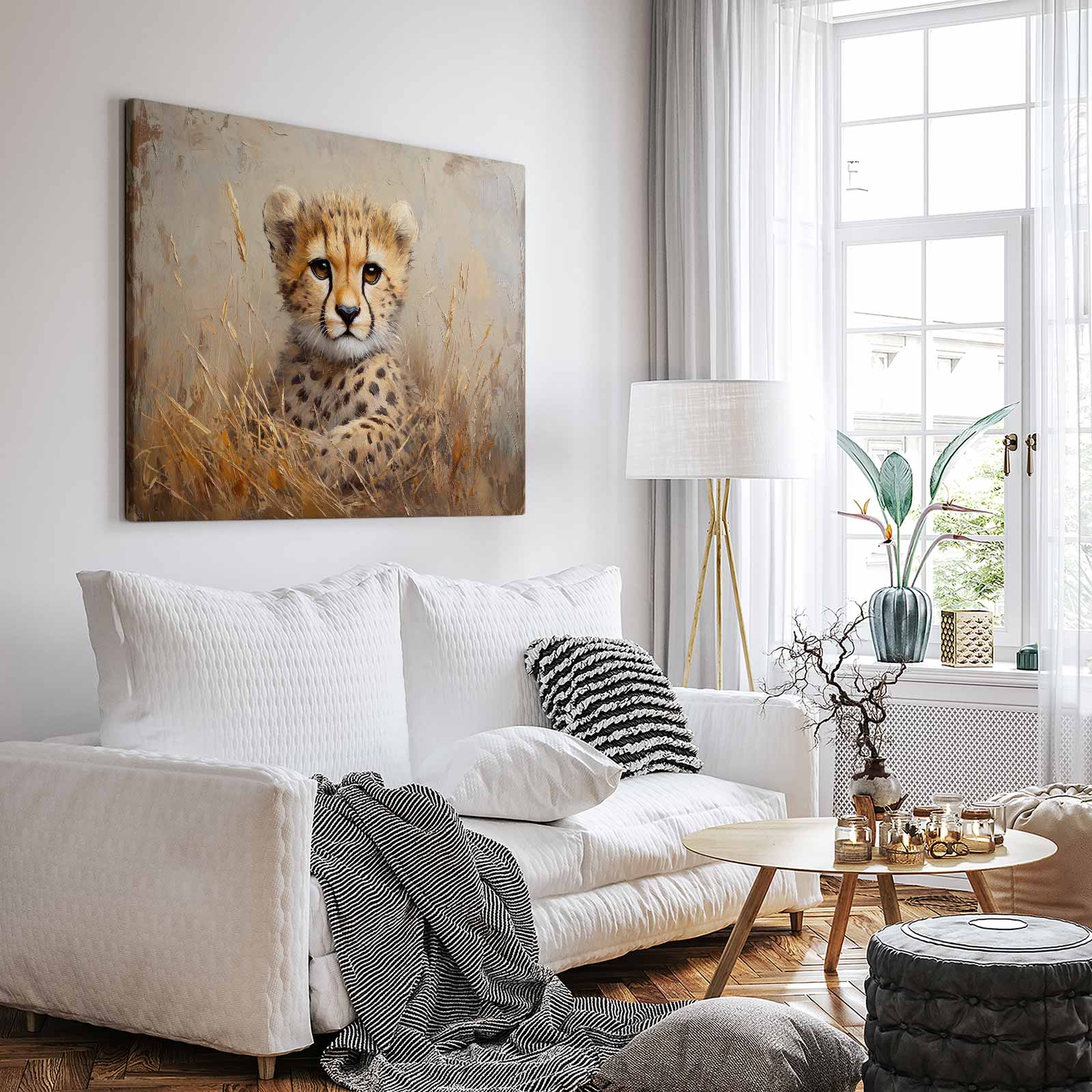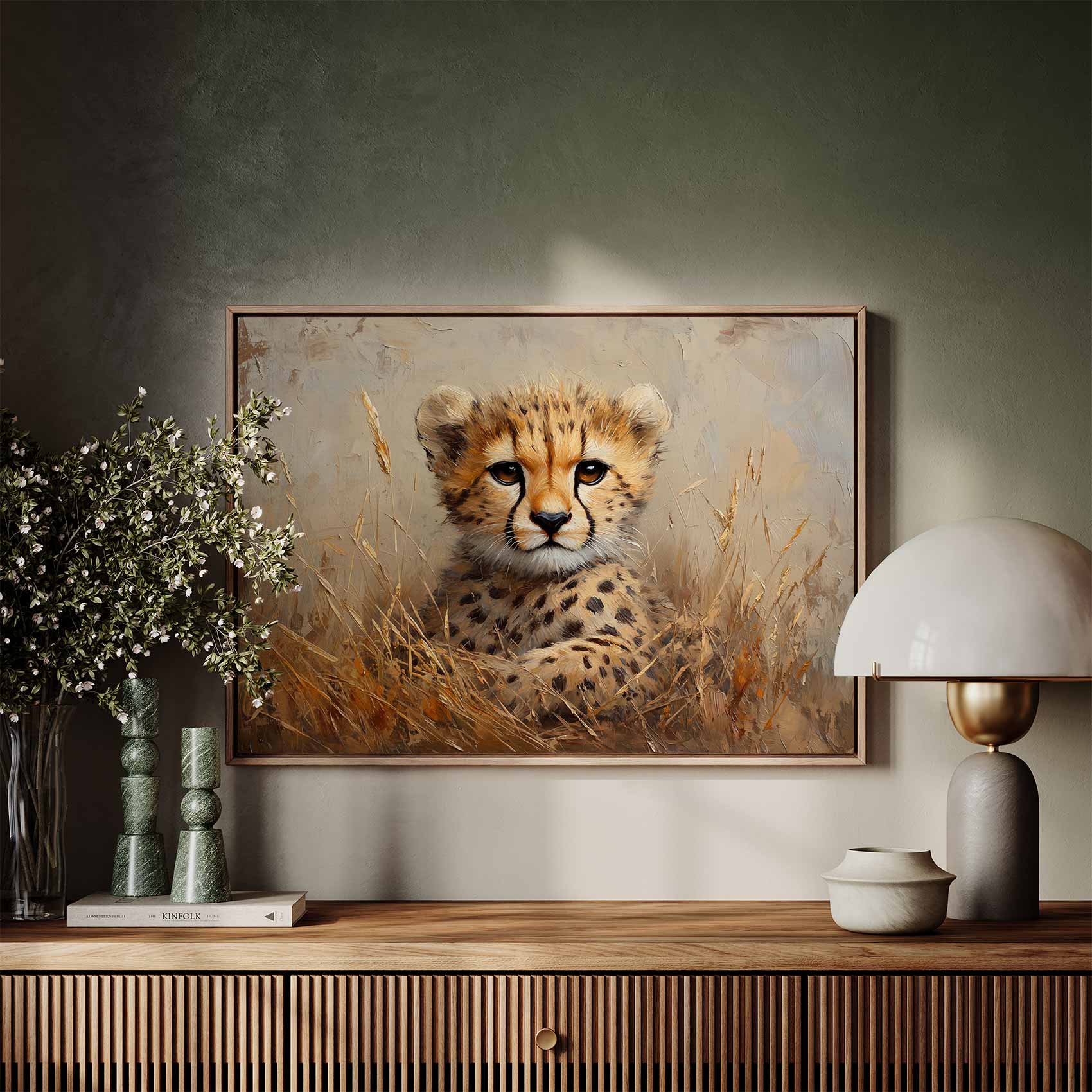 Impressionistische cheetahwelp schilderij