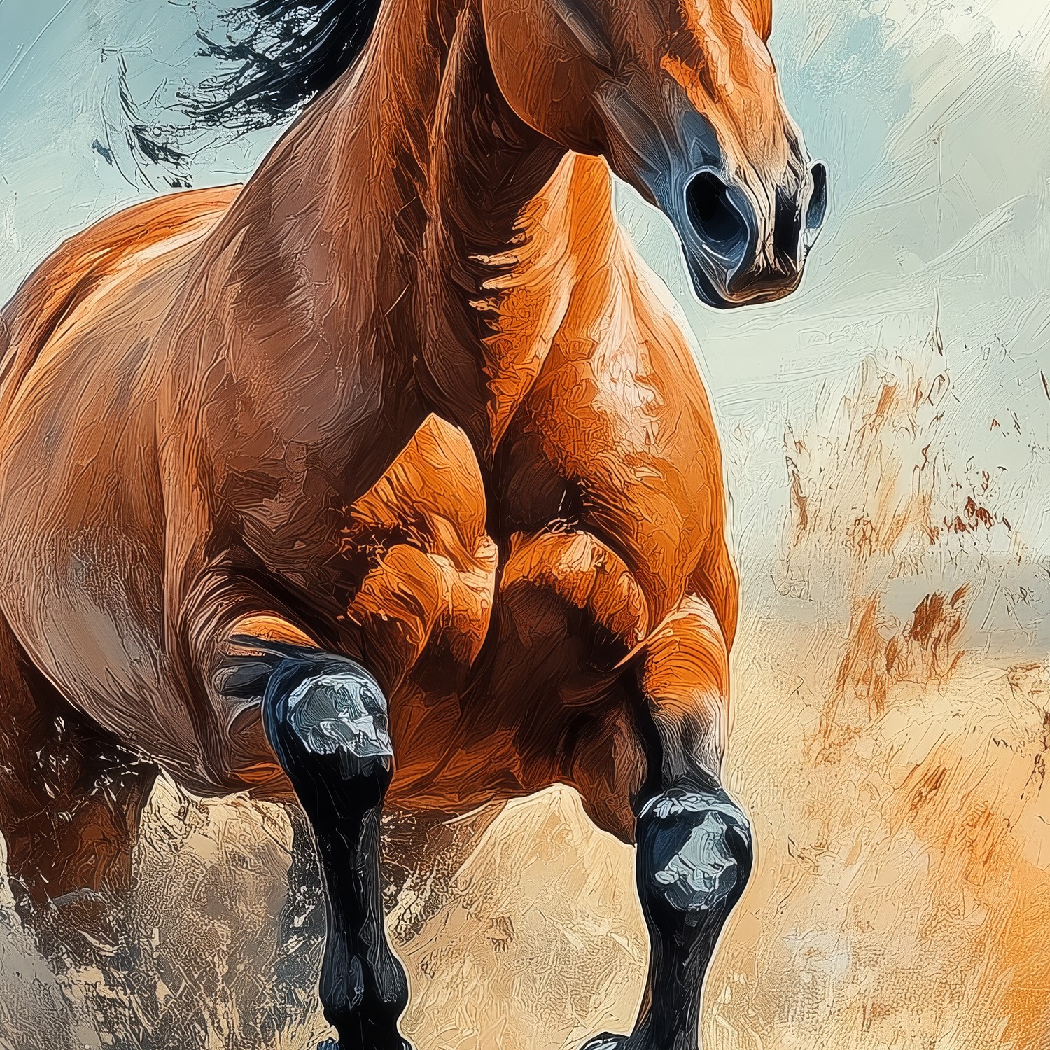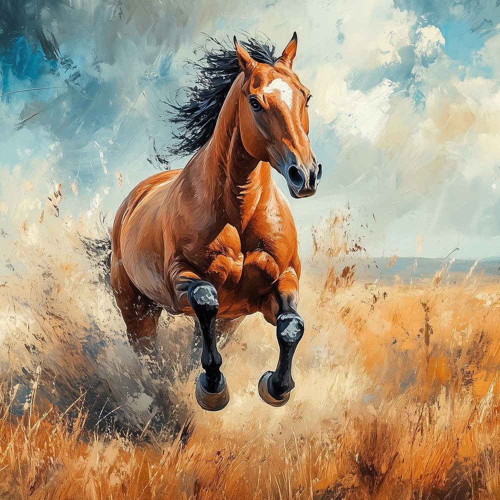 Terug naar collectie / Behang / Impressionistische galopperende bruin paard behang