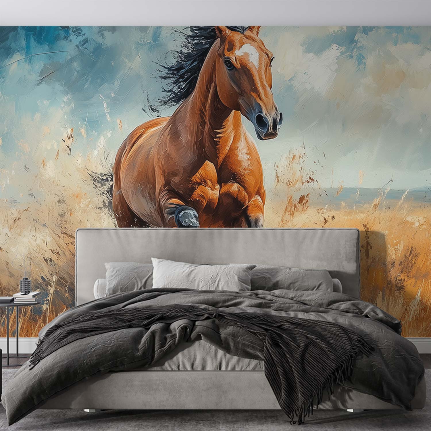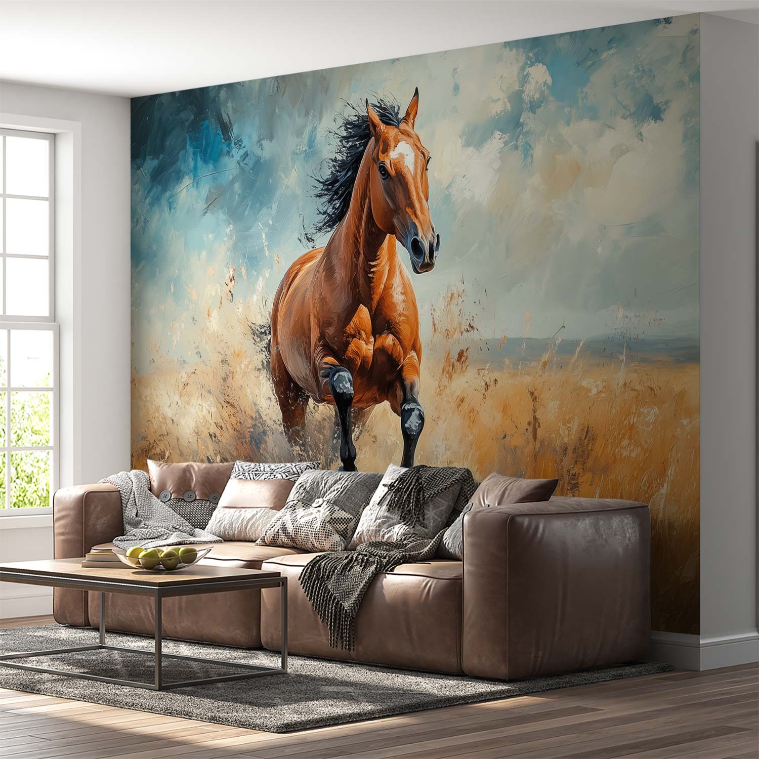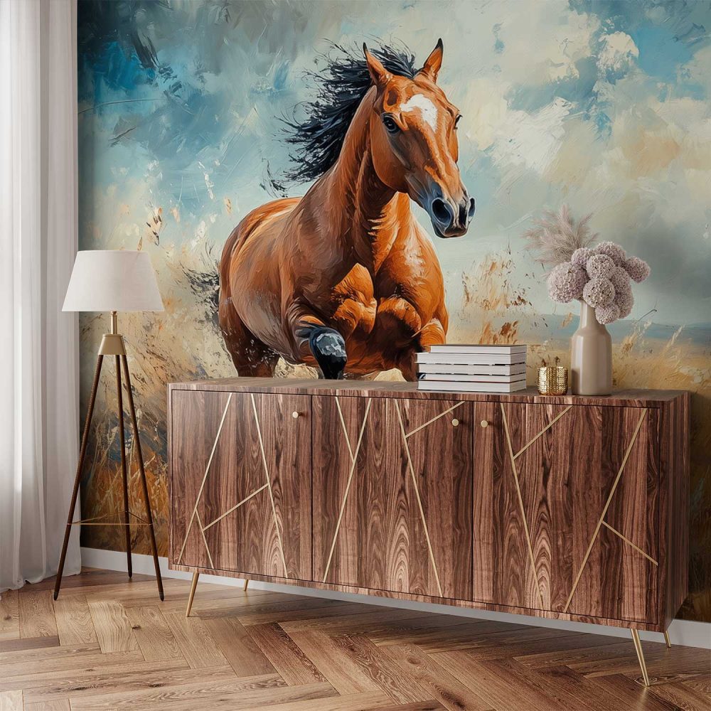 Impressionistische galopperende bruin paard behang