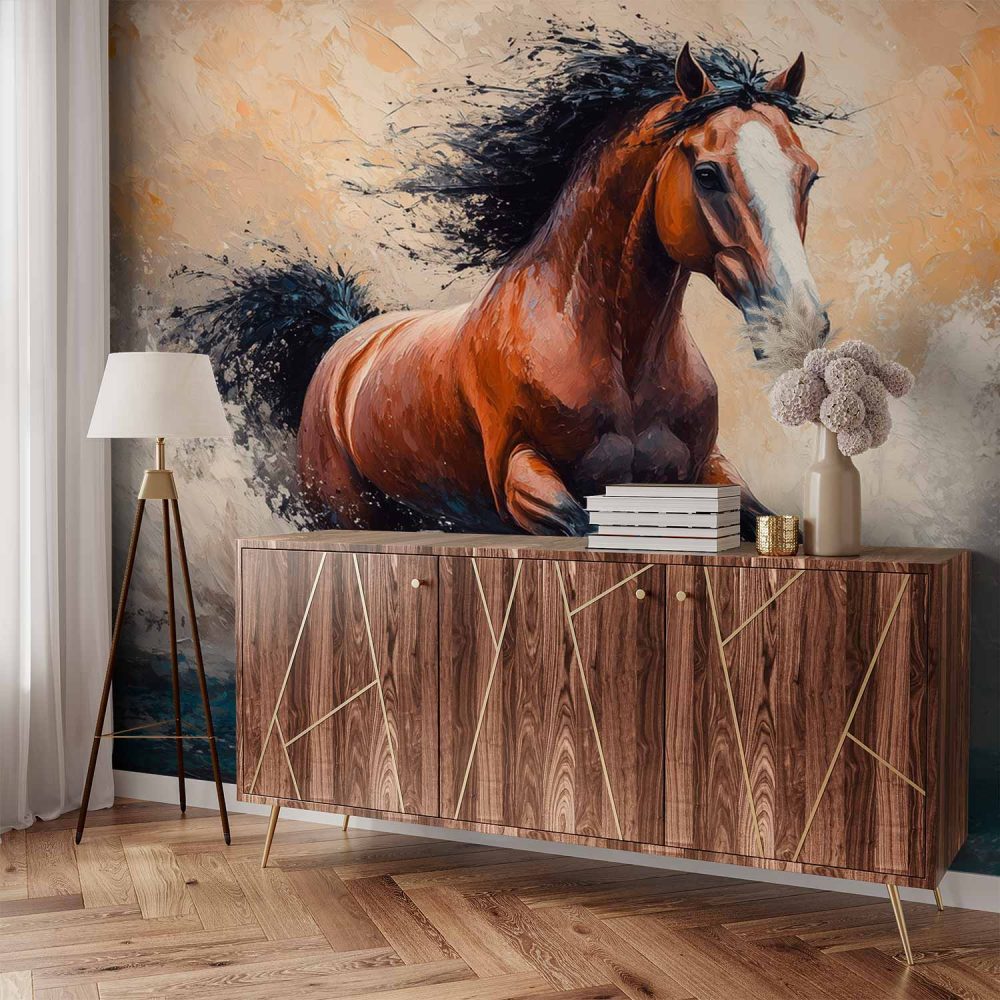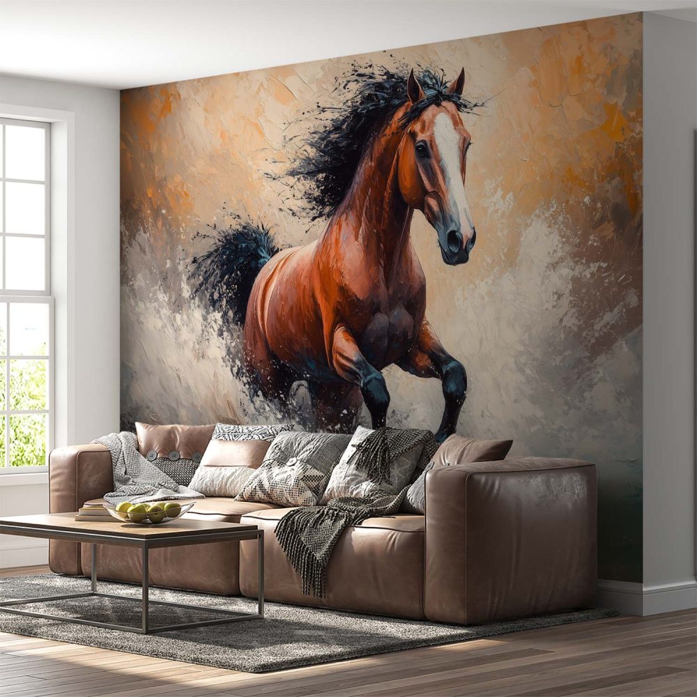Impressionistische galopperende paardenschilderij behang