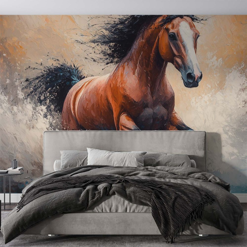 Terug naar collectie / Behang / Impressionistische galopperende paardenschilderij behang